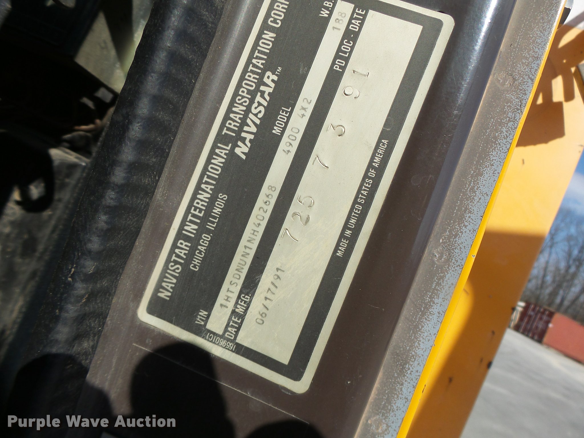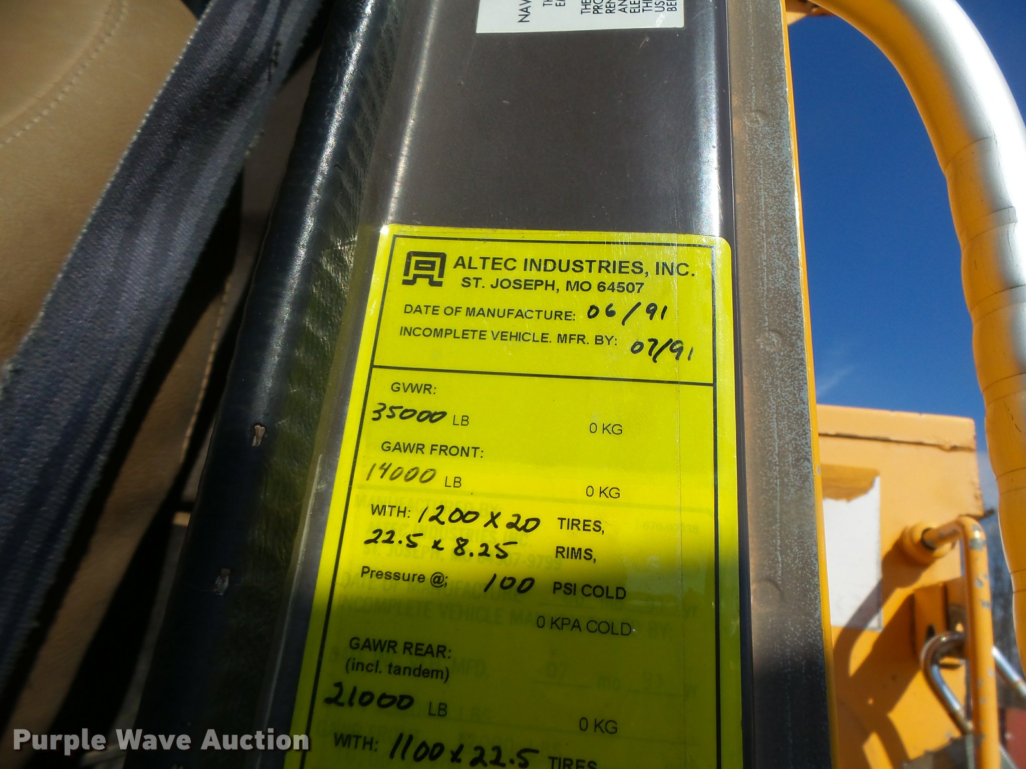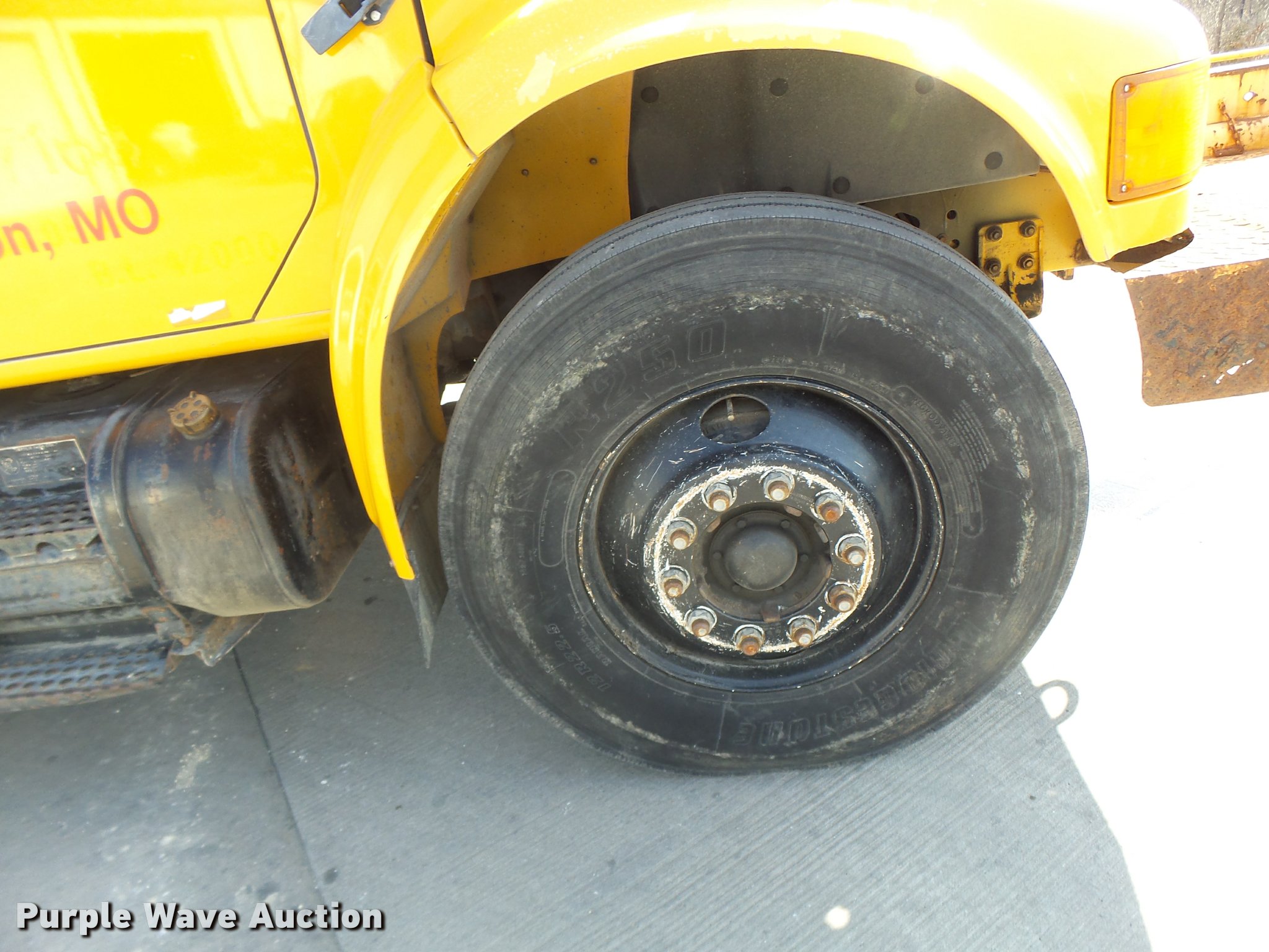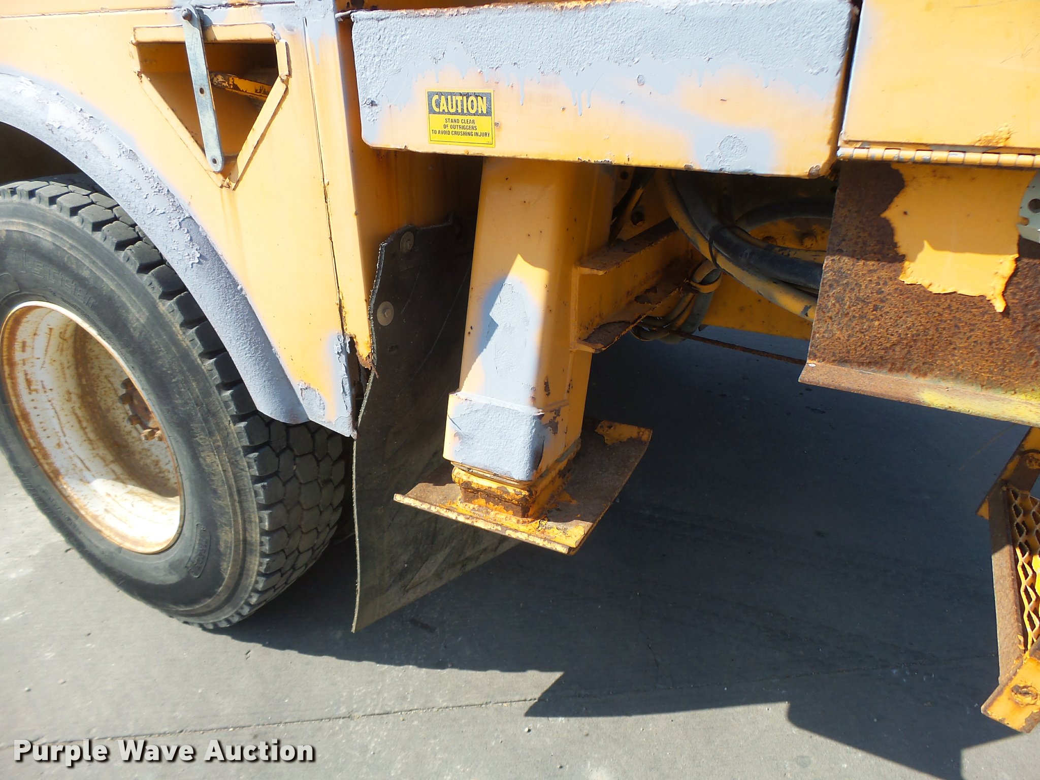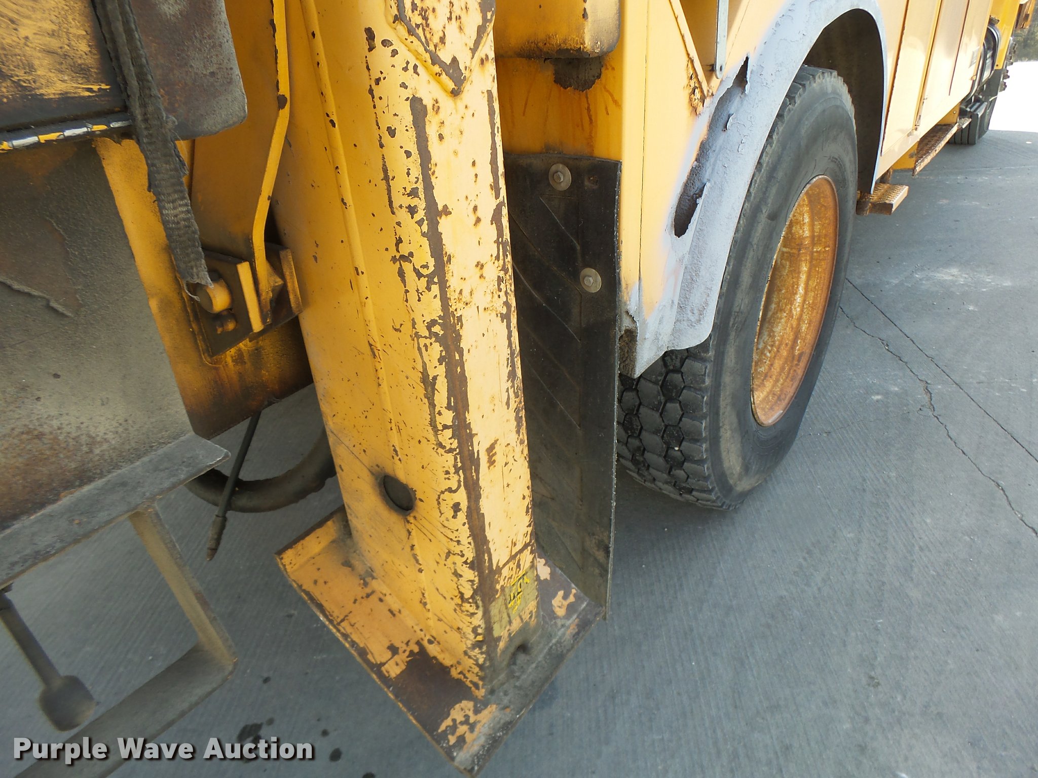 Purple Wave is selling a used Bucket Truck in Missouri. This item is a 1992 International 4900 bucket truck with the following: 103,958 miles on odometer, 9,741 hours on meter, International DT466 7.6L L6 turbo diesel engine, Automatic transmission, Single axle, Heat, Front tow hooks, PTO, Altec service bed, 15'L, Shelving, Serial 3763218, Altec D845T Boom, 45' maximum lift height, 300 lbs maximum lift capacity, Man basket, Ground boom controls, Telescopic boom, 27,000 lbs winch, 18" diameter auger, (4) outriggers, Dual fuel tanks, Pintle hitch, Trailer wiring, Spring suspension, Air brakes, 11R22.5 tires, GVWR 35,000 lbs, Intermittent issues with boom swing and winch