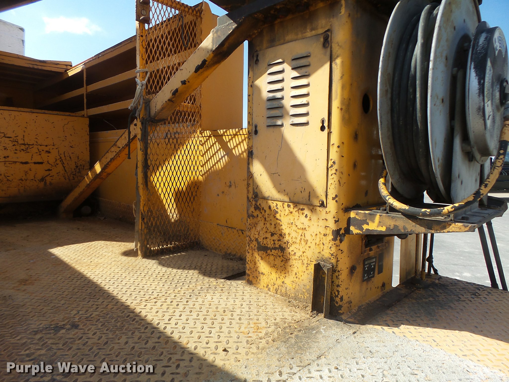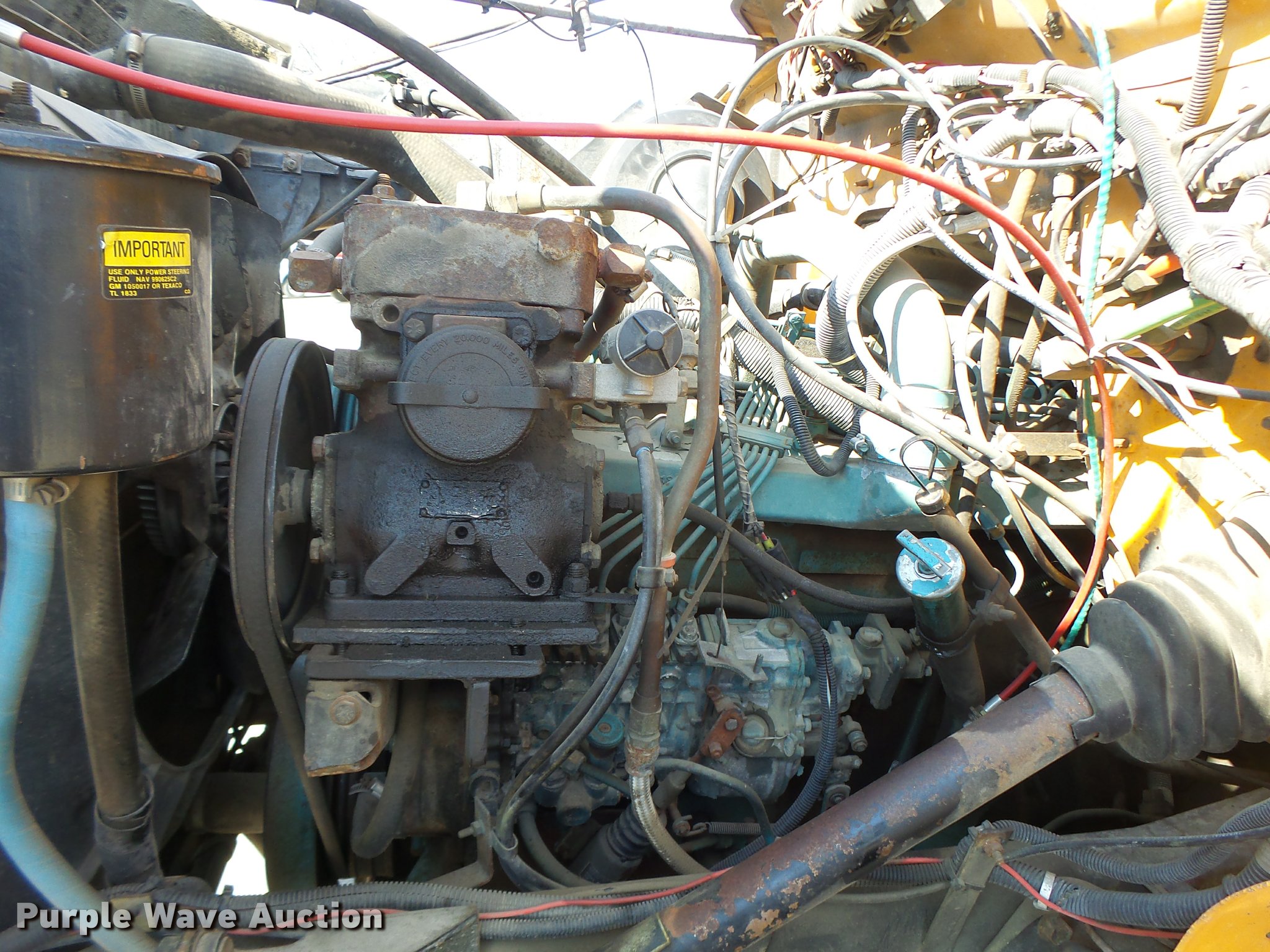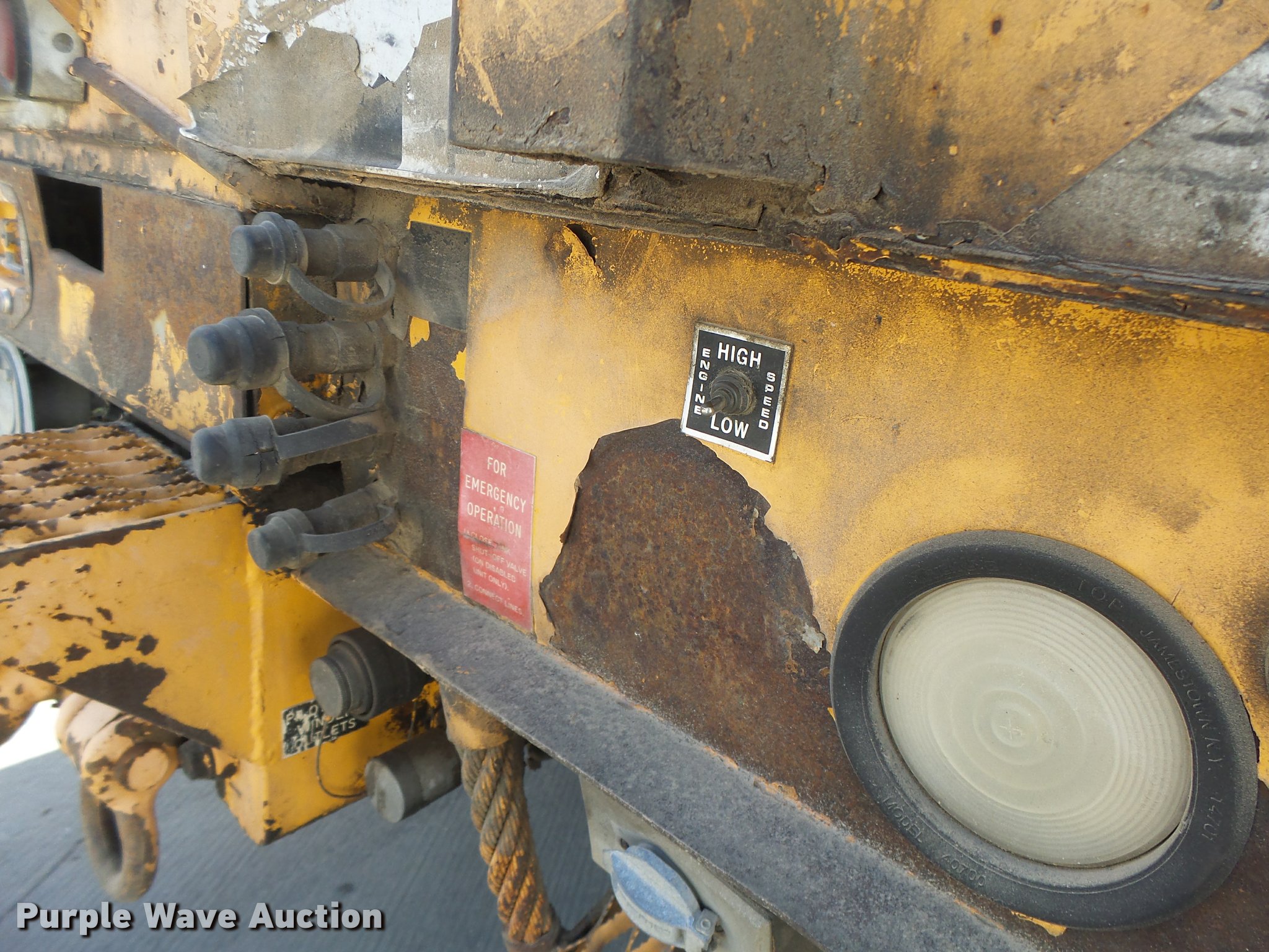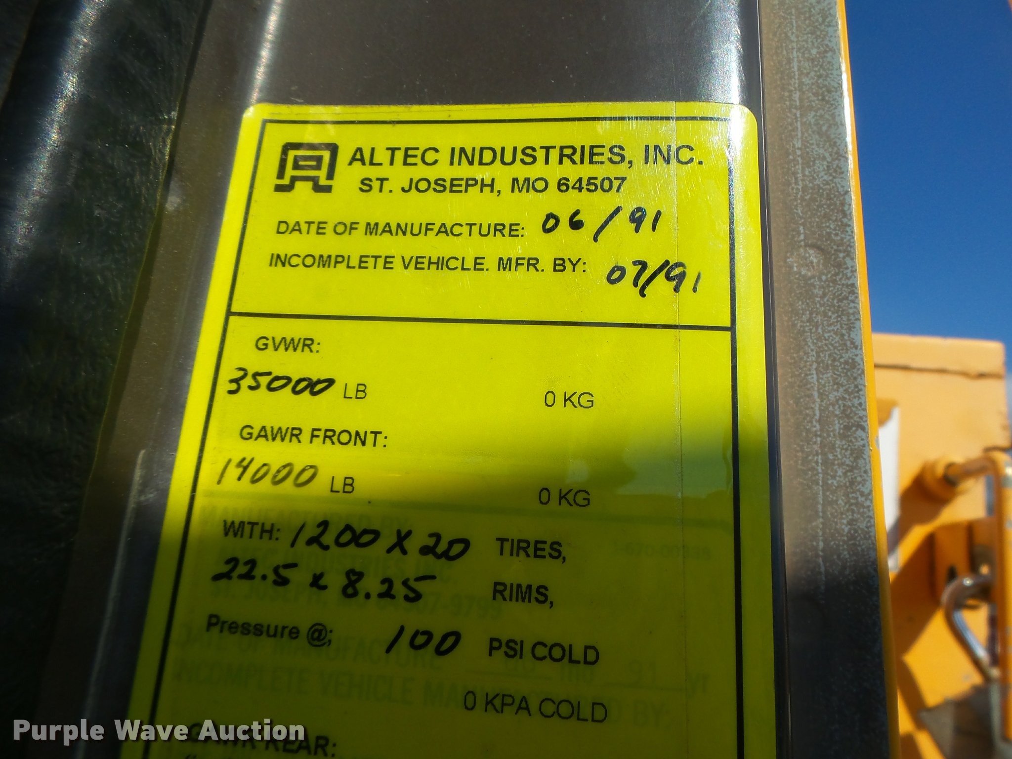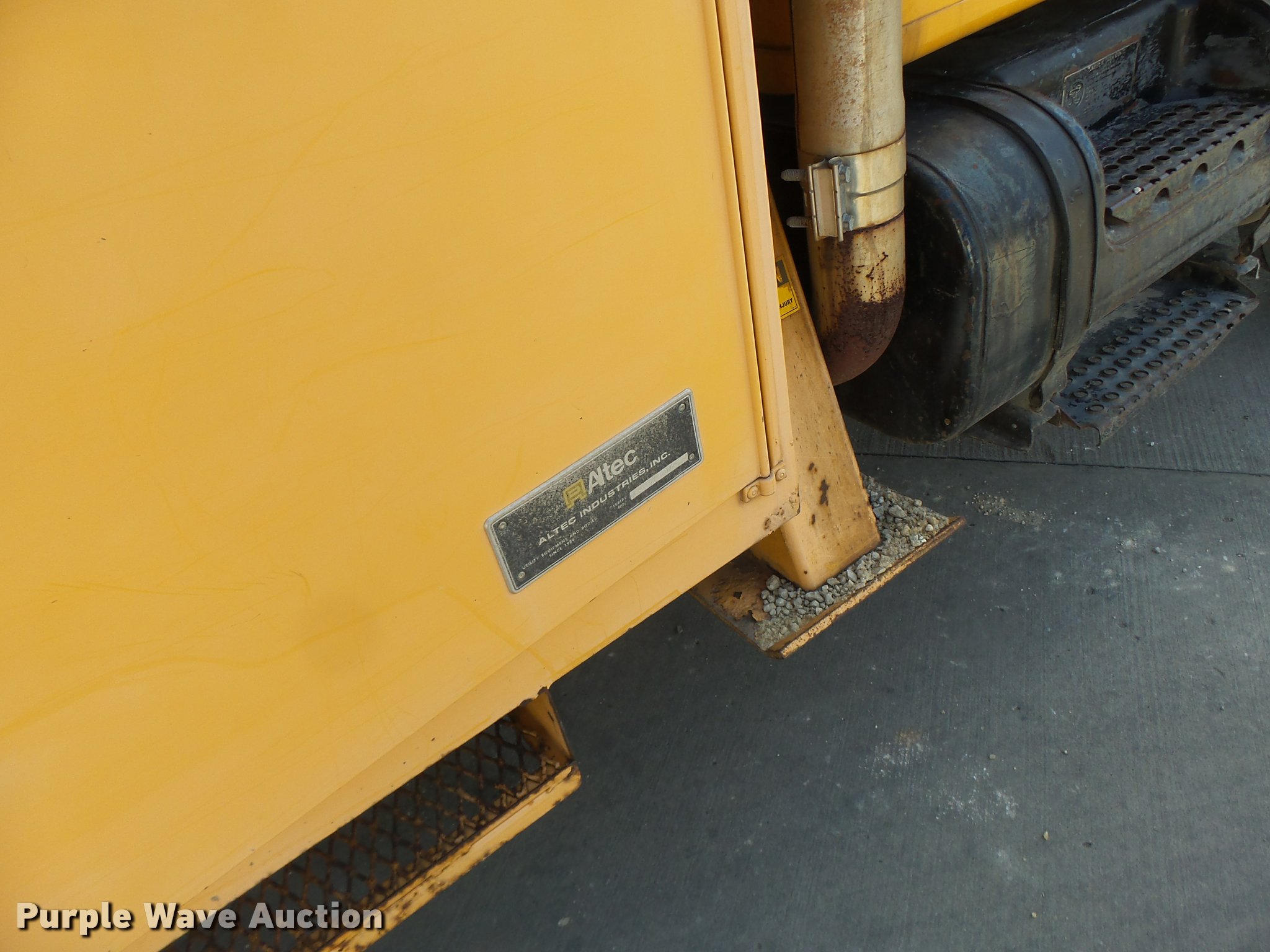 Purple Wave is selling a used Bucket Truck in Missouri. This item is a 1992 International 4900 bucket truck with the following: 103,958 miles on odometer, 9,741 hours on meter, International DT466 7.6L L6 turbo diesel engine, Automatic transmission, Single axle, Heat, Front tow hooks, PTO, Altec service bed, 15'L, Shelving, Serial 3763218, Altec D845T Boom, 45' maximum lift height, 300 lbs maximum lift capacity, Man basket, Ground boom controls, Telescopic boom, 27,000 lbs winch, 18" diameter auger, (4) outriggers, Dual fuel tanks, Pintle hitch, Trailer wiring, Spring suspension, Air brakes, 11R22.5 tires, GVWR 35,000 lbs, Intermittent issues with boom swing and winch