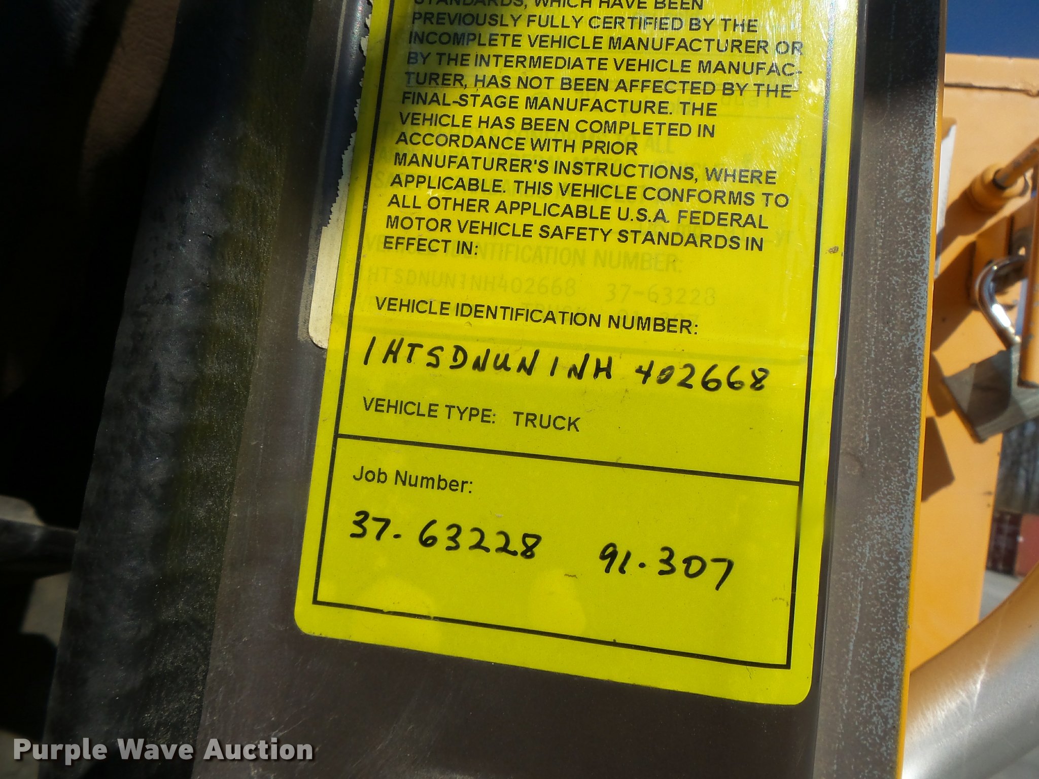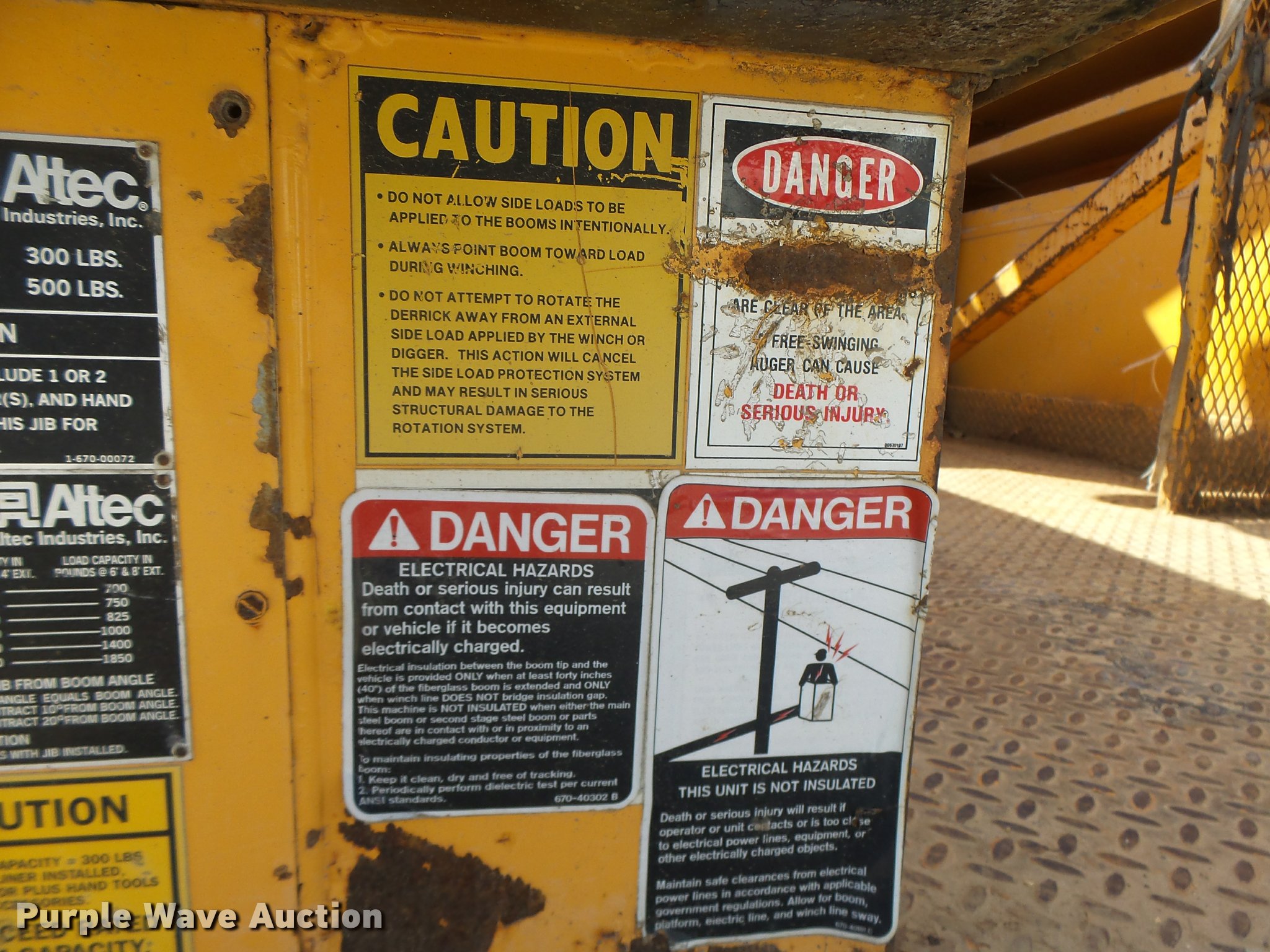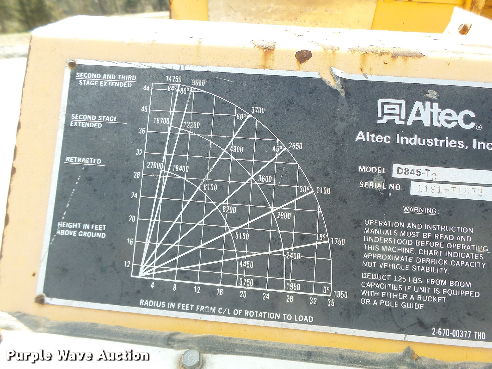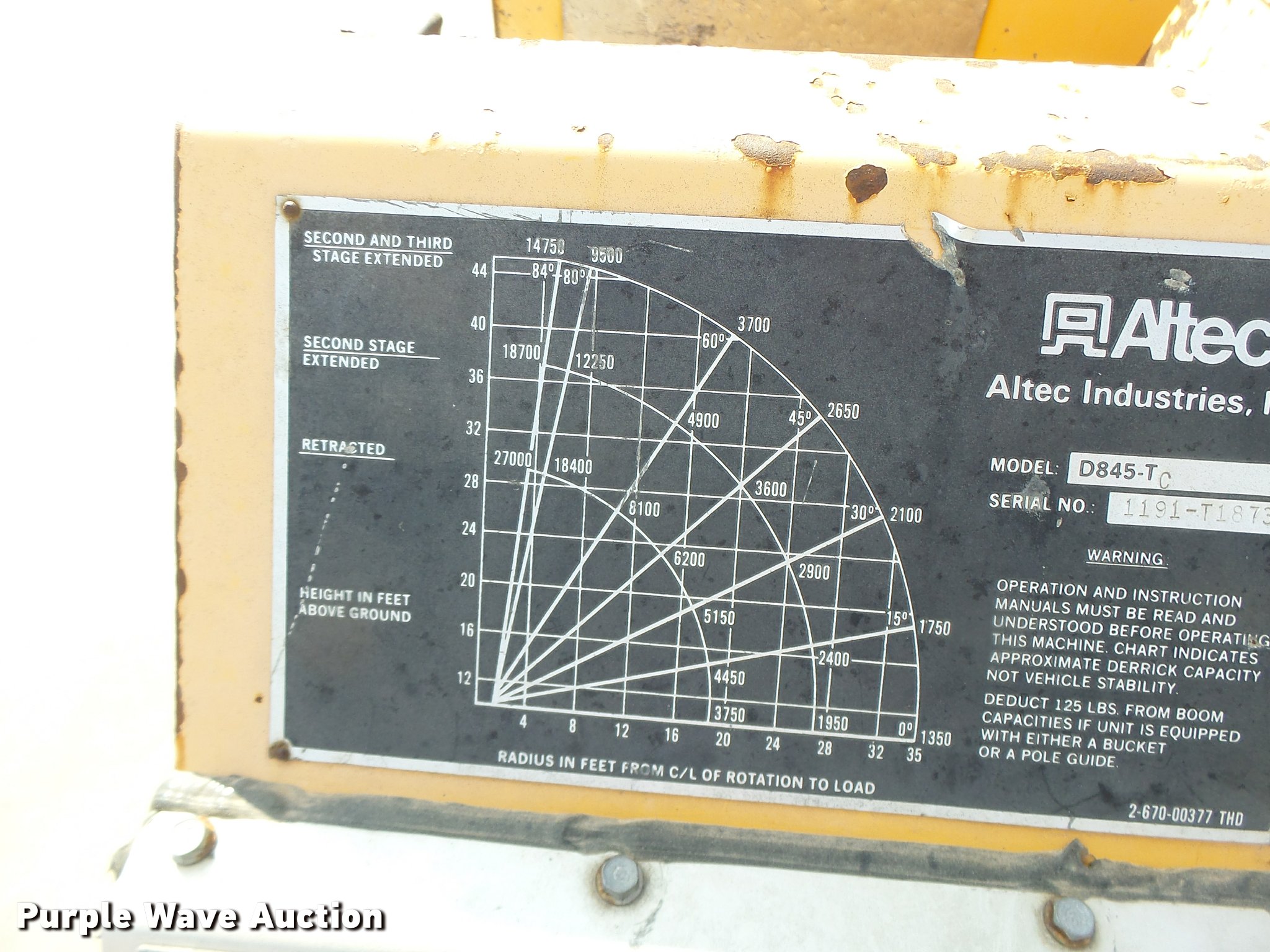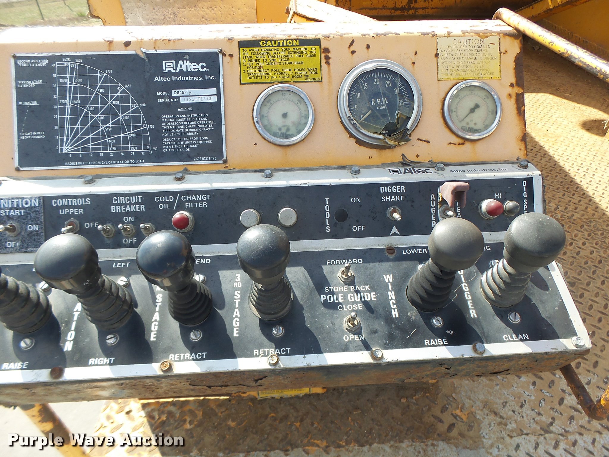 Purple Wave is selling a used Bucket Truck in Missouri. This item is a 1992 International 4900 bucket truck with the following: 103,958 miles on odometer, 9,741 hours on meter, International DT466 7.6L L6 turbo diesel engine, Automatic transmission, Single axle, Heat, Front tow hooks, PTO, Altec service bed, 15'L, Shelving, Serial 3763218, Altec D845T Boom, 45' maximum lift height, 300 lbs maximum lift capacity, Man basket, Ground boom controls, Telescopic boom, 27,000 lbs winch, 18" diameter auger, (4) outriggers, Dual fuel tanks, Pintle hitch, Trailer wiring, Spring suspension, Air brakes, 11R22.5 tires, GVWR 35,000 lbs, Intermittent issues with boom swing and winch