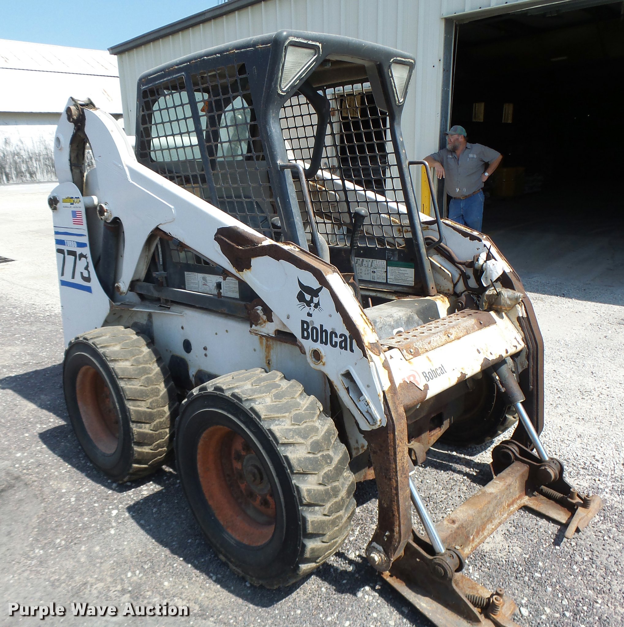 Purple Wave is selling a used Skid Steer Loader in Missouri. This item is a 2001 Bobcat 773 skid steer with the following: Approximately 2,100 hours on unit, Kubota four cylinder diesel engine, Hydrostatic transmission, Open station/canopy, Hand and foot controls, Spring suspension seat, Front work lights, Auxiliary hydraulics, 10-16.5 tires, Engine issues, Serial 519021791