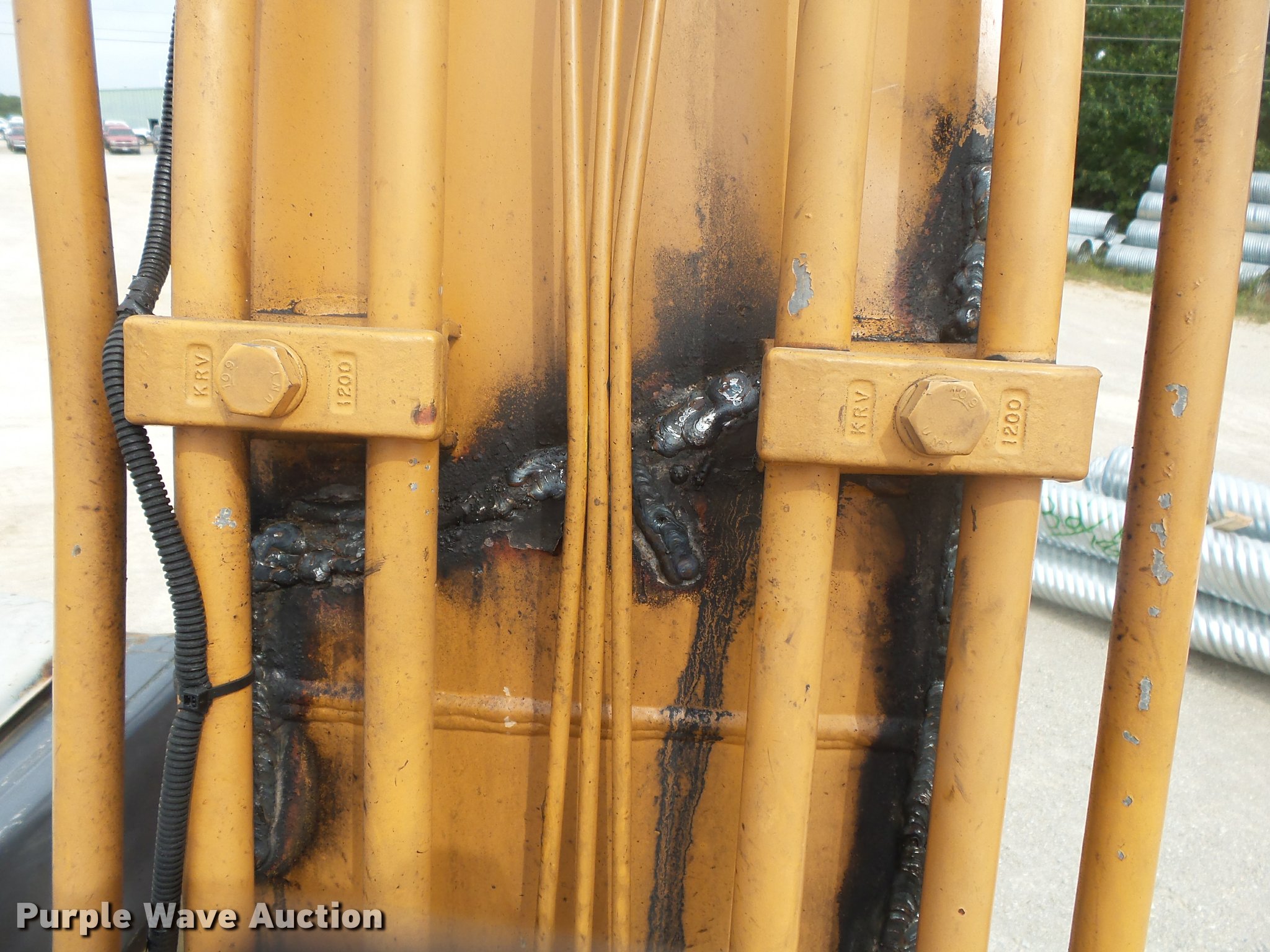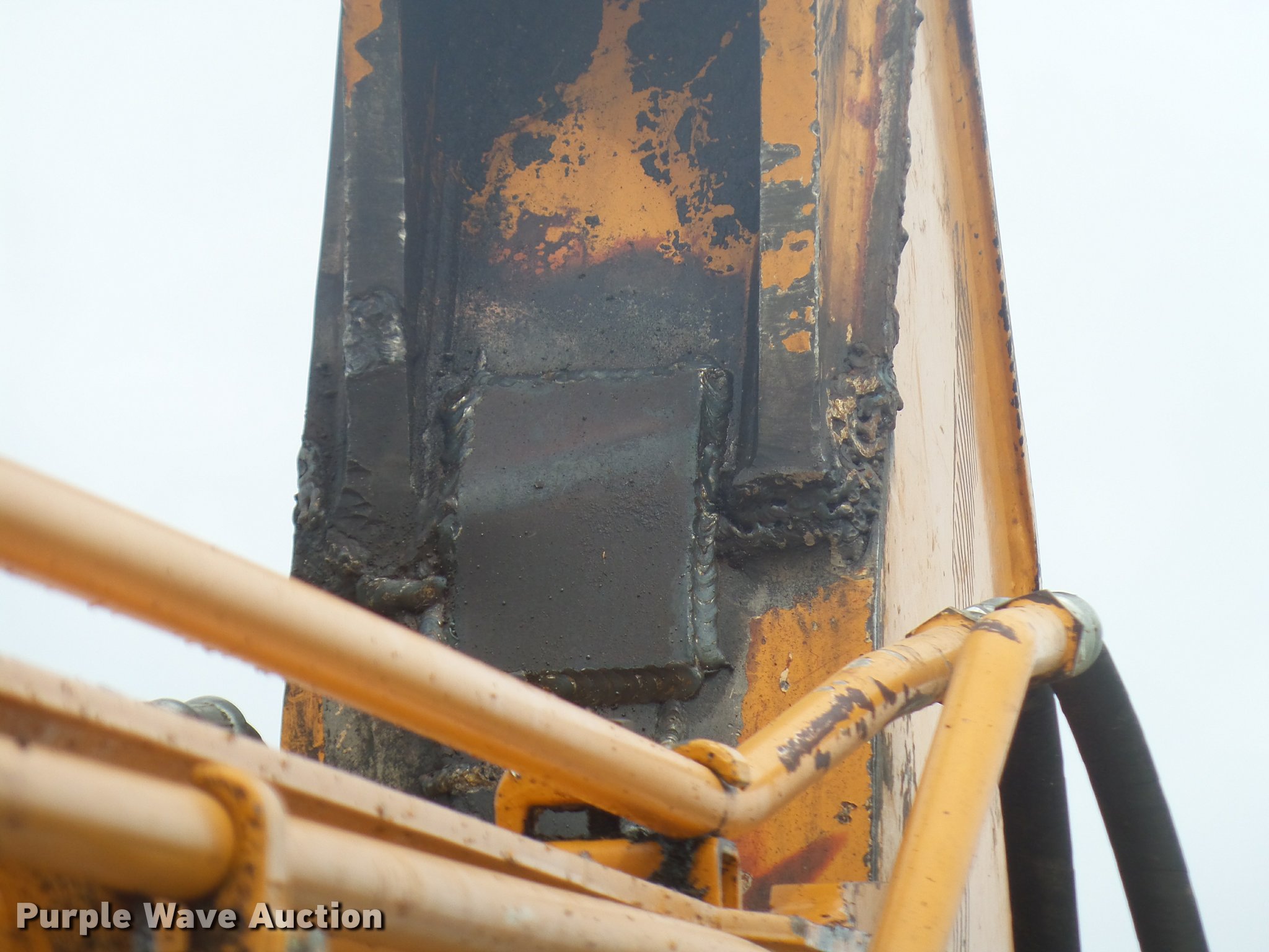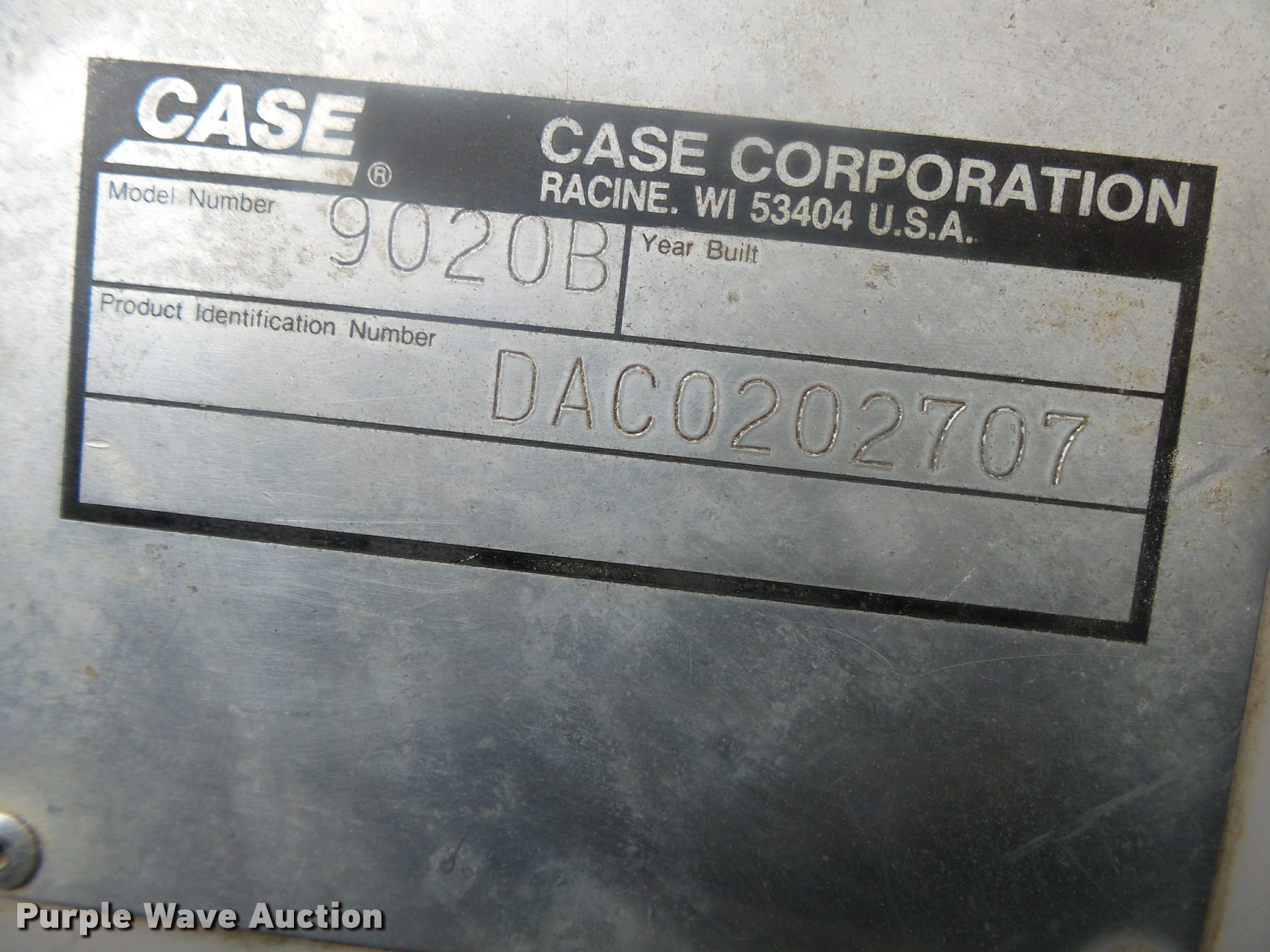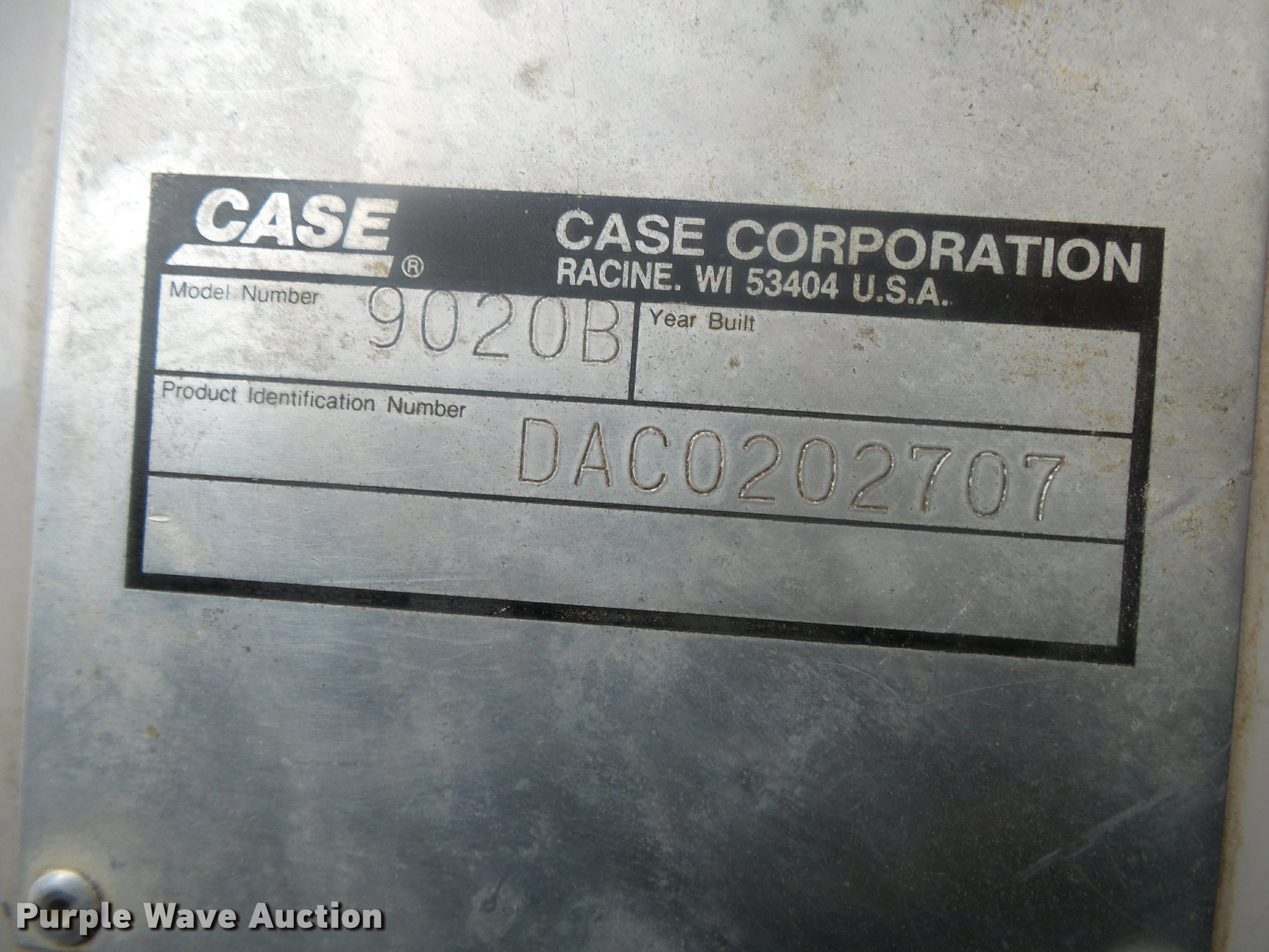 Purple Wave is selling a used Hydraulic Excavator in Missouri. This item is a 1999 Case 9020B excavator with the following: 9,640 hours on meter, Case four cylinder turbo diesel engine, Two speed hydrostatic transmission, EROPS, AC and heat, AM/FM, Suspension seat, Standard boom, 9' stick length, CP 24"W bucket, Weld-on cutting edge, (4) bolt-on teeth, CP 42"W bucket, Weld-on cutting edge, (5) bolt-on teeth, One shank broken, Mechanical quick coupler, Two way auxiliary hydraulics, 23.5"W steel triple grouser track pads, Boom cracked and welded, Stick cracked and welded, Serial DAC0202707