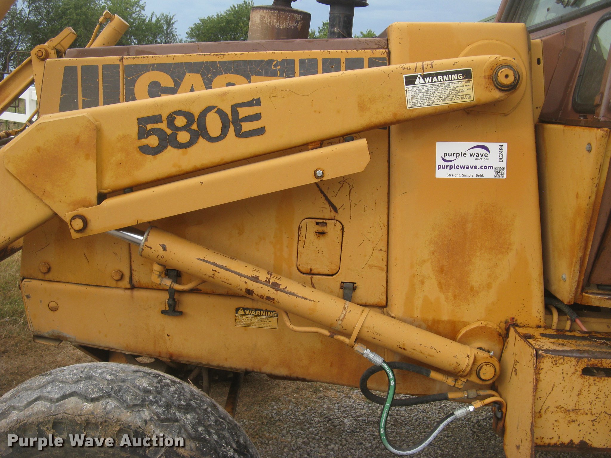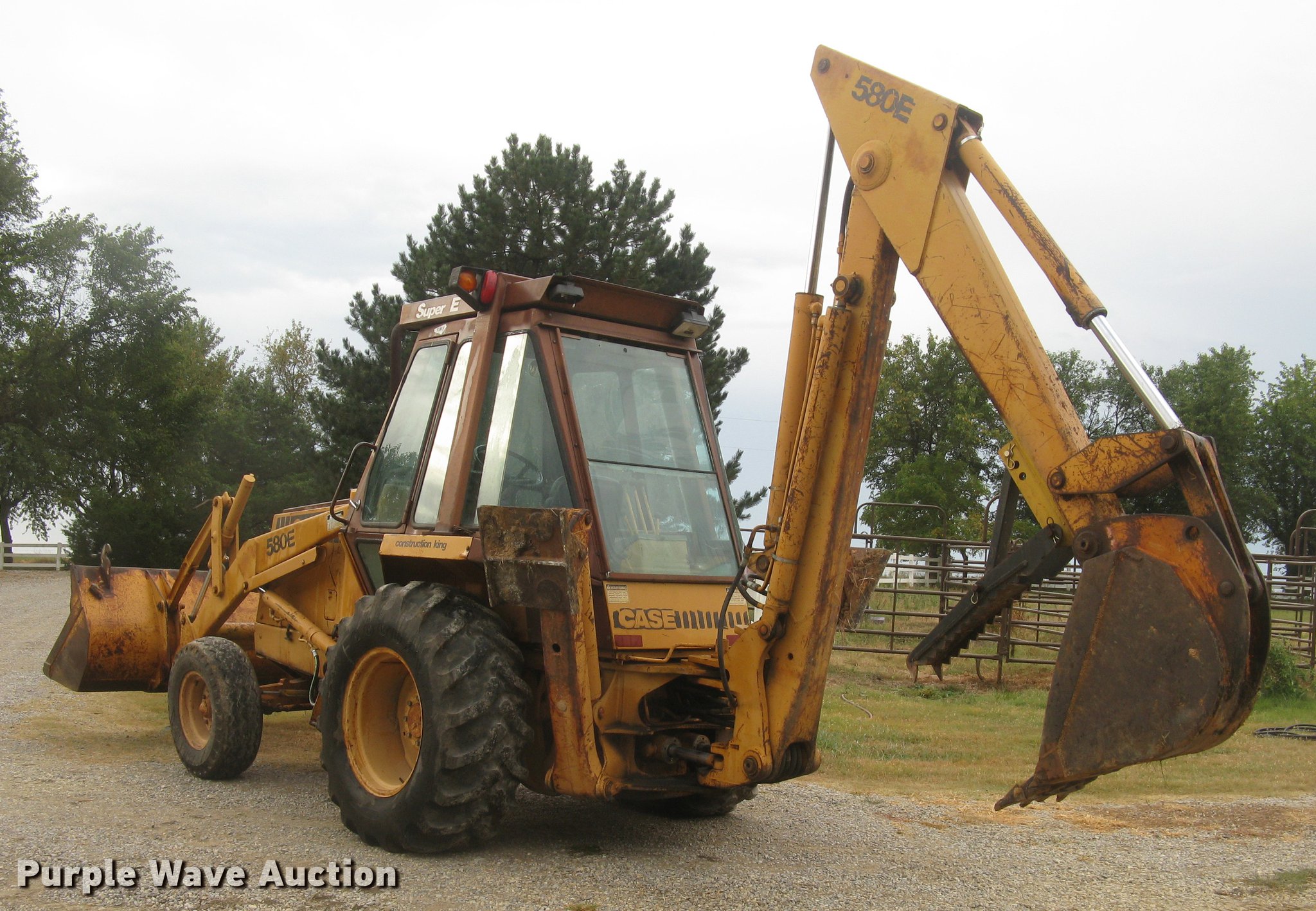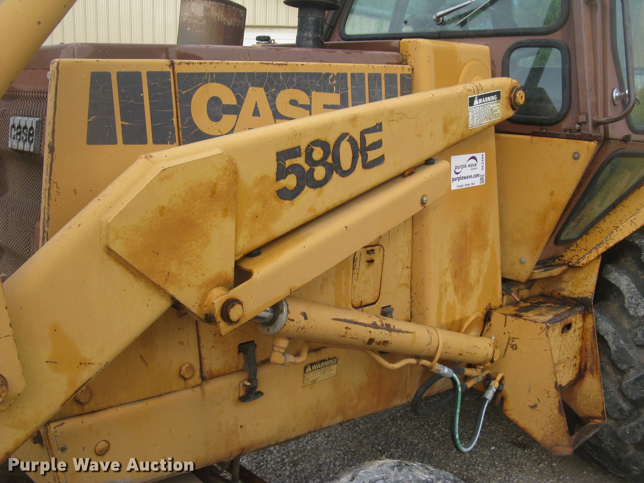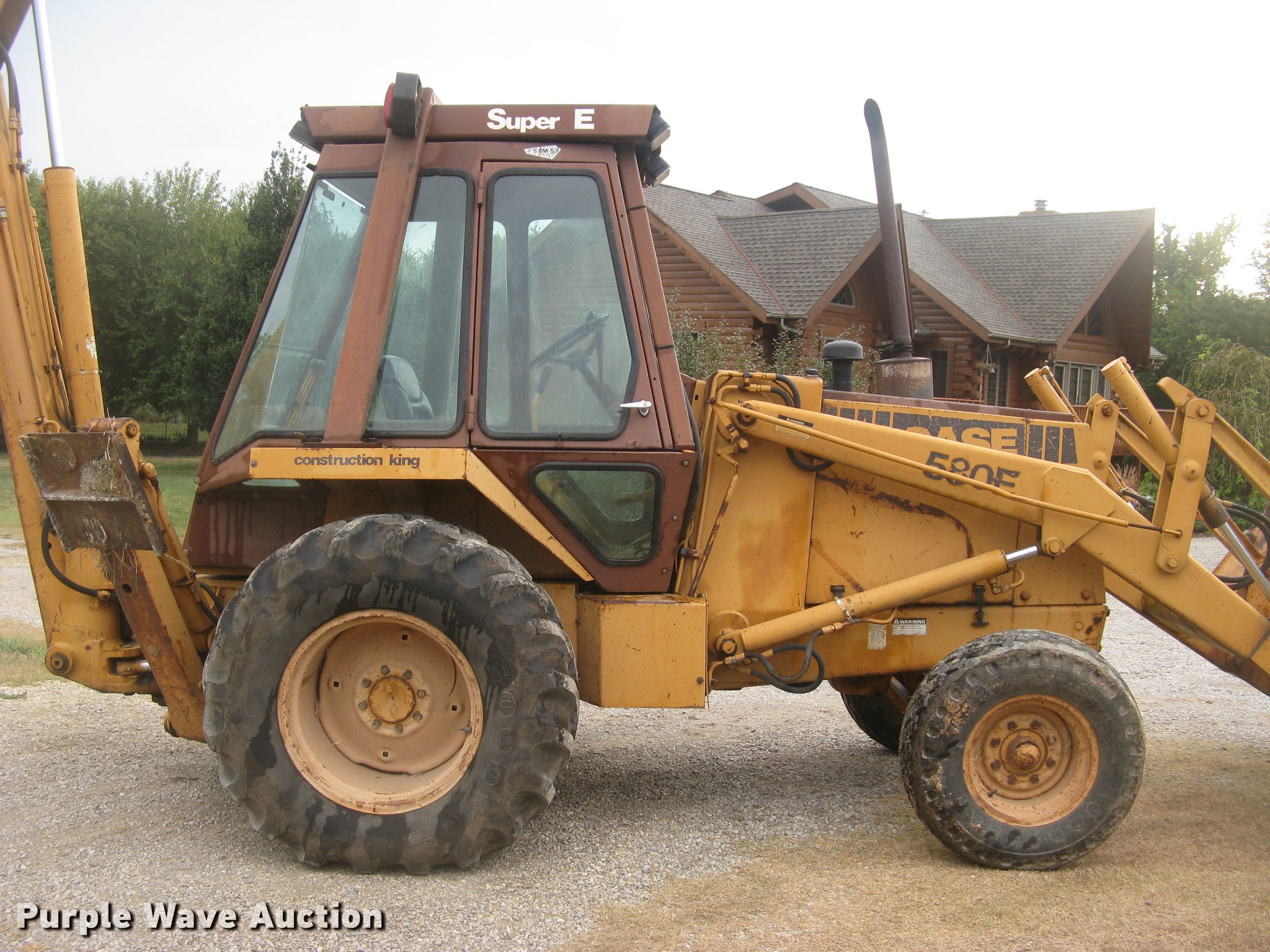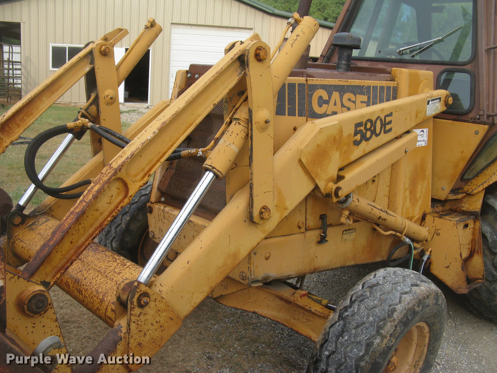 Purple Wave is selling a used Tractor Loader Backhoe in Kansas. This item is a 1984 Case 580 Super E backhoe with the following: 1,640 hours on meter, Case 4-390 four cylinder diesel engine, Serial 44117762, Shuttle shift transmission, 4F-4R gears, Differential lock, EROPS, Heat, Three stick backhoe controls, Wipers, Front and rear work lights, Case 82"W loader bucket, Weld-on cutting edge, Case 18"W backhoe bucket, Weld-on cutting edge, (4) teeth, Linville 8"W mechanical thumb, Goodyear 11L-16SL front tires, Goodyear 17.5L-24 rear tires, Manuals, Loader cylinder rebuilt, bucket cylinder rebuilt, Swing cylinder rebuilt, Steering cylinders rebuilt, One rear work light lens missing, Serial 9874741