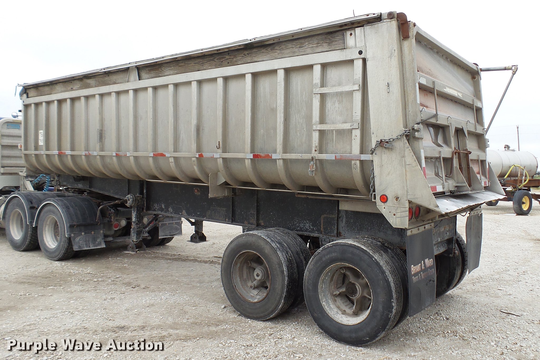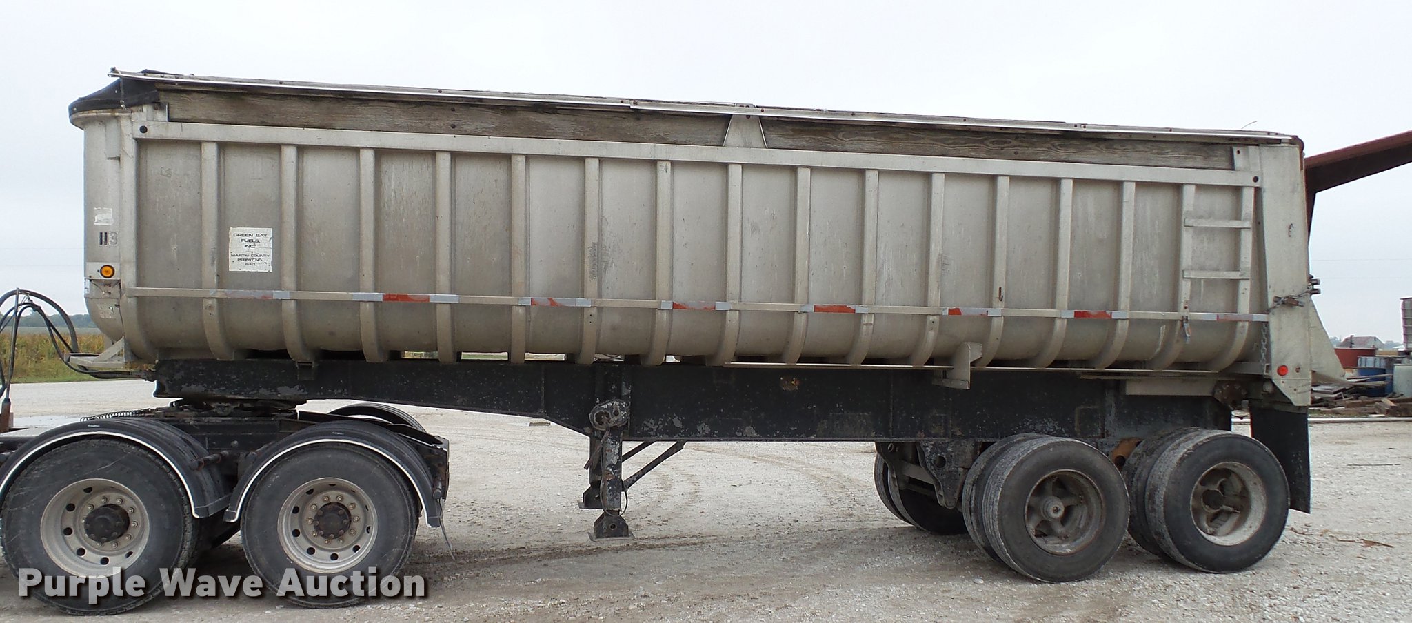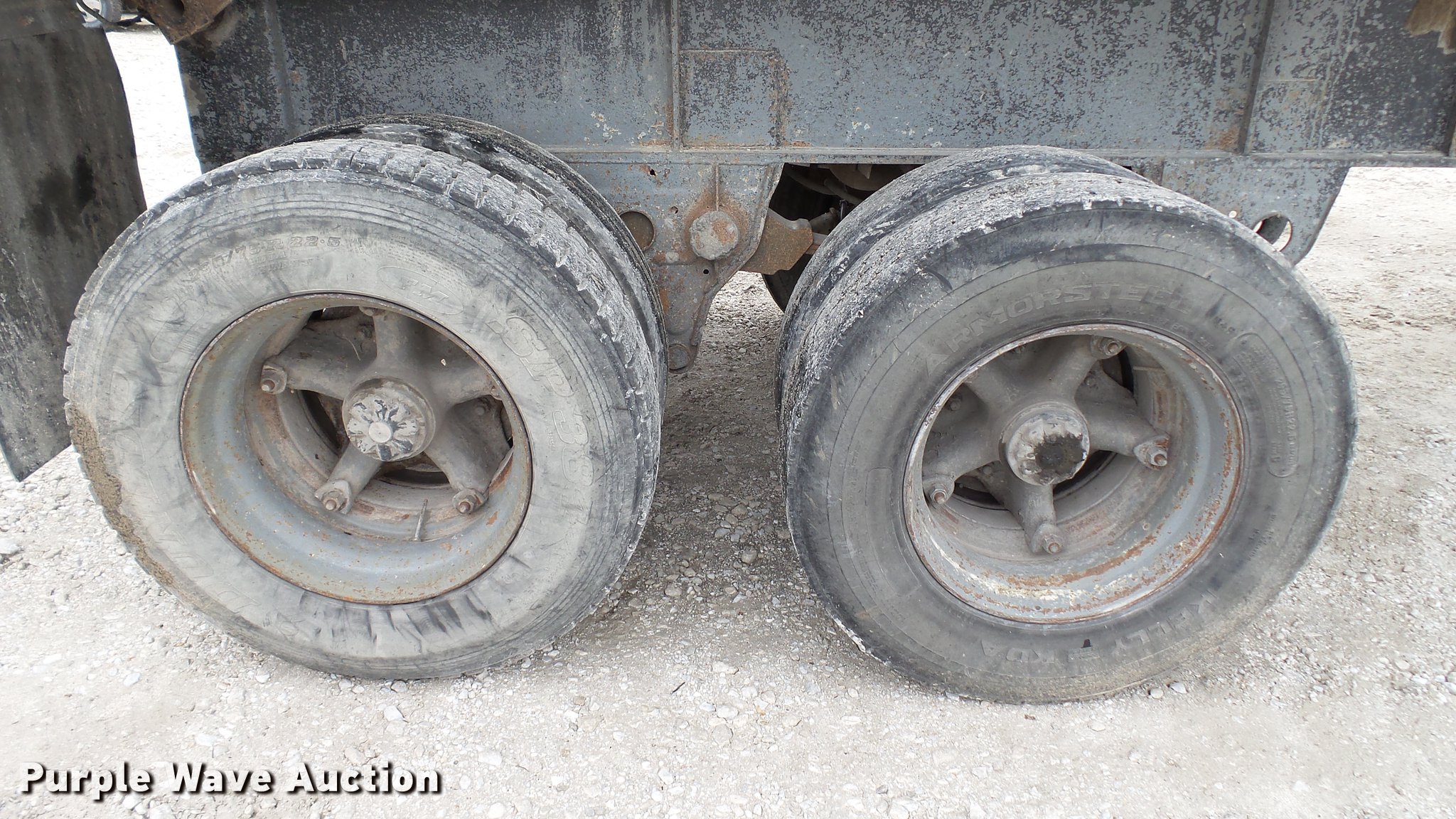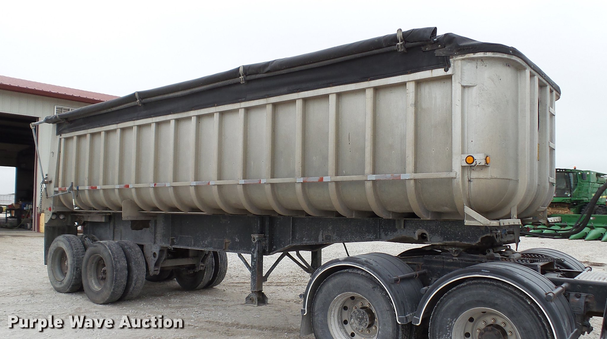 Purple Wave is selling a used End Dump Rock Trailer in Illinois. This item is a 1981 Fruehauf end dump trailer with the following: 27'L x 94"W overall, 4.5' side height, 8" side board height, Aluminum construction, Single hydraulic cylinder, End gate, Grain door, Trailer controls, Tarp, Dual leg two speed landing gear, Fifth wheel plate, Tandem axle, Spring suspension, Air brakes, Steel wheels, 295/75R22.5 tires, GVWR 68,000 lbs
