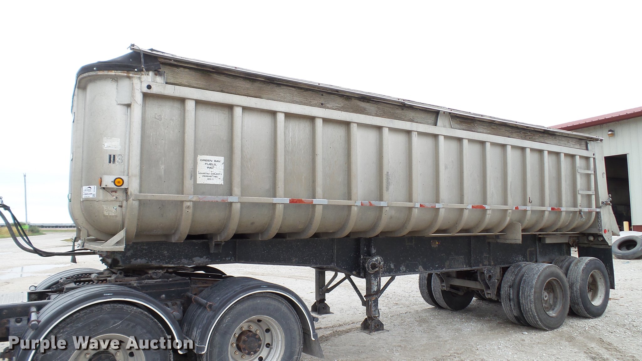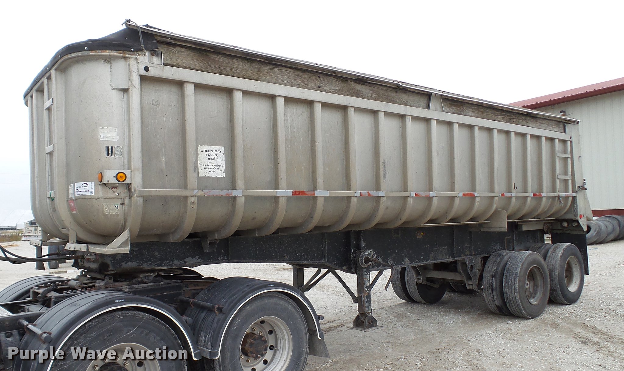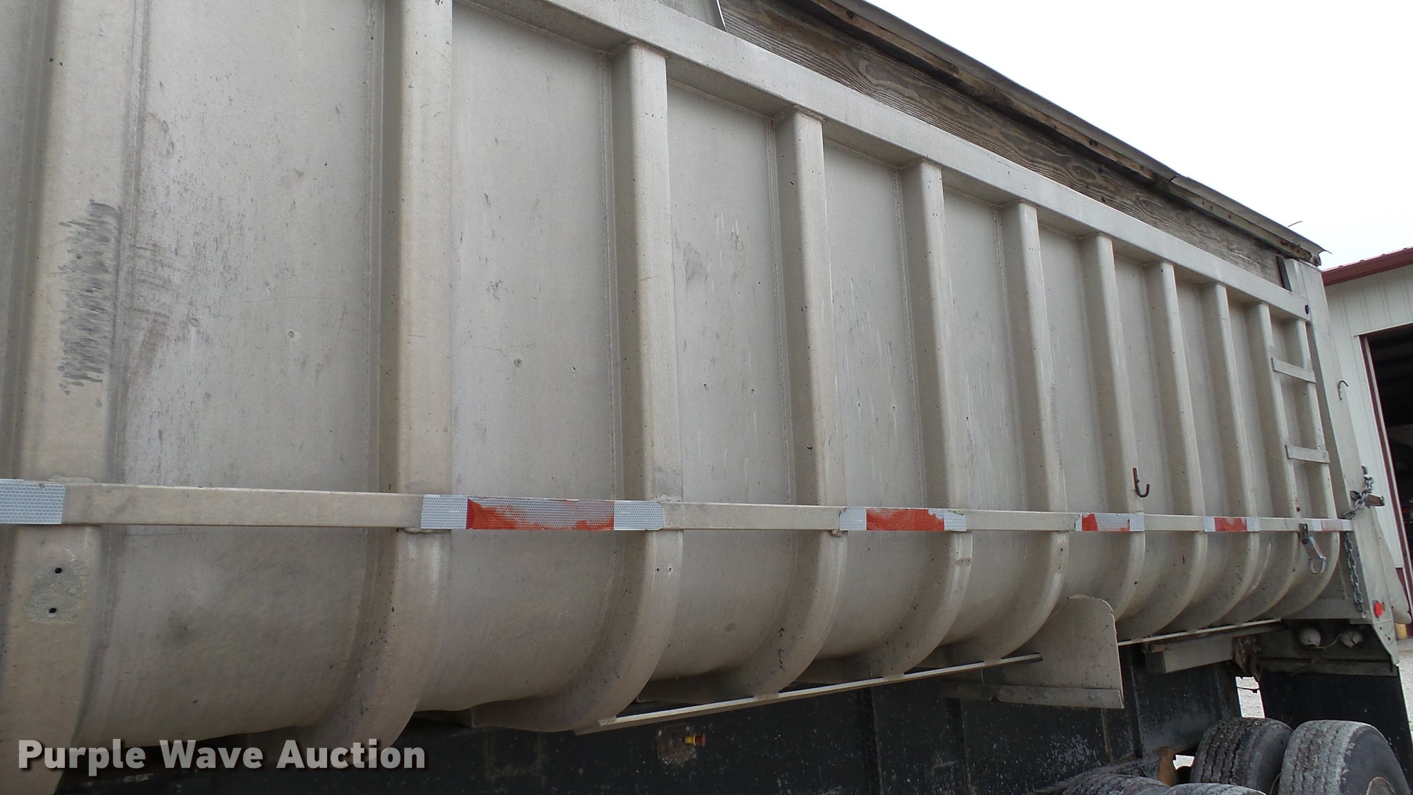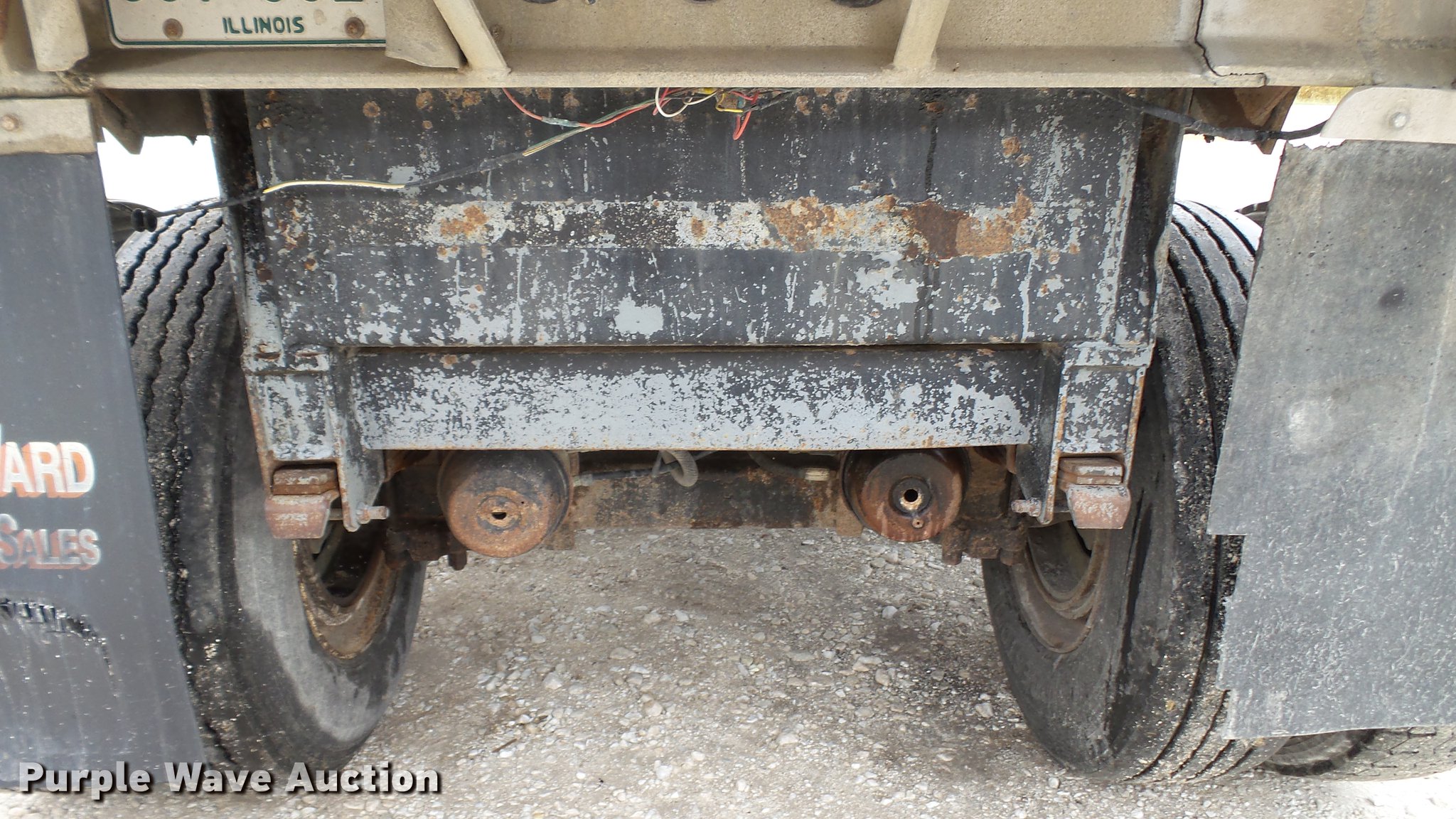 Purple Wave is selling a used End Dump Rock Trailer in Illinois. This item is a 1981 Fruehauf end dump trailer with the following: 27'L x 94"W overall, 4.5' side height, 8" side board height, Aluminum construction, Single hydraulic cylinder, End gate, Grain door, Trailer controls, Tarp, Dual leg two speed landing gear, Fifth wheel plate, Tandem axle, Spring suspension, Air brakes, Steel wheels, 295/75R22.5 tires, GVWR 68,000 lbs