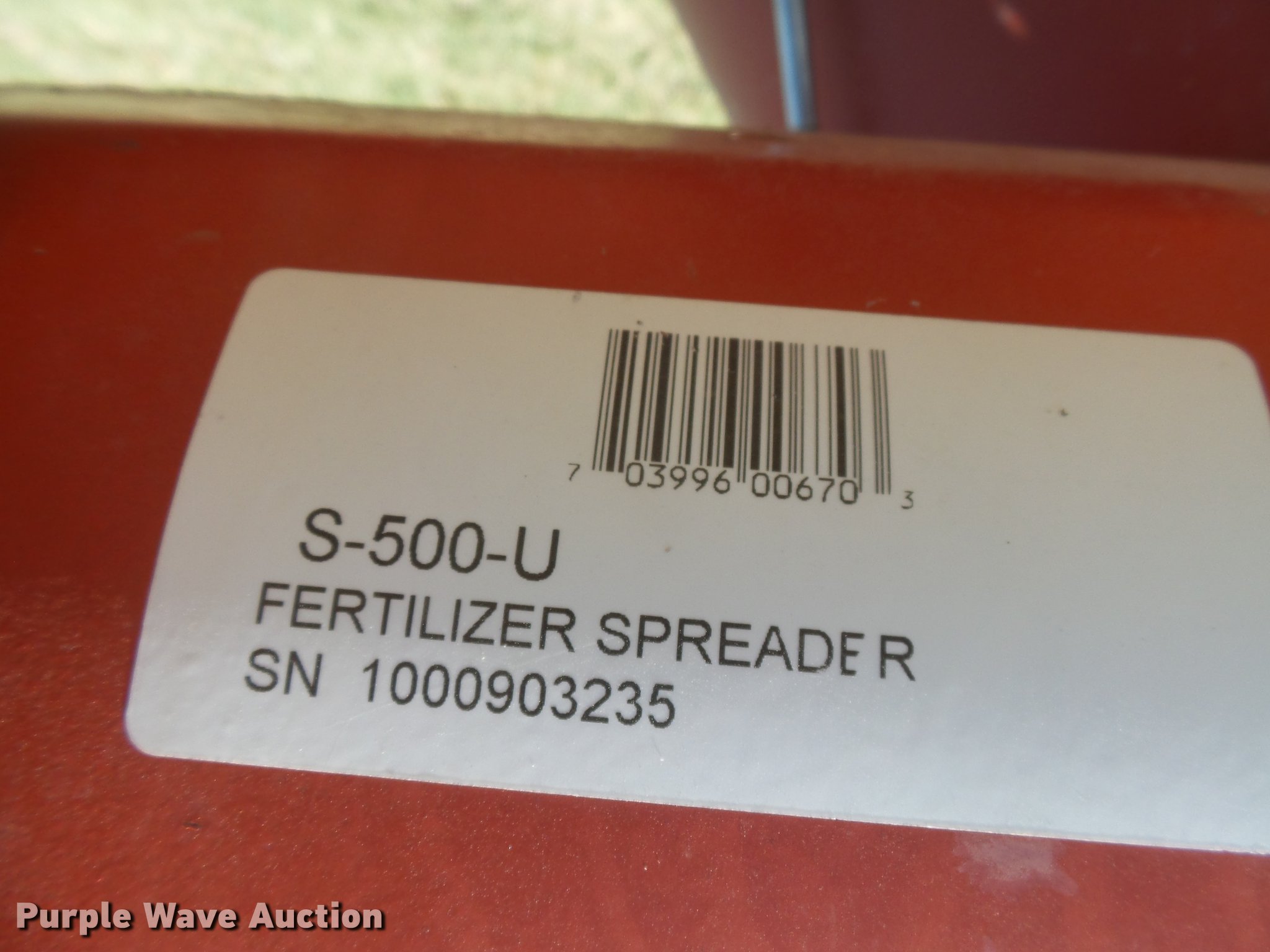 Purple Wave is selling a used Applicator Attach. in Oklahoma. This item is a Cosmo S-500-U fertilizer spreader with the following: 540 PTO, Three point, Serial 1000903235