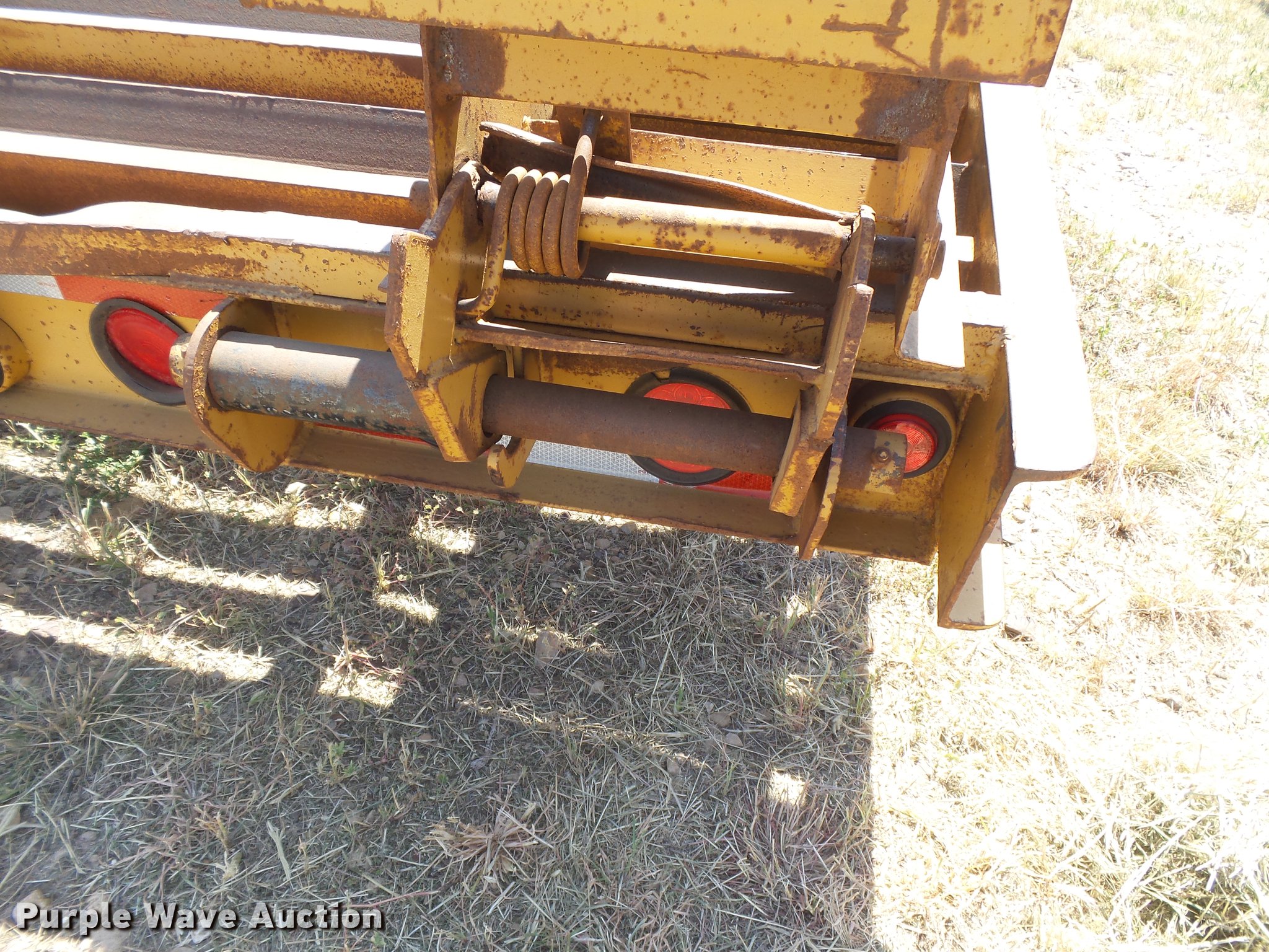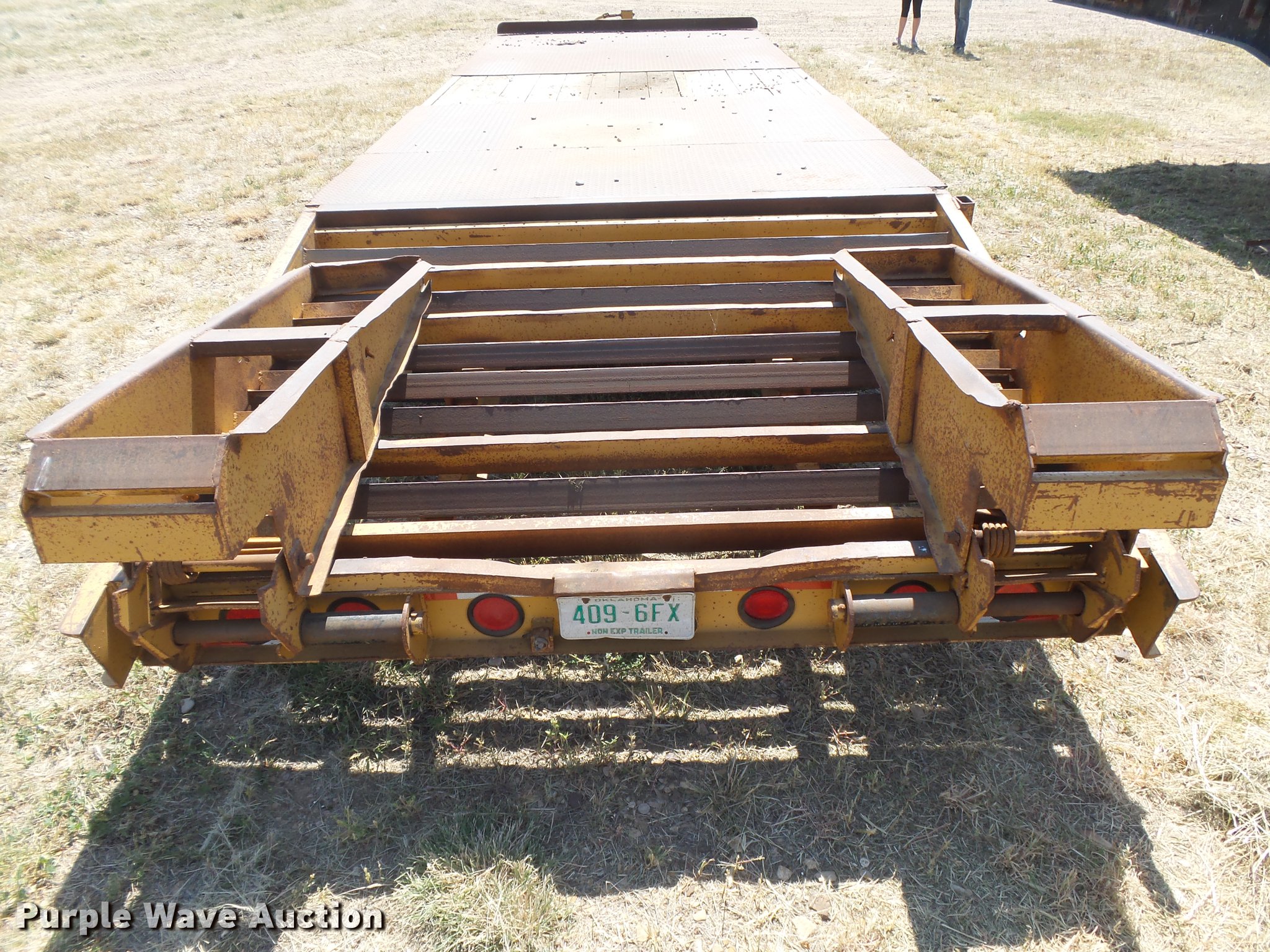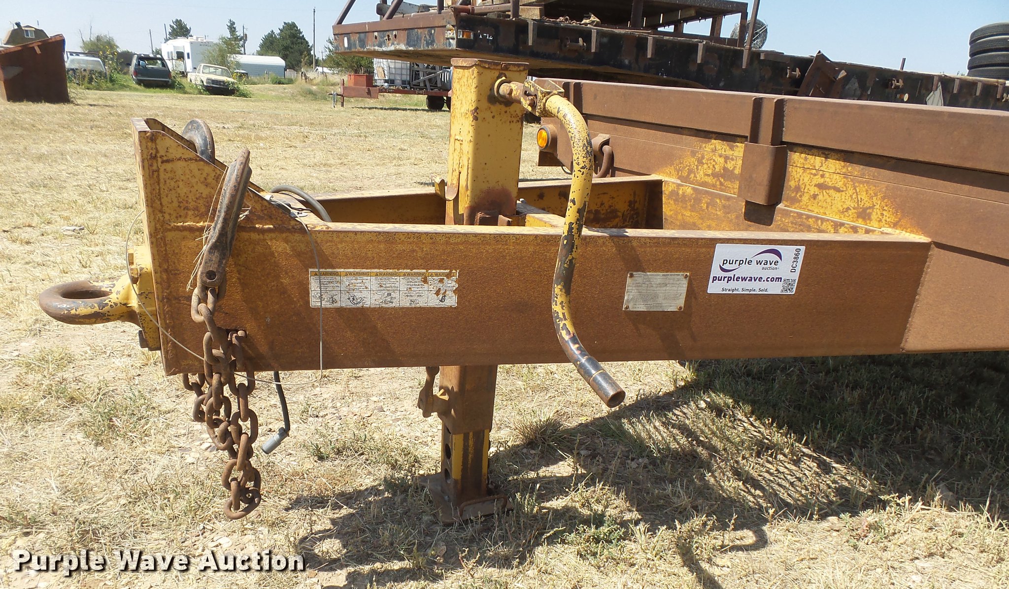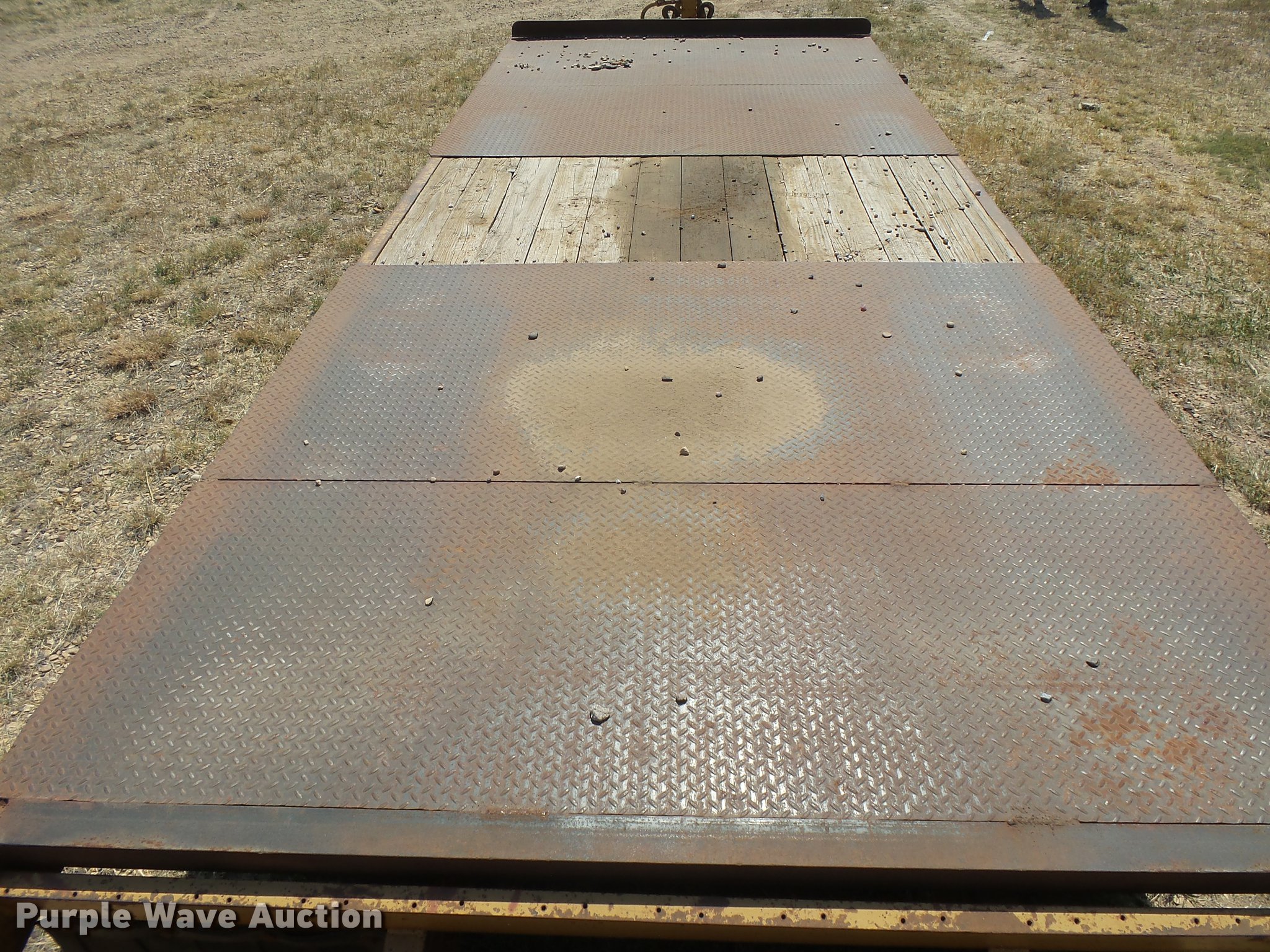 Purple Wave is selling a used Equip. Trailer in Oklahoma. This item is a 2008 Belshe DT256 equipment trailer with the following: 30' overall length, 25'L x 96"W deck, 34" floor height, 6'L beavertail, 5' ramps, Steel/wood deck, D-ring tie downs, Single leg landing gear, Pintle hitch, Spring suspension, Electric brakes, Steel wheels, Dynatrac 215/75R17.5 tires, GVWR 25,600 lbs, GAWR 10,000 lbs