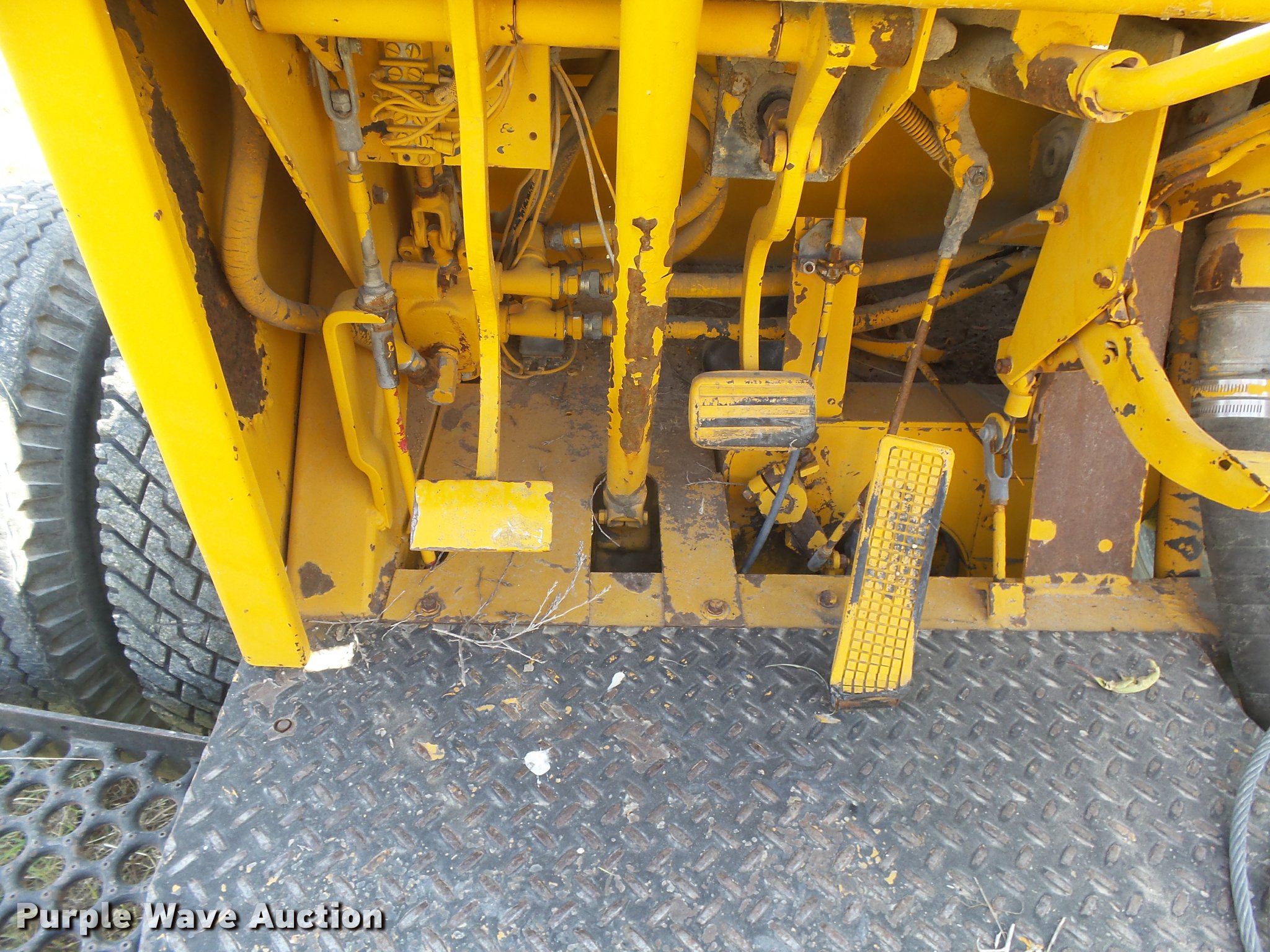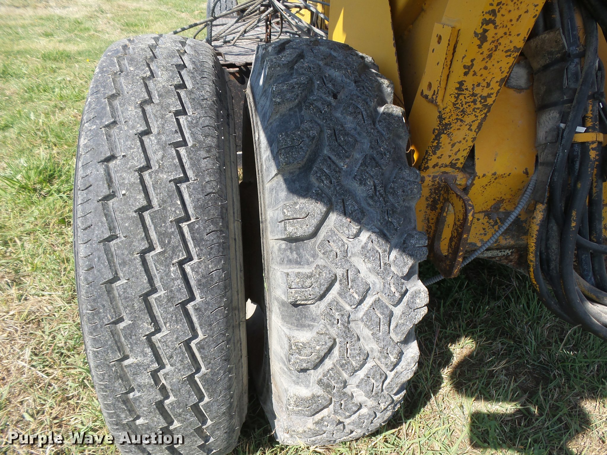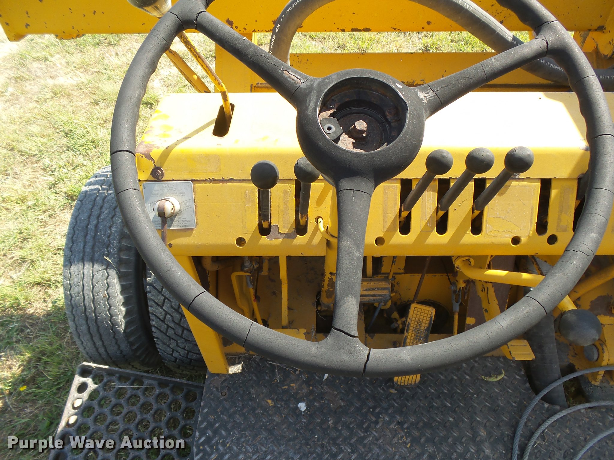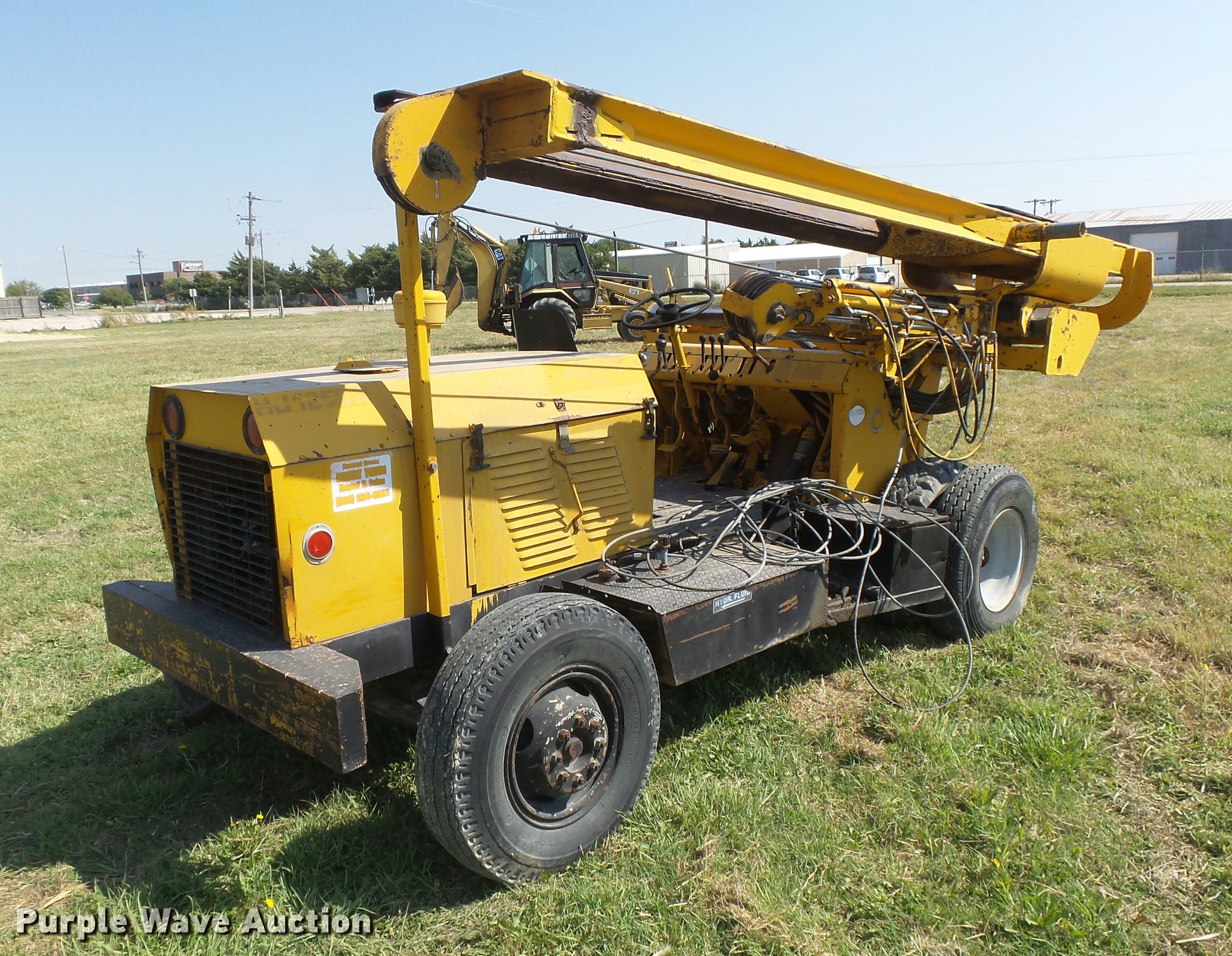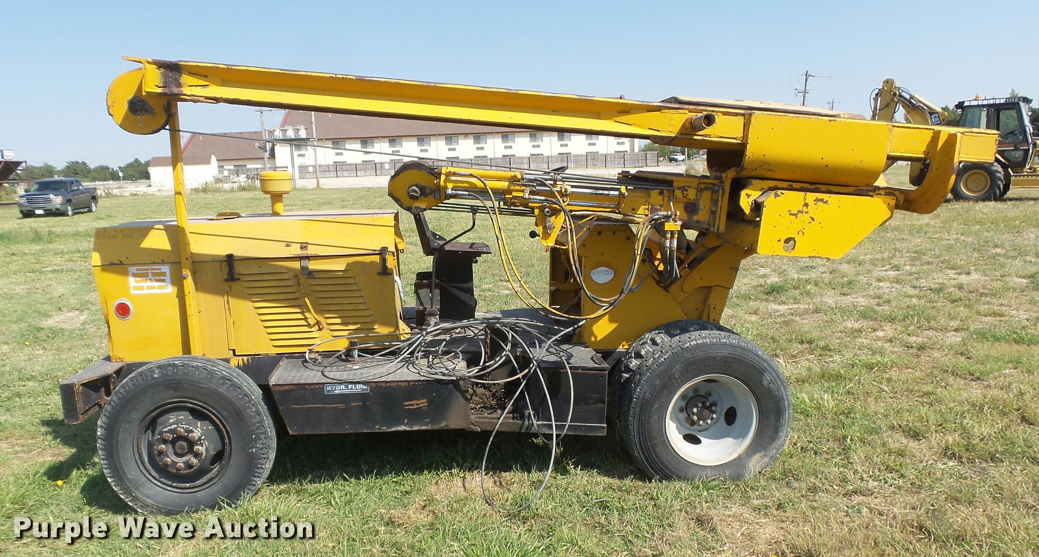 Purple Wave is selling a used Breaker or Hammer in Kansas. This item is a Arrow HJ1250R drop hammer with the following: Unknown hours on meter, John Deere 219DF01 four cylinder diesel engine, Serial 487444T, Manual transmission, 4F-1R gears, Rear steer, 12'H x 7'4"W mast, Additional cable, Side shift, Tilt, 7.50-16 tires, Welds, Hydraulic leaks, Non-operational brakes, Hammer frame cracked, Serial HJ1250300