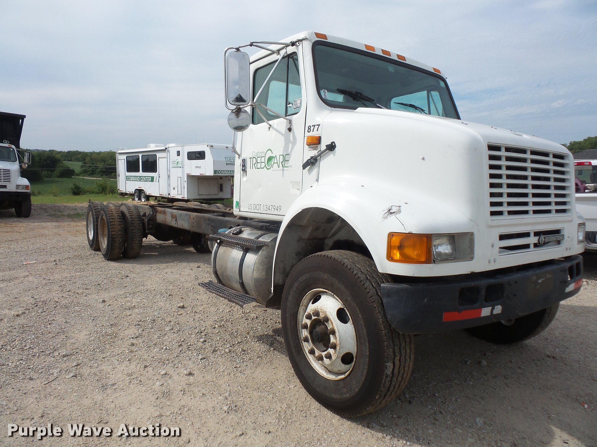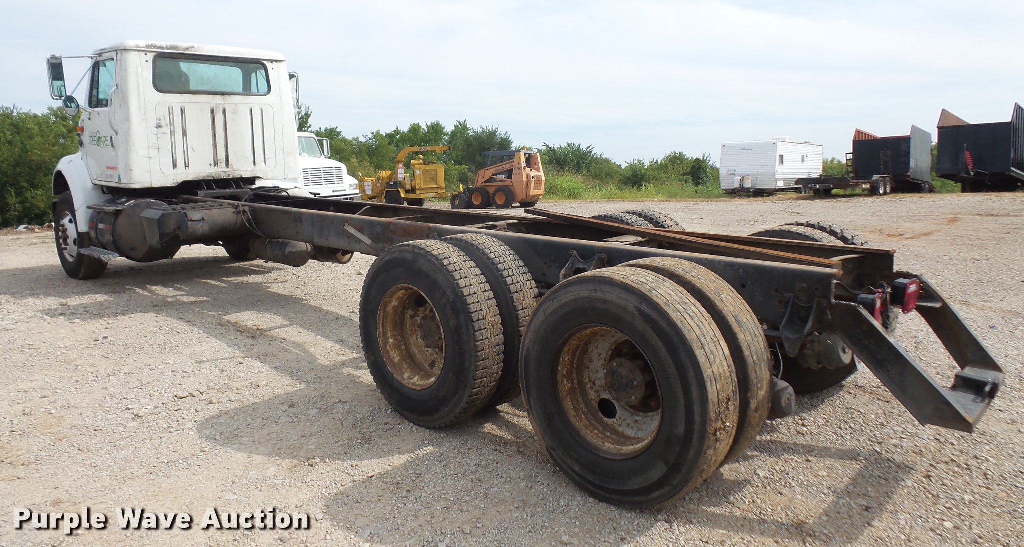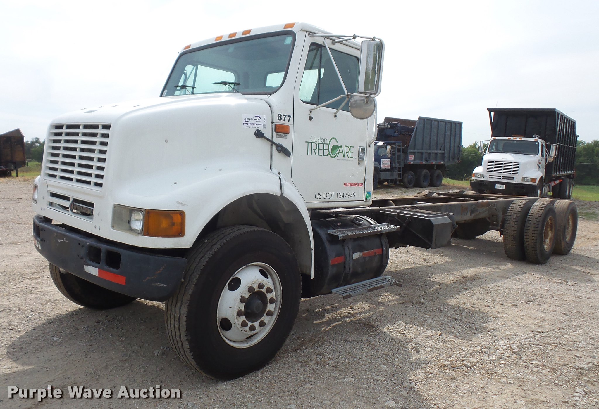 Purple Wave is selling a used Truck Chassis in Kansas. This item is a 1999 International 8100 cab and chassis with the following: 606,335 miles on odometer, Cummins M11 10.8L L6 turbo diesel engine, 305 HP, Eaton Fuller nine speed manual transmission, Tandem axle, Inter-axle differential lock, Heat, Cruise, AM/FM, Air suspension seat, Dual fuel tanks, 267" rear of cab to rear of frame, Double frame, Spring suspension, Air brakes, 11R22.5 tires