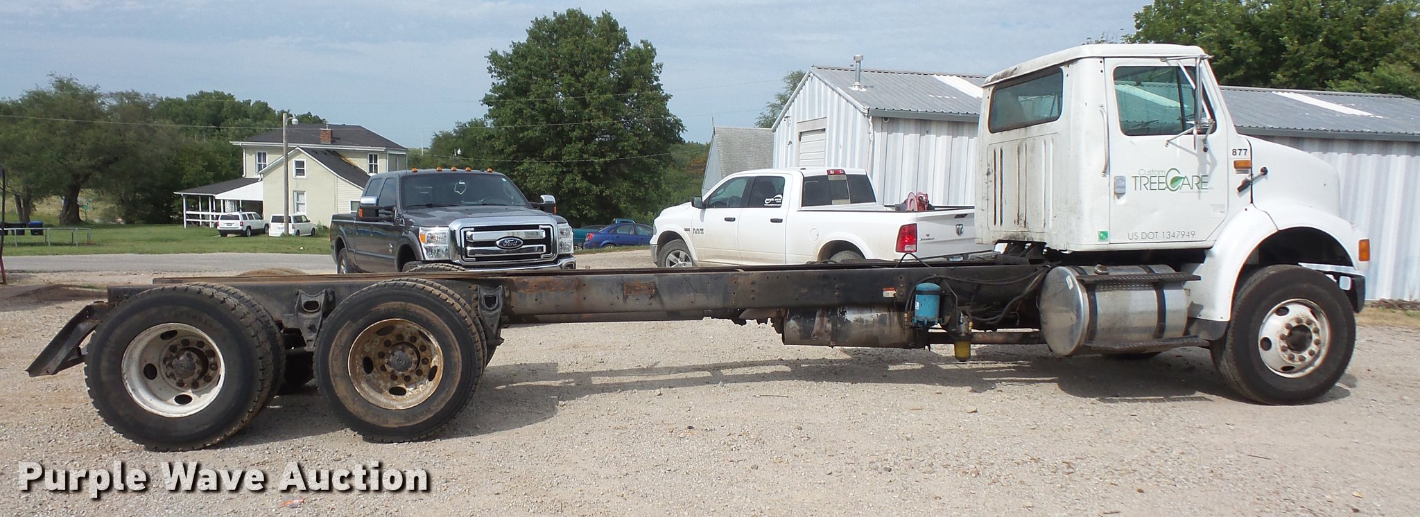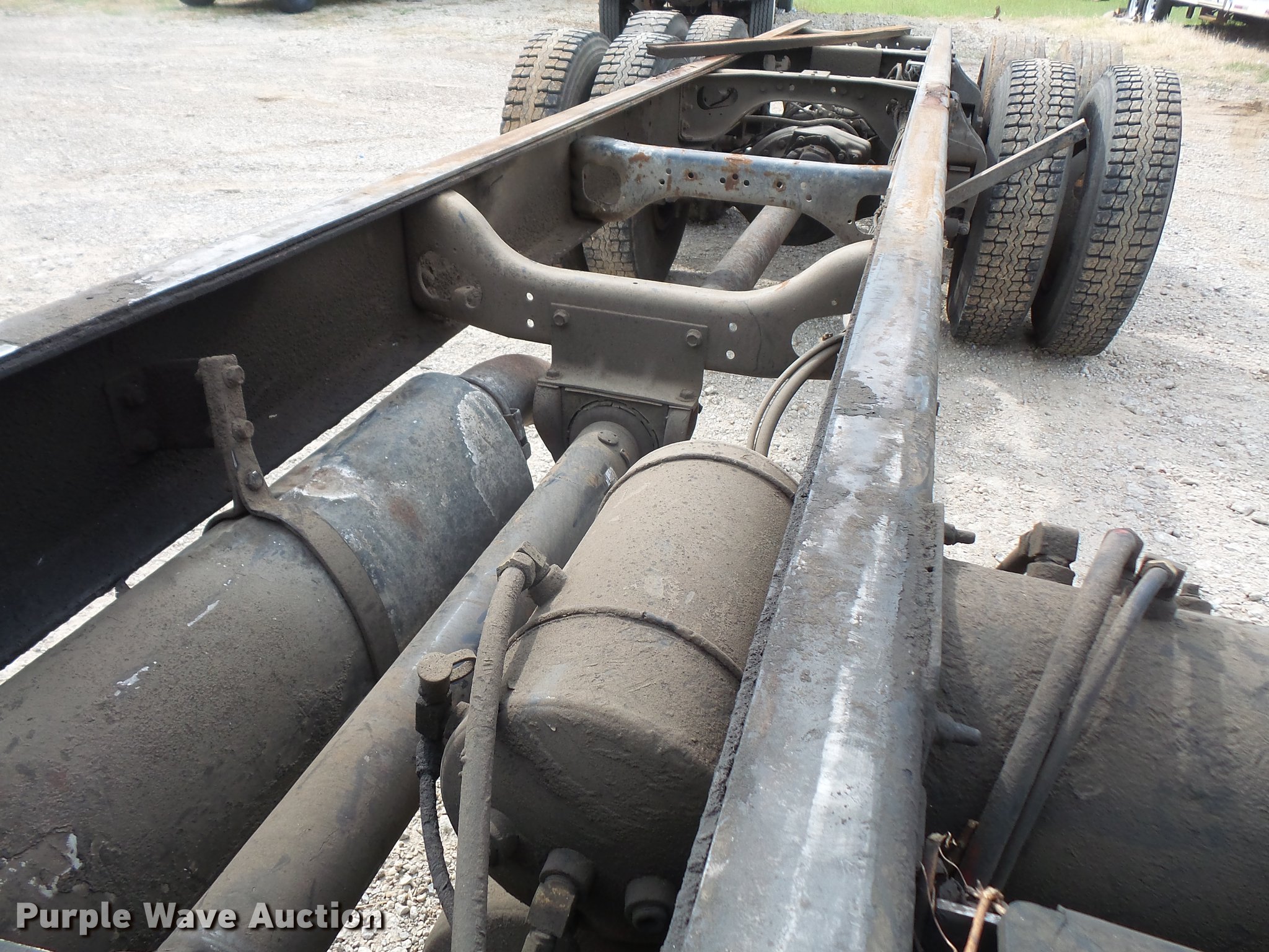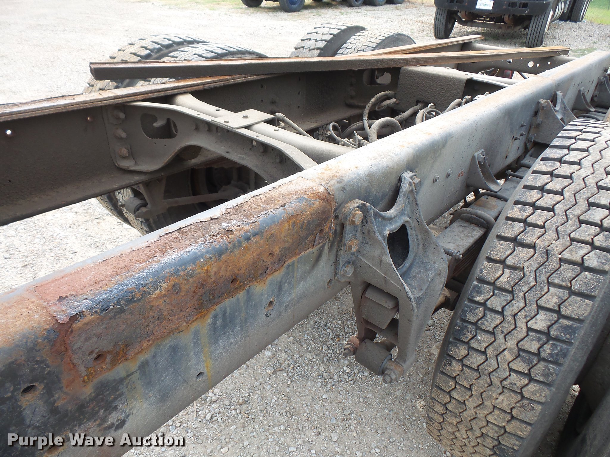 Purple Wave is selling a used Truck Chassis in Kansas. This item is a 1999 International 8100 cab and chassis with the following: 606,335 miles on odometer, Cummins M11 10.8L L6 turbo diesel engine, 305 HP, Eaton Fuller nine speed manual transmission, Tandem axle, Inter-axle differential lock, Heat, Cruise, AM/FM, Air suspension seat, Dual fuel tanks, 267" rear of cab to rear of frame, Double frame, Spring suspension, Air brakes, 11R22.5 tires