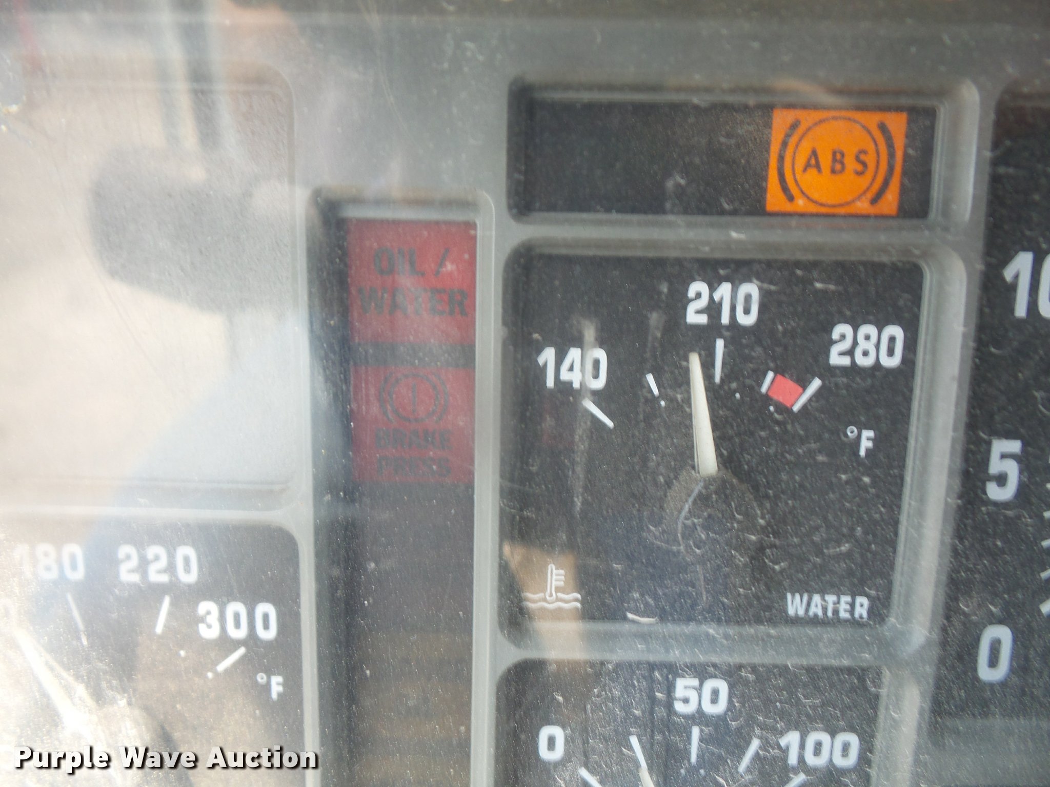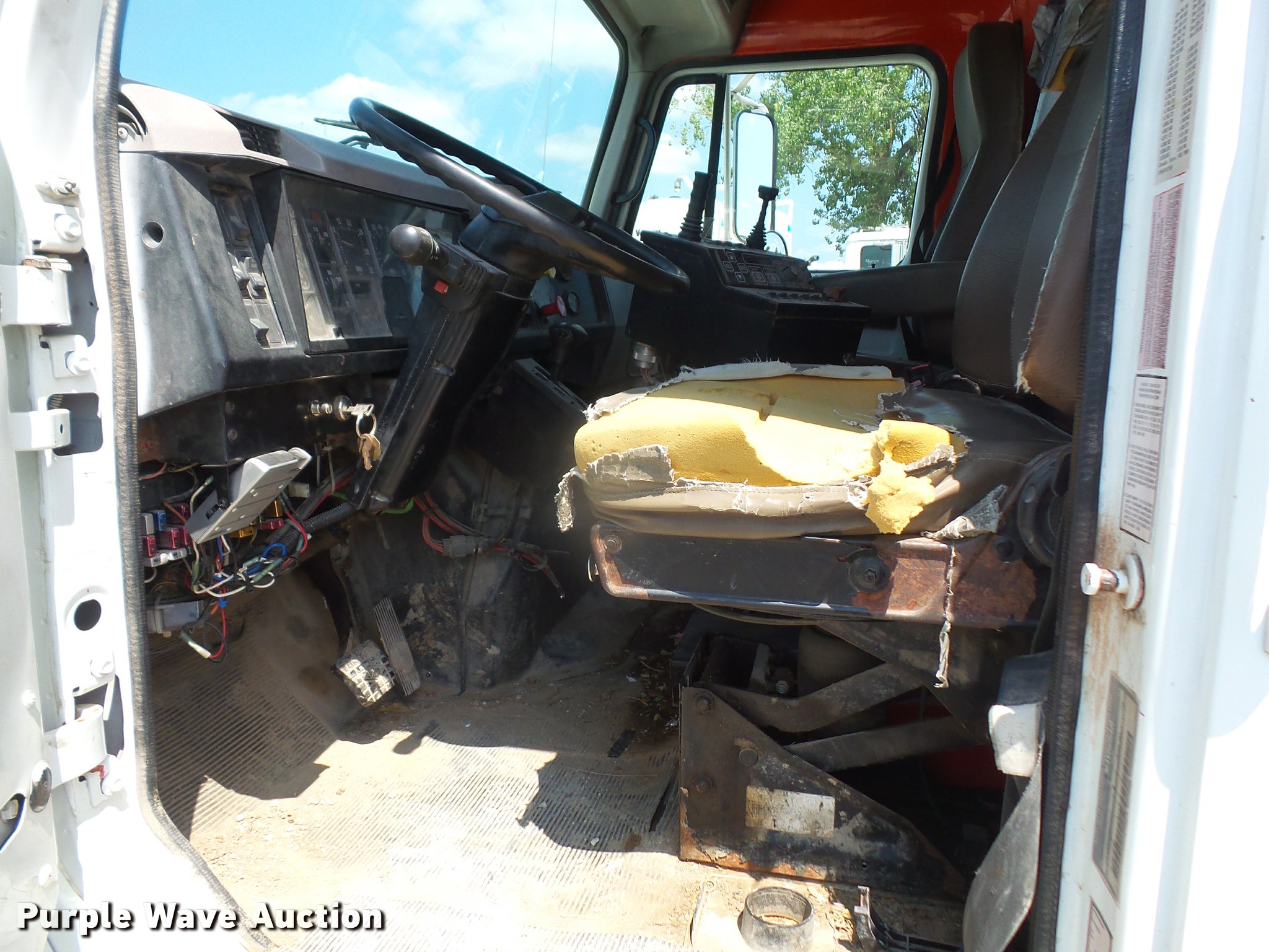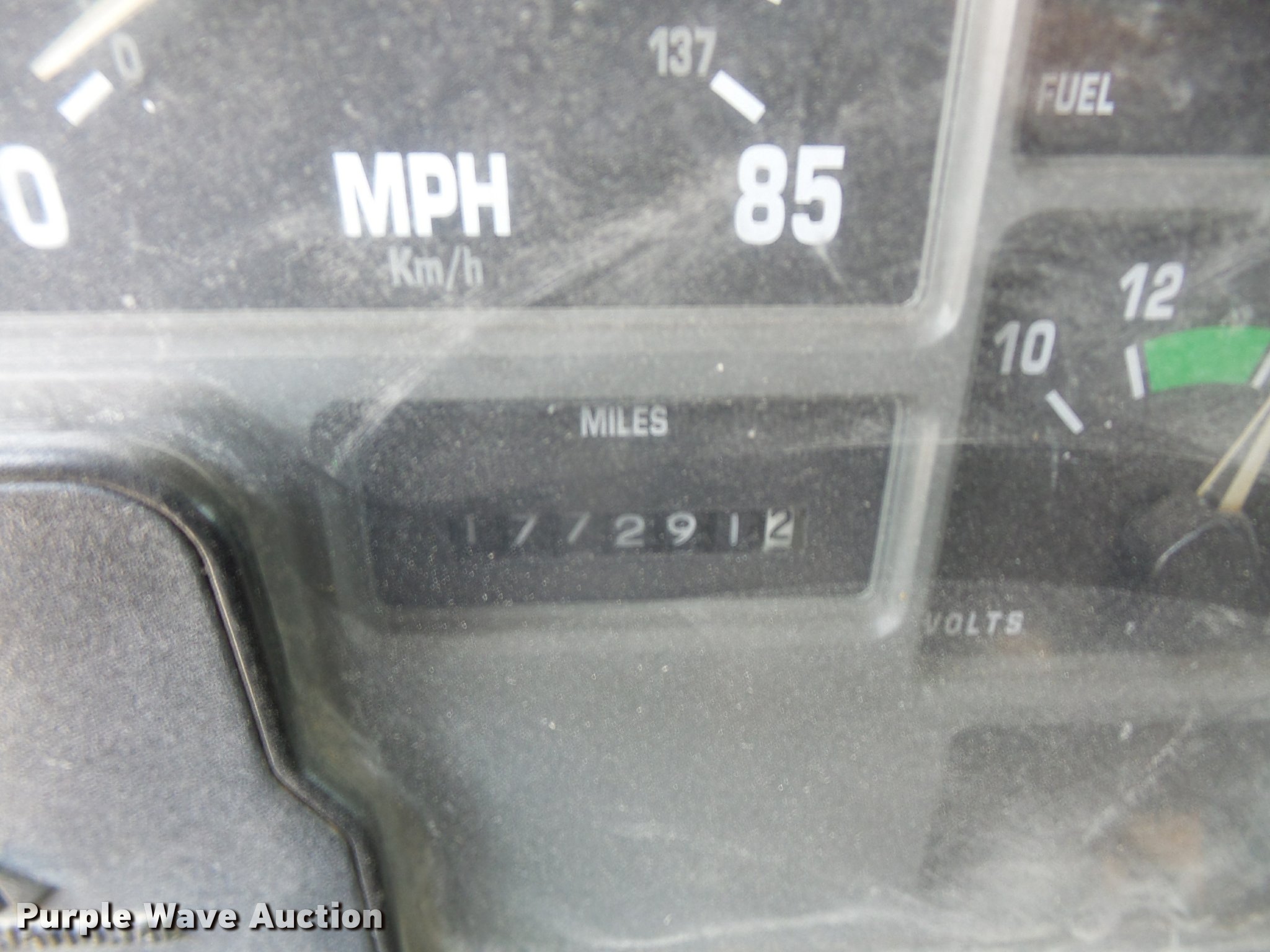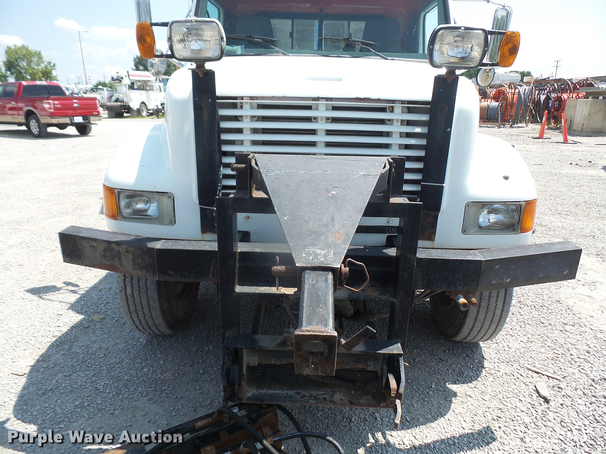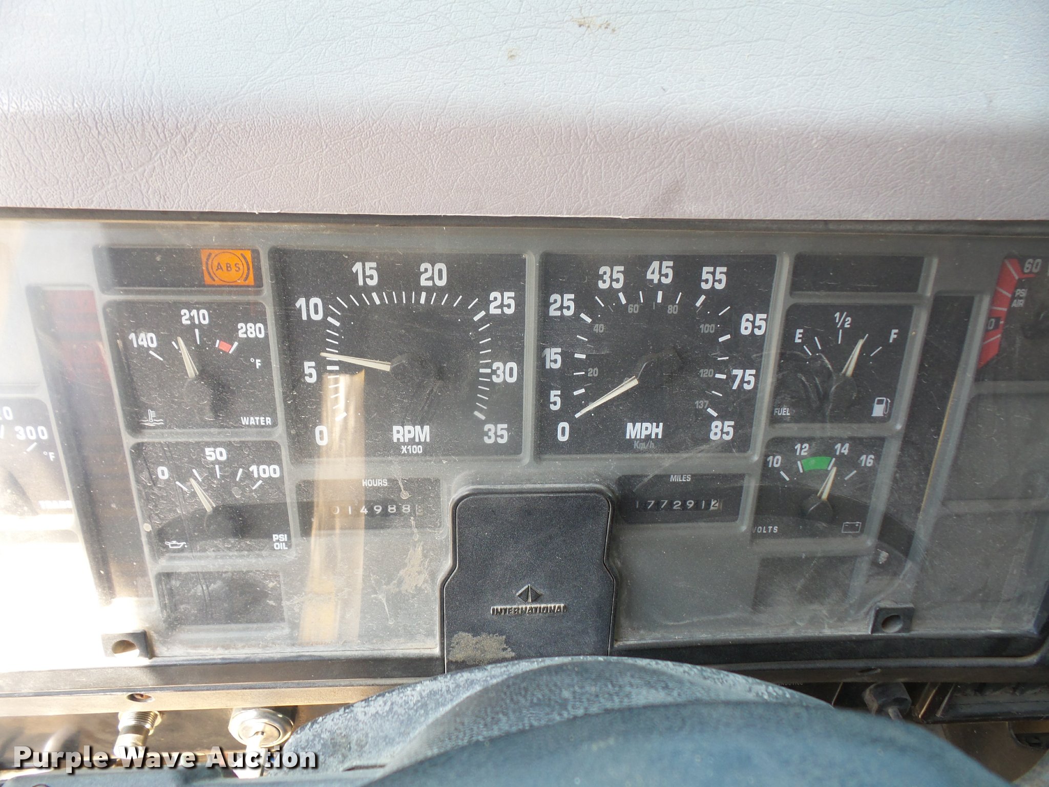 Purple Wave is selling a used Construction Dump Truck in Kansas. This item is a 1999 International 4900 dump truck with the following: 177,291 miles on odometer, 14,998 hours on meter, International DT530E 8.7L L6 turbo diesel engine, 250 HP, Automatic transmission, Tandem axle, Inter-axle differential lock, Heat, Cruise, AM/FM/weatherband, Air suspension seat, Front mounted PTO, 13'L x 96"W steel dump bed, 32" side height, 8" side board height, Single ram hoist, Manual operated end gate, Monroe 11'W snow plow, Dual fuel tanks, Pintle hitch, Spring over walking beam suspension, Air brakes, 176" wheelbase, 295/75R22.5 tires, GVWR 47,220 lbs, FAWR 13,220 lbs, IAWR 17,000 lbs, RAWR 17,000 lbs, Unit# 124
