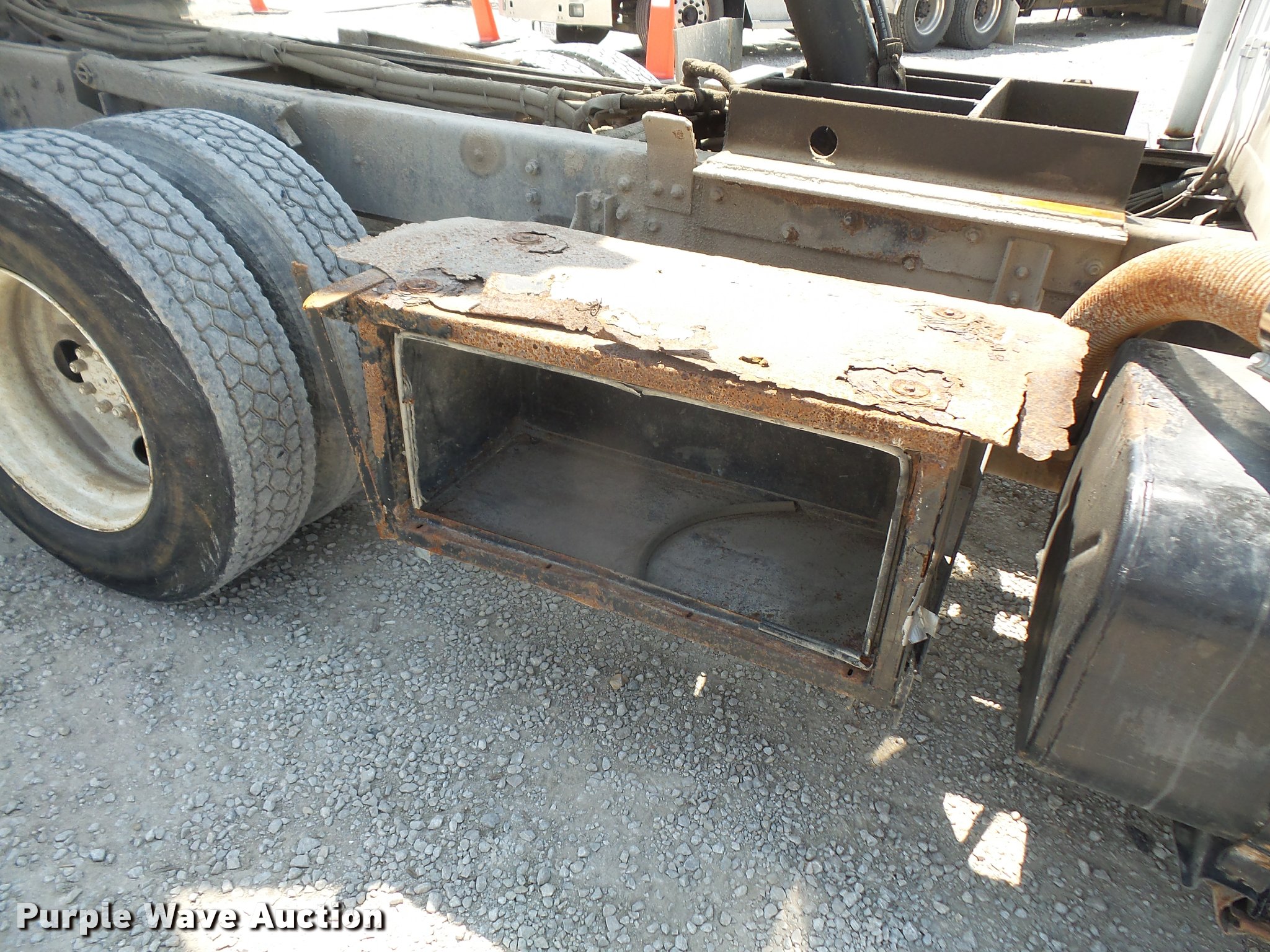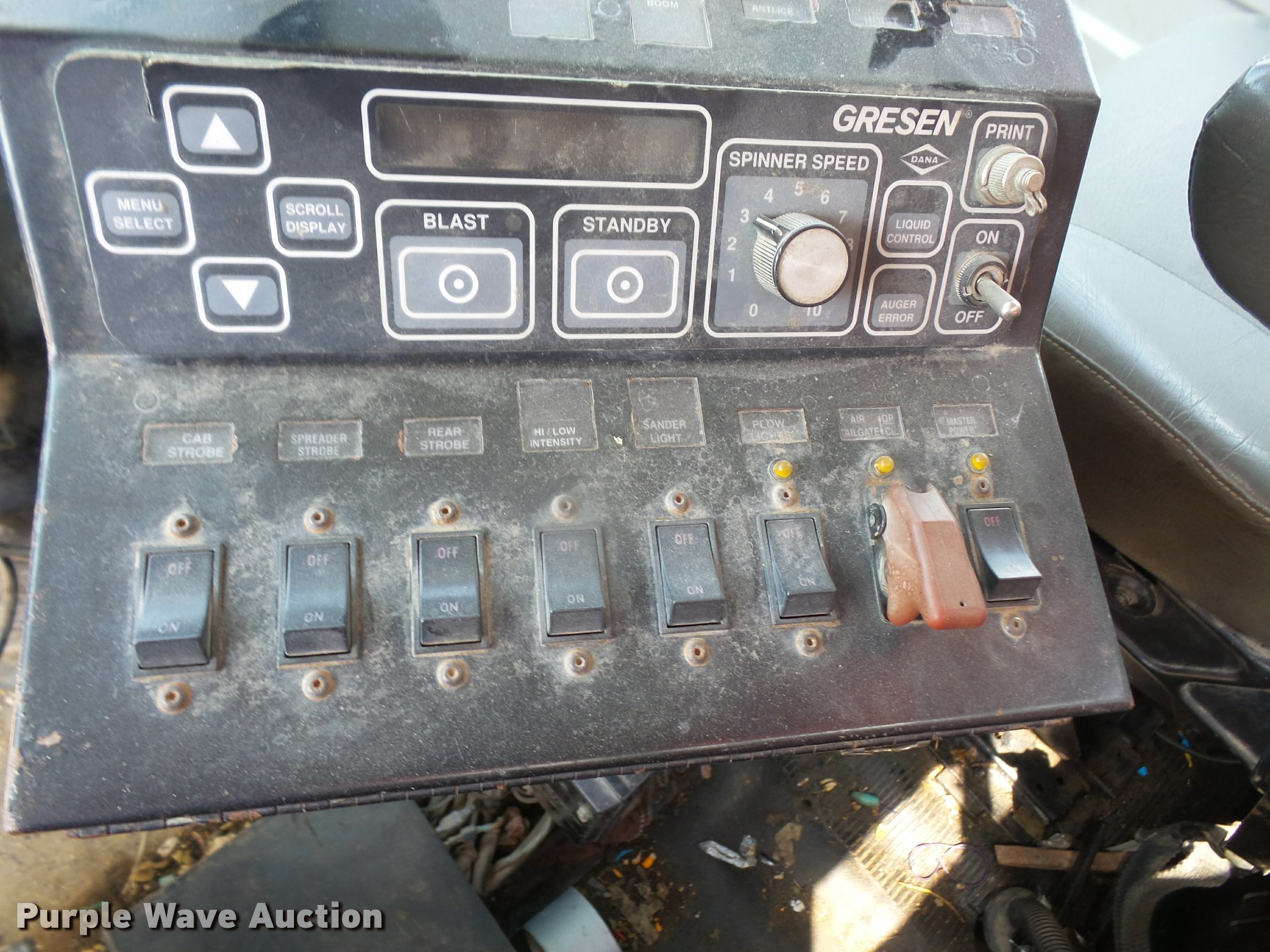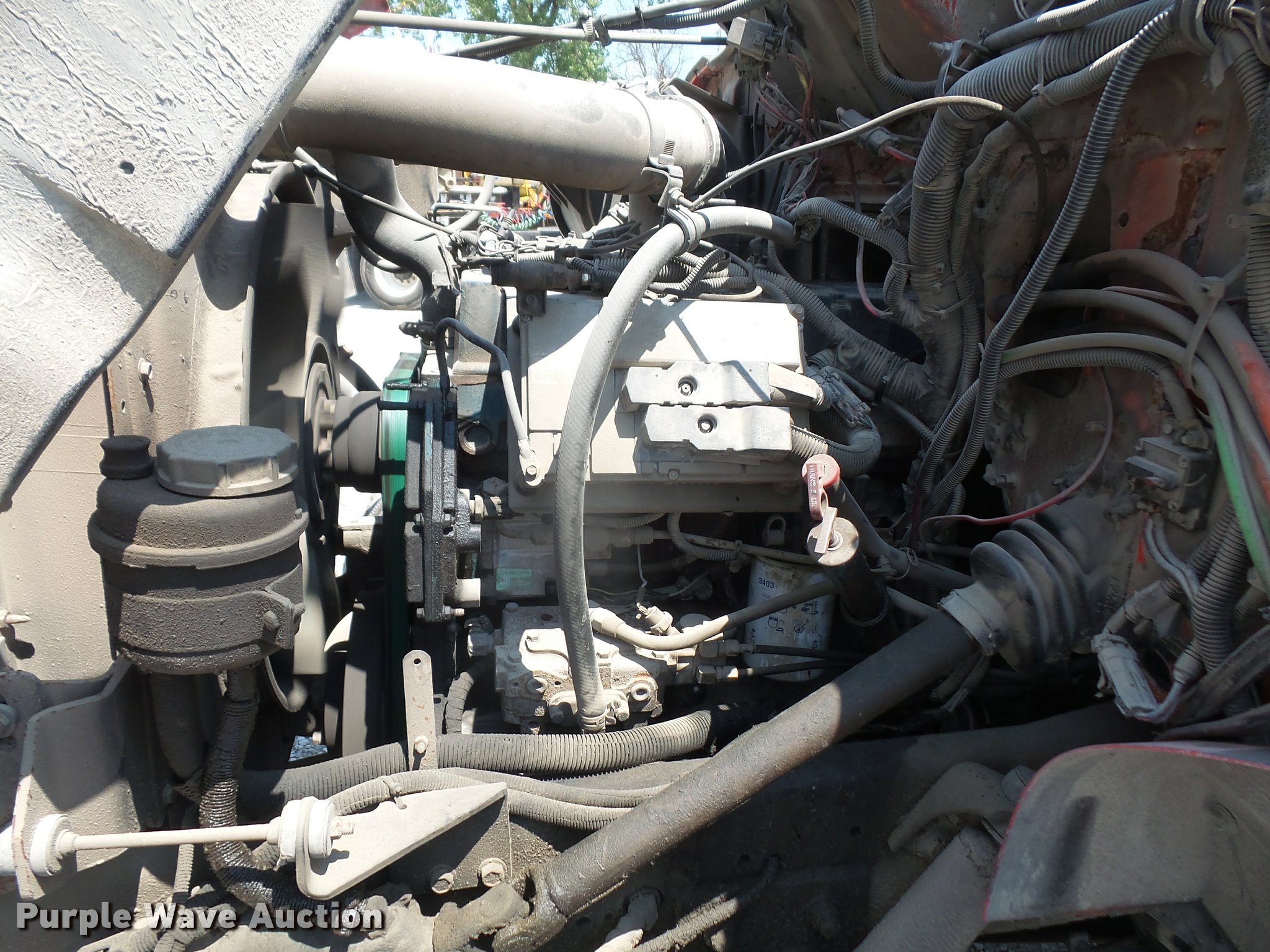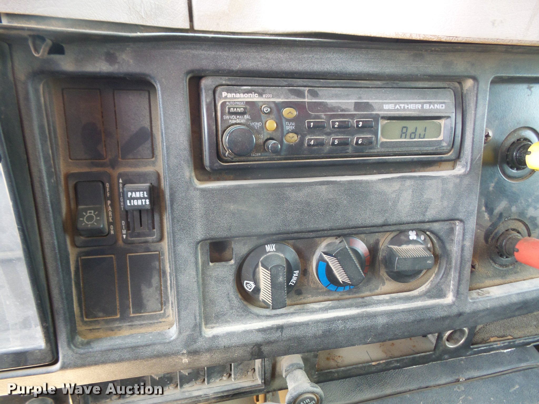 Purple Wave is selling a used Construction Dump Truck in Kansas. This item is a 1999 International 4900 dump truck with the following: 177,291 miles on odometer, 14,998 hours on meter, International DT530E 8.7L L6 turbo diesel engine, 250 HP, Automatic transmission, Tandem axle, Inter-axle differential lock, Heat, Cruise, AM/FM/weatherband, Air suspension seat, Front mounted PTO, 13'L x 96"W steel dump bed, 32" side height, 8" side board height, Single ram hoist, Manual operated end gate, Monroe 11'W snow plow, Dual fuel tanks, Pintle hitch, Spring over walking beam suspension, Air brakes, 176" wheelbase, 295/75R22.5 tires, GVWR 47,220 lbs, FAWR 13,220 lbs, IAWR 17,000 lbs, RAWR 17,000 lbs, Unit# 124