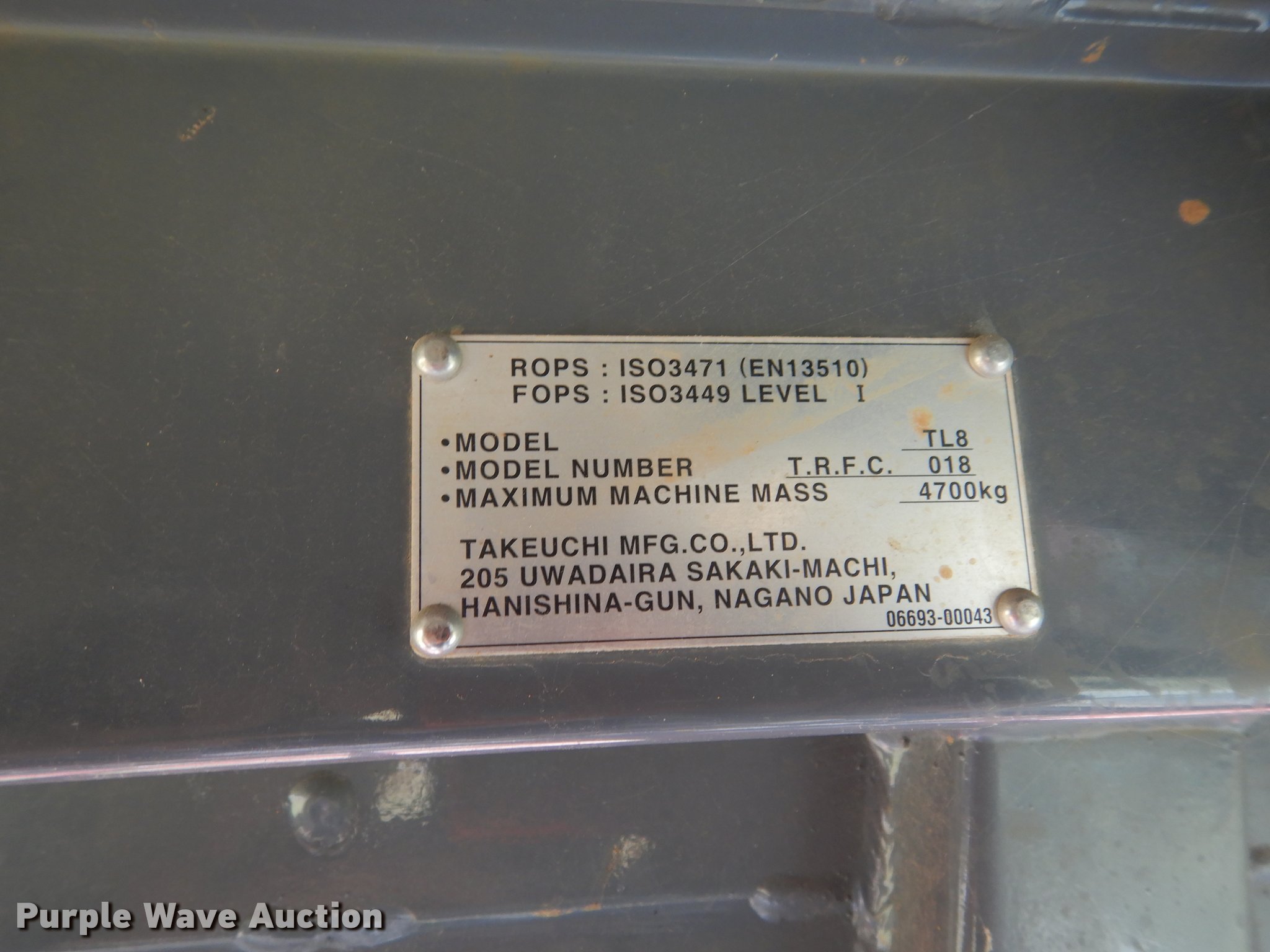 Takeuchi TL8 skid steer has sold in Rainbow, Texas for $20350. Item DC5988 sold on October 12th, 2017.
