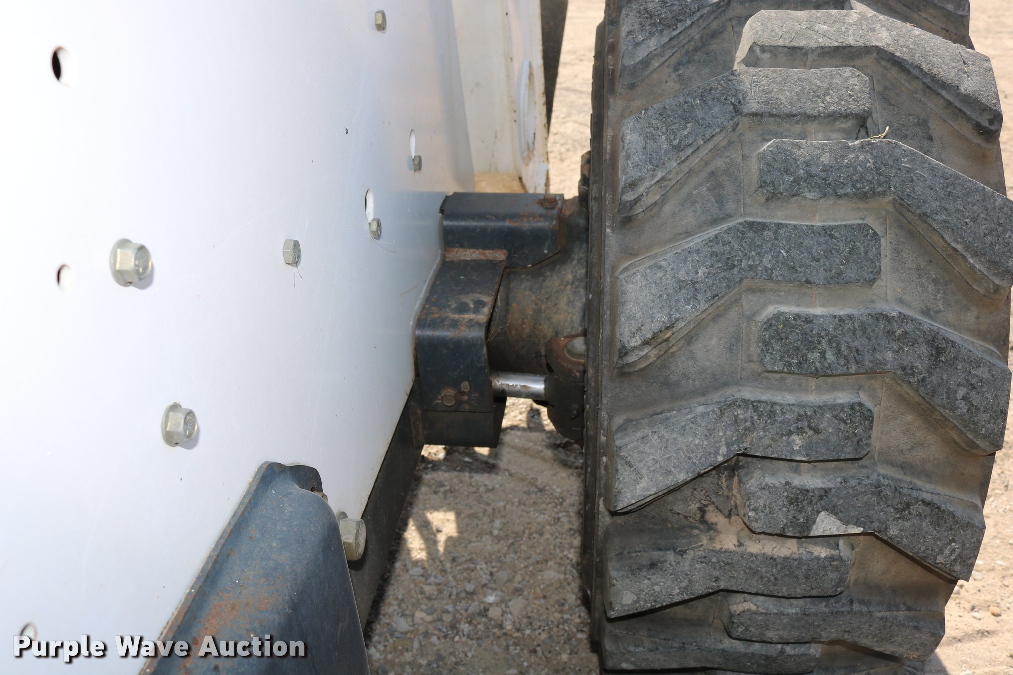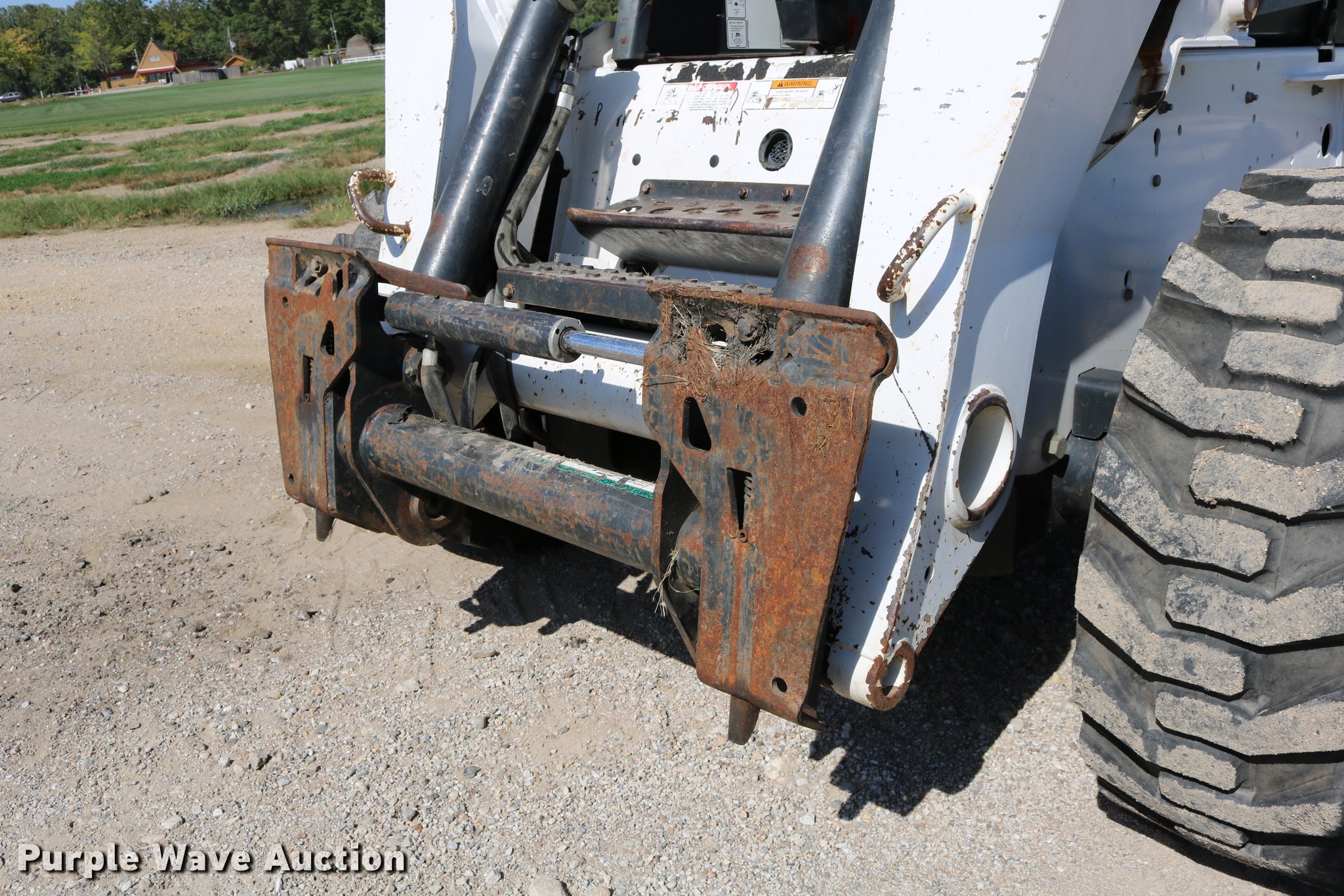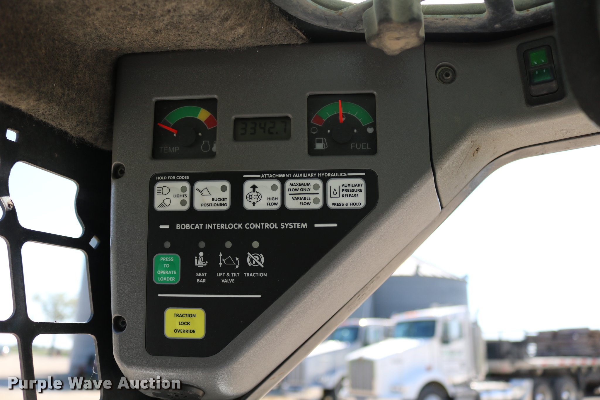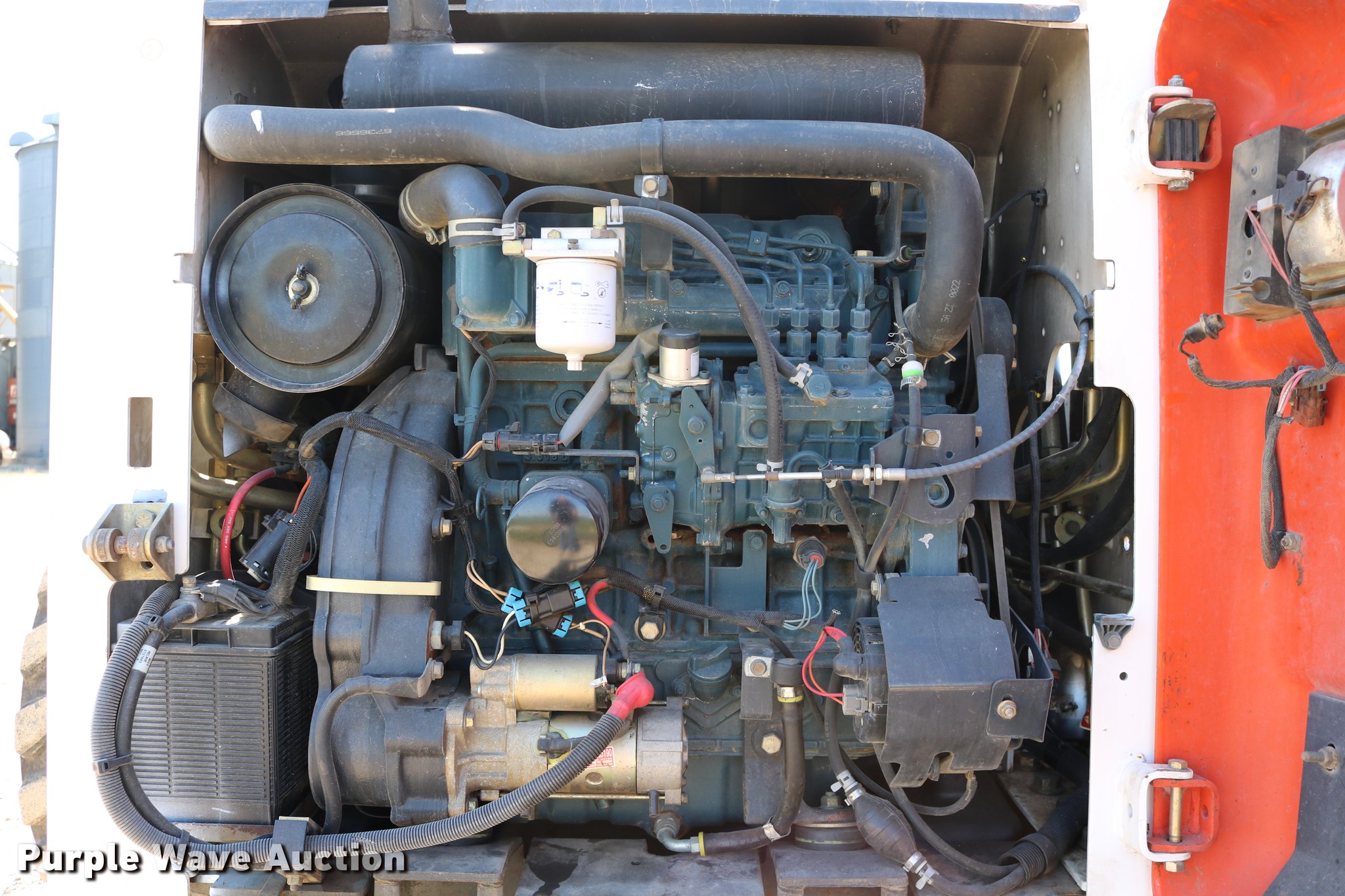 Purple Wave is selling a used Skid Steer Loader in Kansas. This item is a 2007 Bobcat A300 skid steer with the following: 3,343 hours on meter, Kubota four cylinder diesel engine, Two speed hydrostatic transmission, Four wheel steer, Enclosed cab, Joystick controls, EMS panel, Front and rear work lights, Backup alarm, Hydraulic quick coupler, Auxiliary hydraulics, Counter weights, 12-16.5 tires, Non-operational backup alarm, Serial 539911734