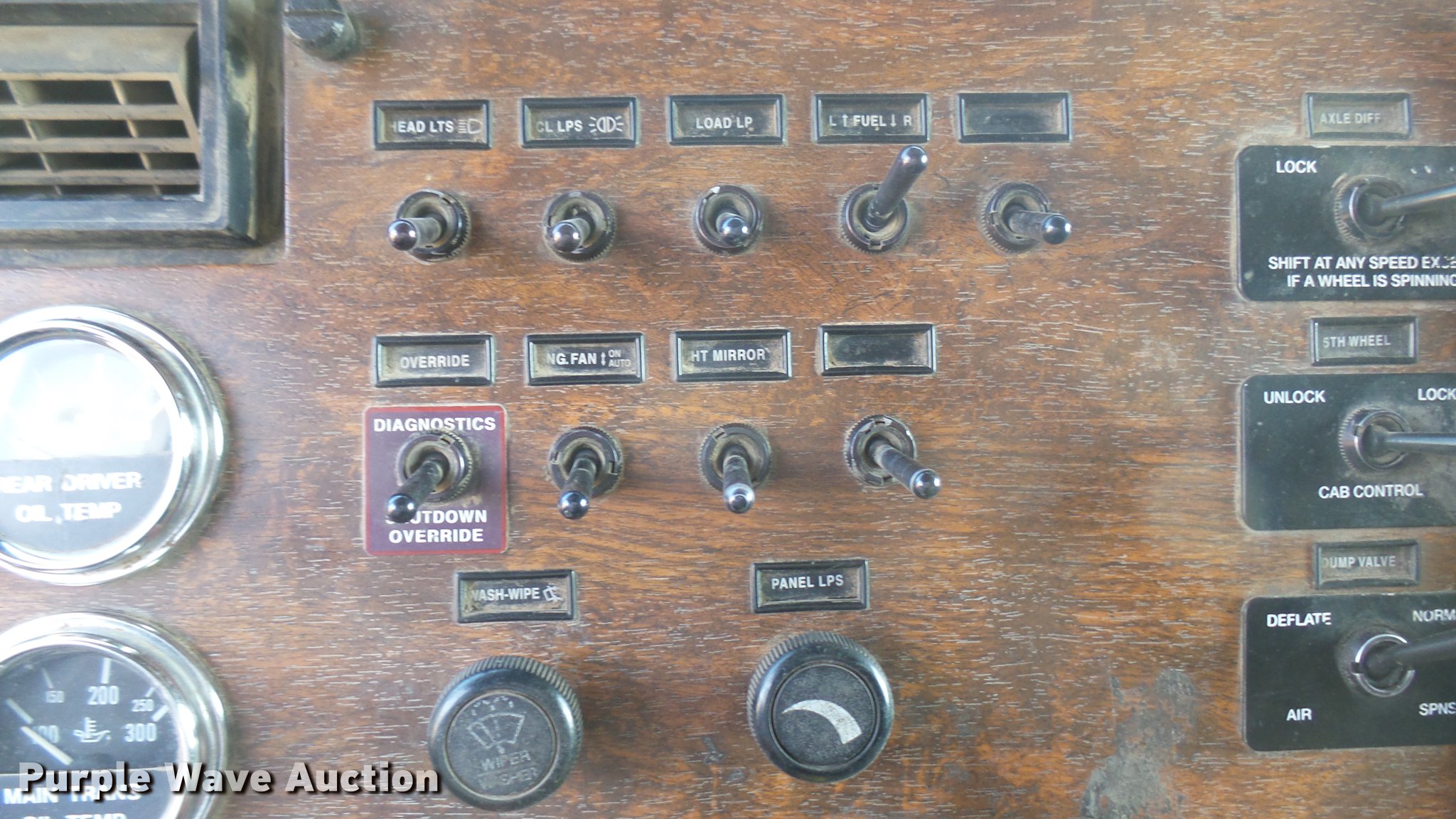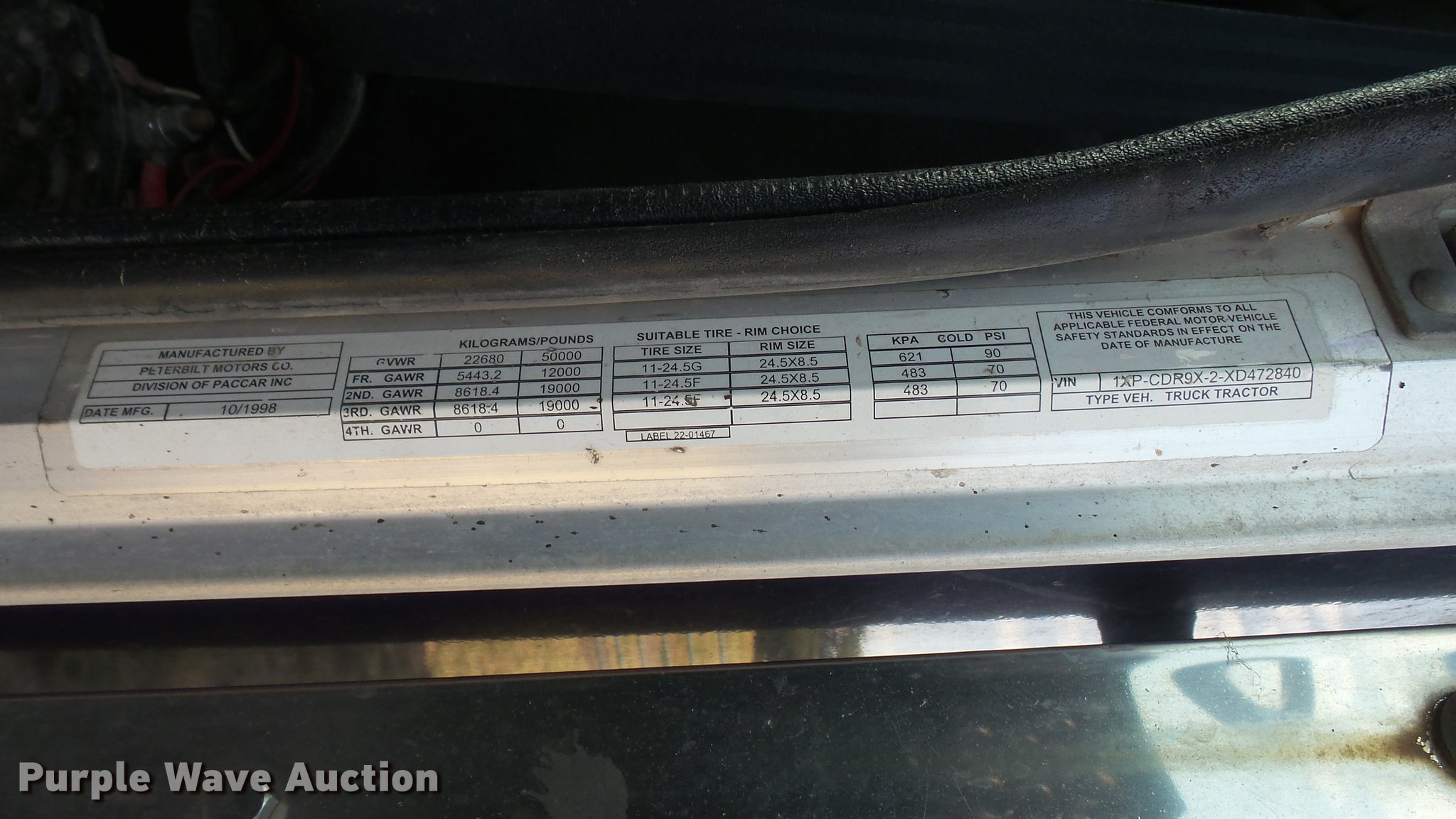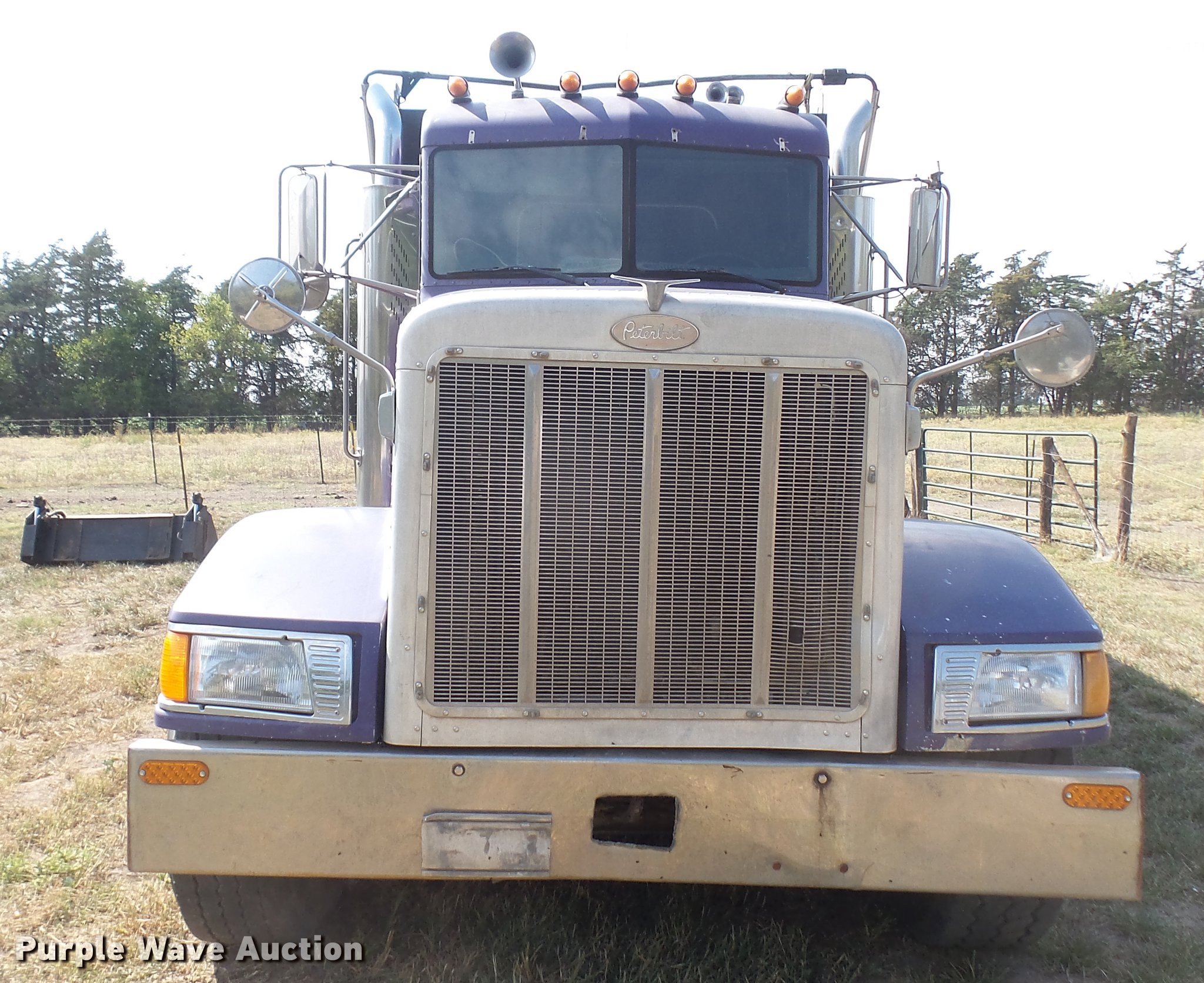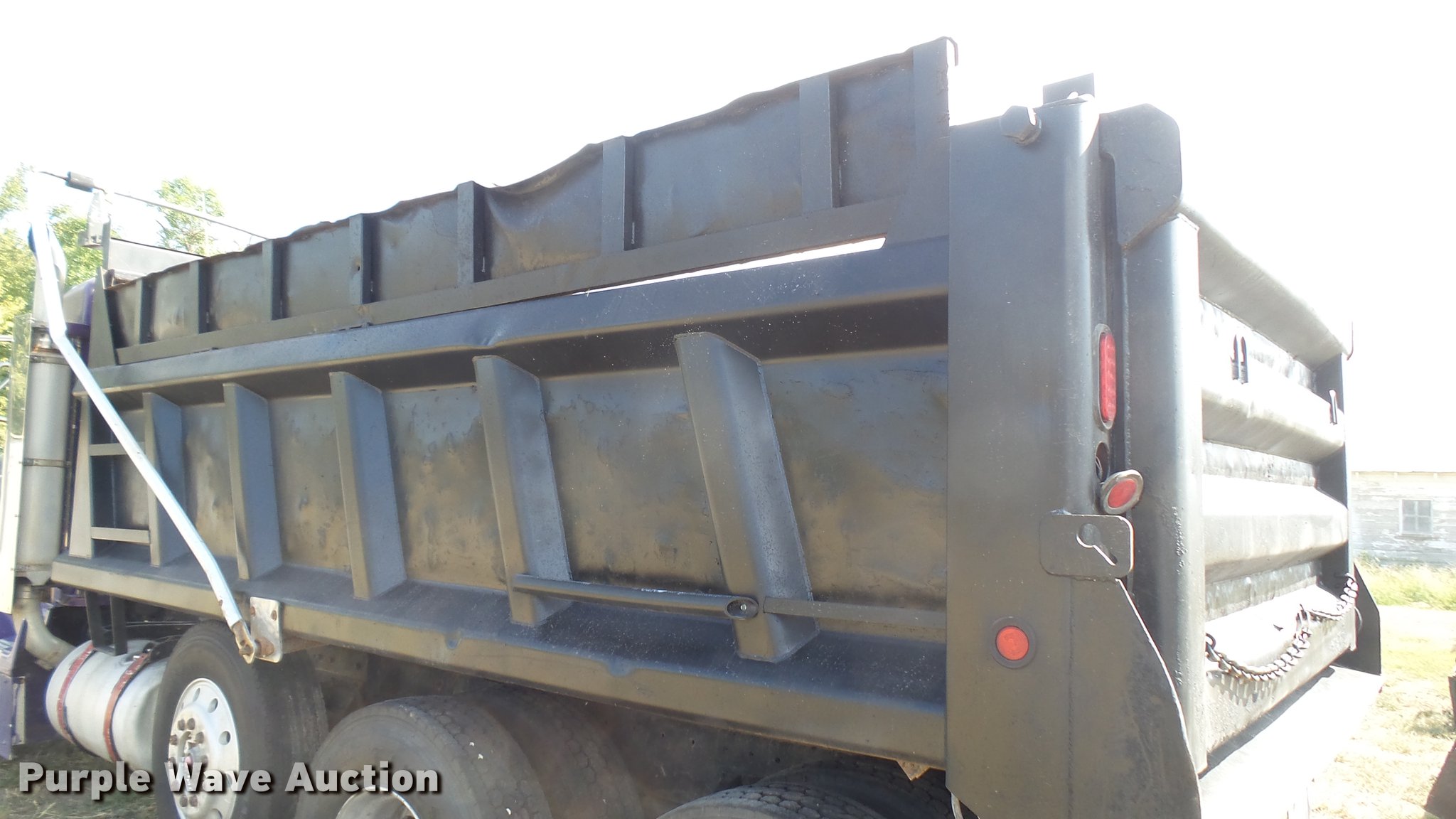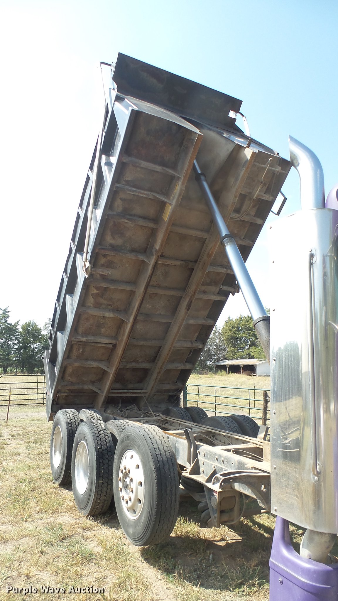 Purple Wave is selling a used Construction Dump Truck in Kansas. This item is a 1999 Peterbilt 377 dump truck with the following: 1,248,139 miles on odometer, Detroit Diesel Series 60 12.7L L6 diesel engine, Eaton Fuller 10 speed manual transmission, Tandem axle, Tag lift axle, Inter-axle differential lock, AC and heat, Cruise, Heated mirrors, Air ride cab, PTO, Heil steel dump bed, 16'L x 8'W, 48" side height, Roll tarp, Frame only,, Single fuel tank, Air suspension, Air brakes, 385/65R22.5 front tires, 11R22.5 rear tires, GVWR 50,000 lbs, FAWR 12,000 lbs, IAWR 19,000 lbs, RAWR 19,000 lbs, Passenger seat removed