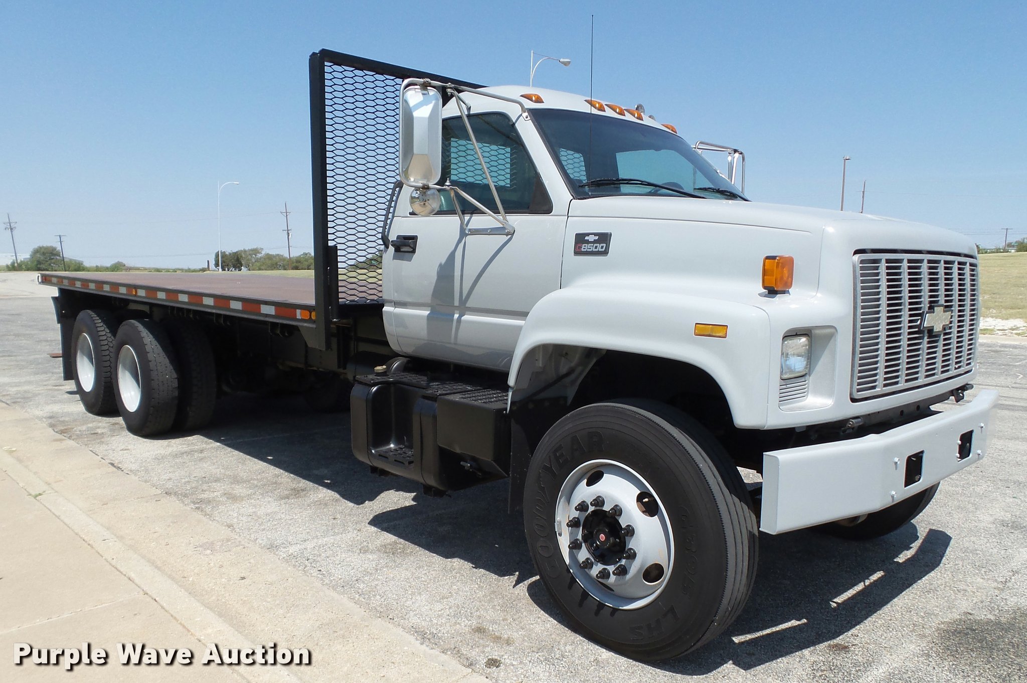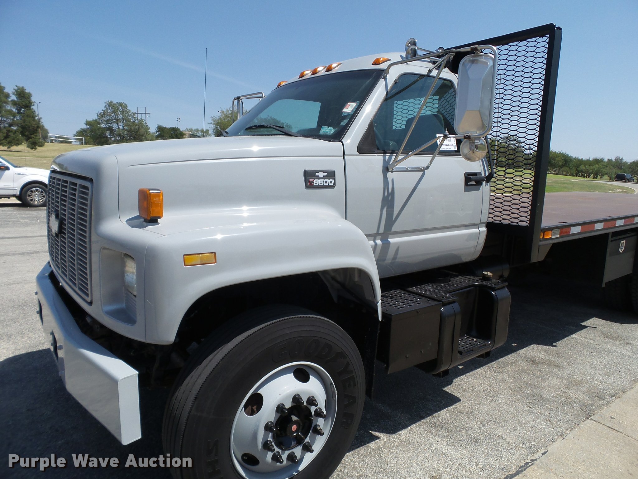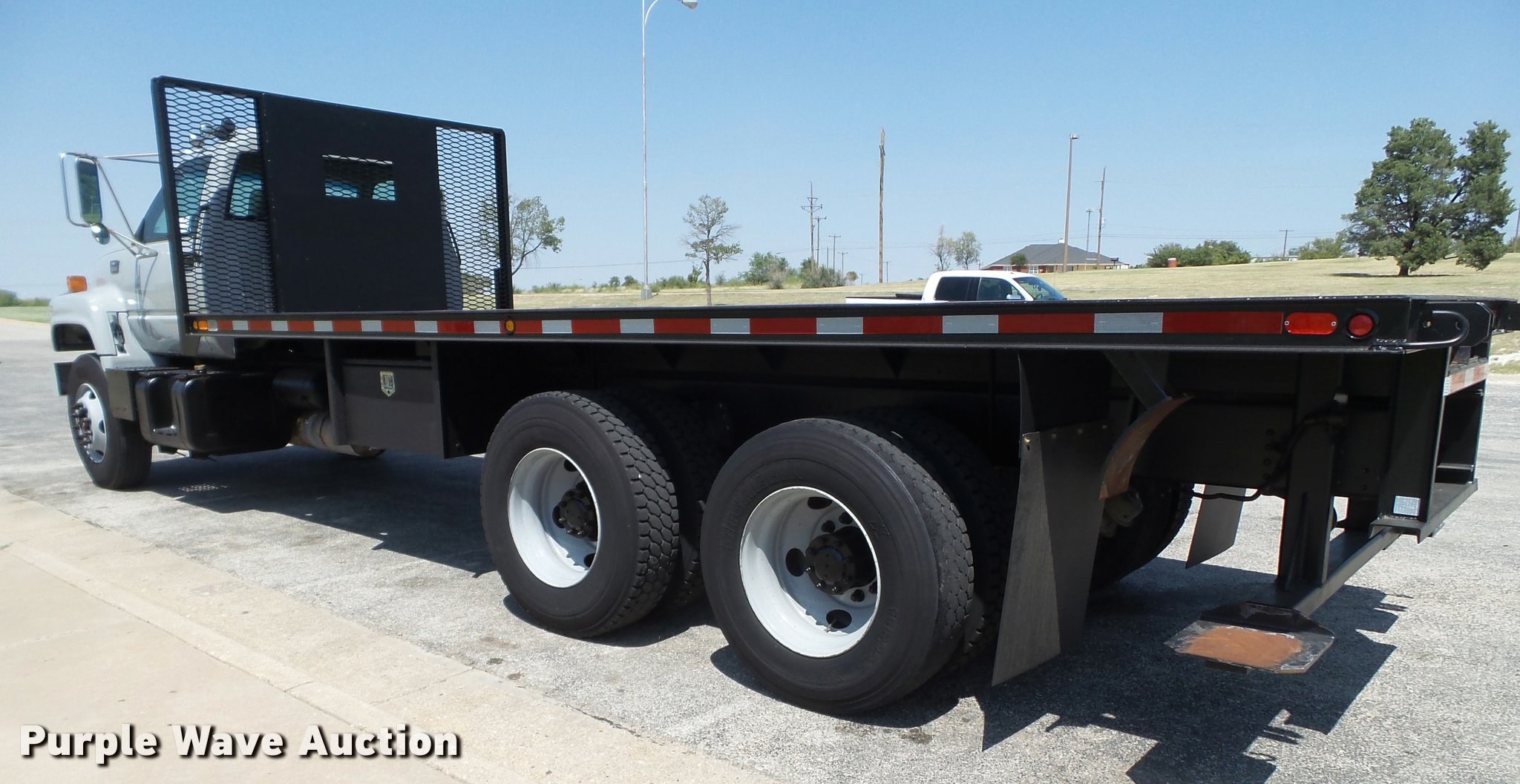Purple Wave is selling a used Flat Bed Truck in Texas. This item is a 2002 Chevrolet C7500 flatbed truck with the following: 189,551 miles on odometer, Caterpillar 3126 7.2L L6 turbo diesel engine, 300 HP, Serial CKM31830, Eaton Fuller eight speed manual transmission, Tandem axle, AC and heat, AM/FM, Spring suspension seat, Front tow hooks, Lift-Bodies Inc 21 steel flatbed, 21'L, Under bed storage box, Forklift mount, Serial 7508, Dual fuel tanks, Spring suspension, Air brakes, 11R22.5 tires, GVWR 52,080 lbs