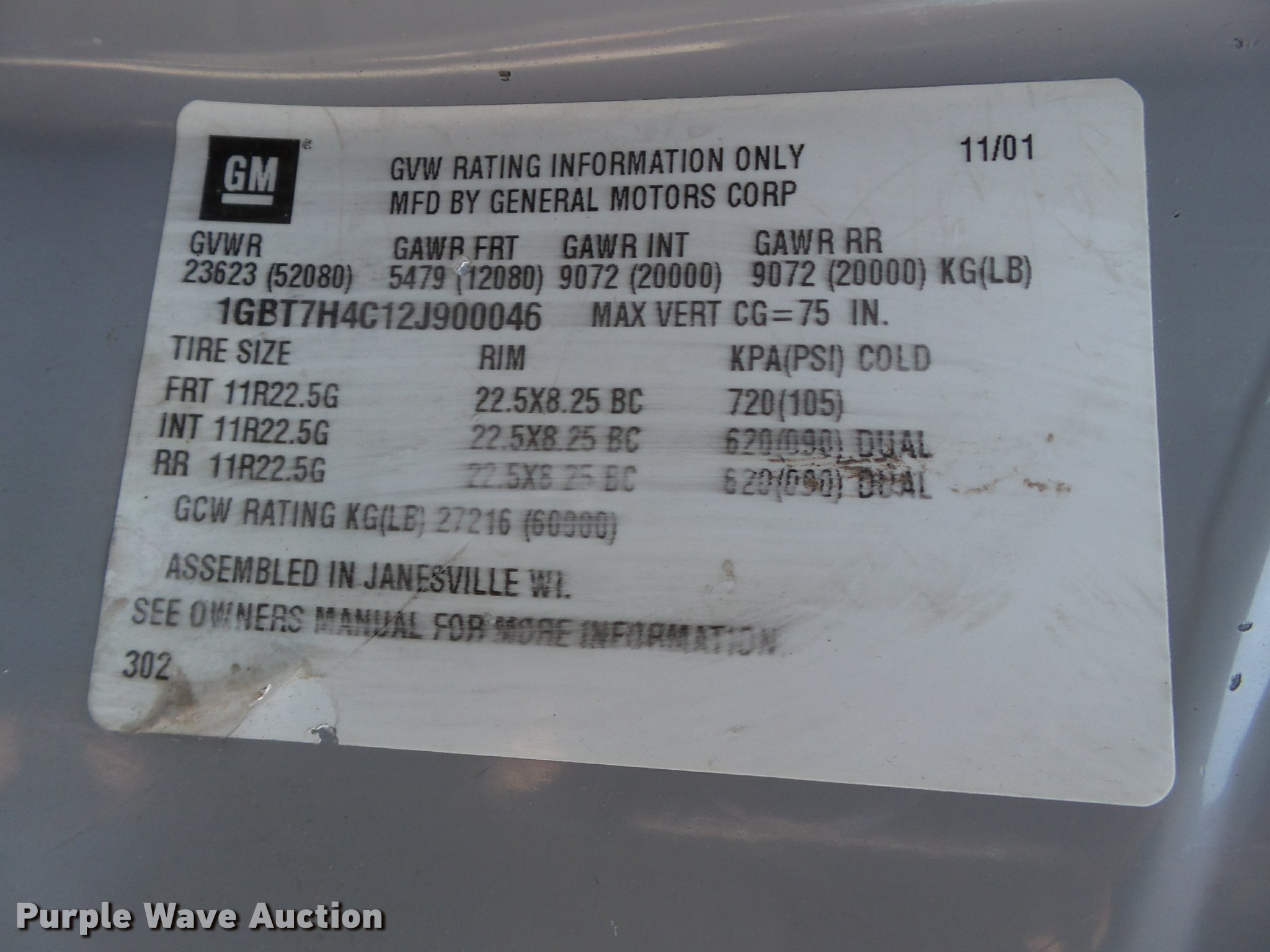 Take a look at this used 2002 Chevrolet C7500 flatbed truck being sold on October 12th, 2017 in the SOLD! October 12 Construction Equipment Auction made by Chevrolet. Take a look at all of the item information below or take a look at similar auctions for Trucks.