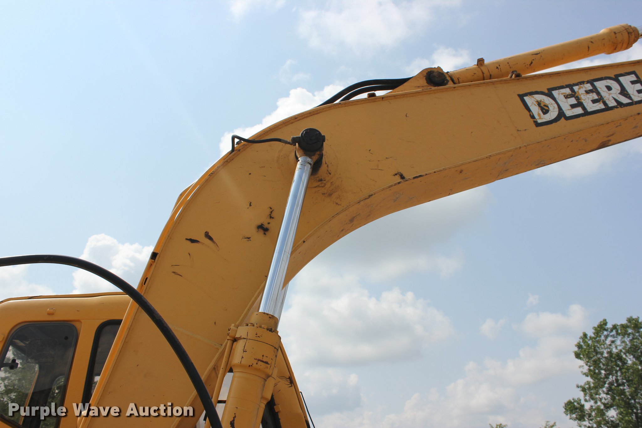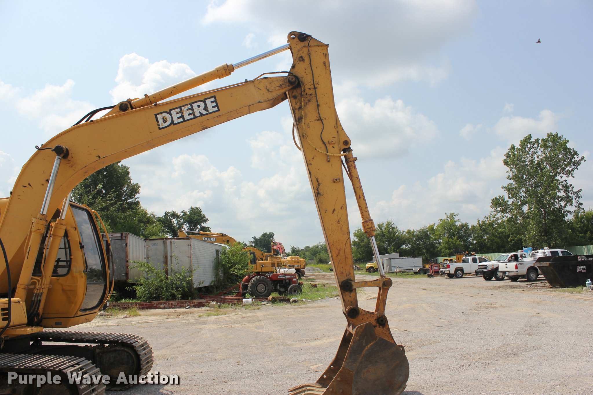 Purple Wave is selling a used Hydraulic Excavator in Oklahoma. This item is a 2000 John Deere 120 excavator with the following: 9,765 hours on meter, John Deere four cylinder turbo diesel engine, Hydrostatic transmission, EROPS, Heat, Suspension seat, Pattern changer, Front work lights, Standard boom, John Deere J075H 28"W bucket, (4) bolt-on teeth, 23 3/4"W steel triple grouser track pads, Hydraulic issue, inoperable, Serial P00120X031339