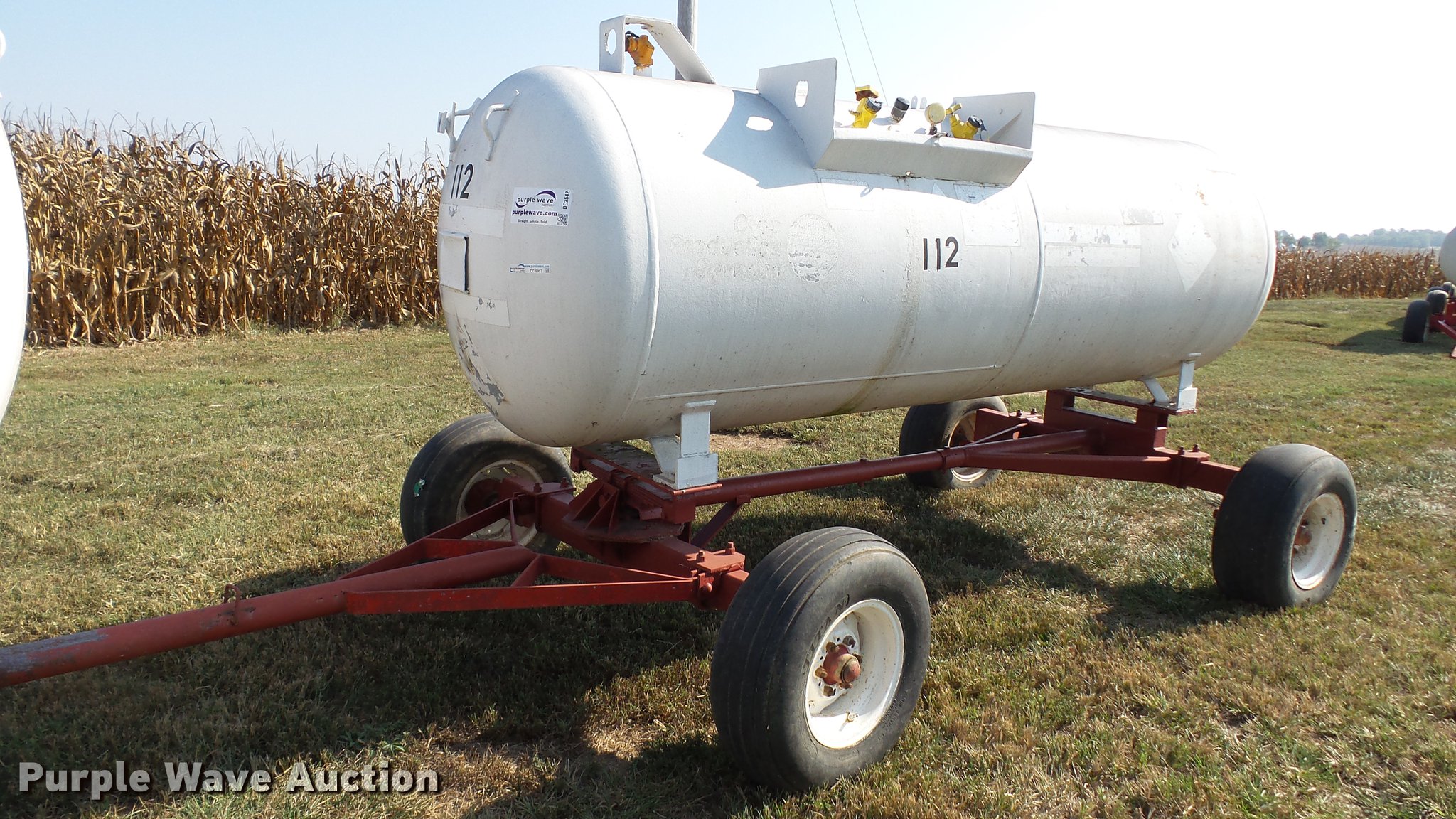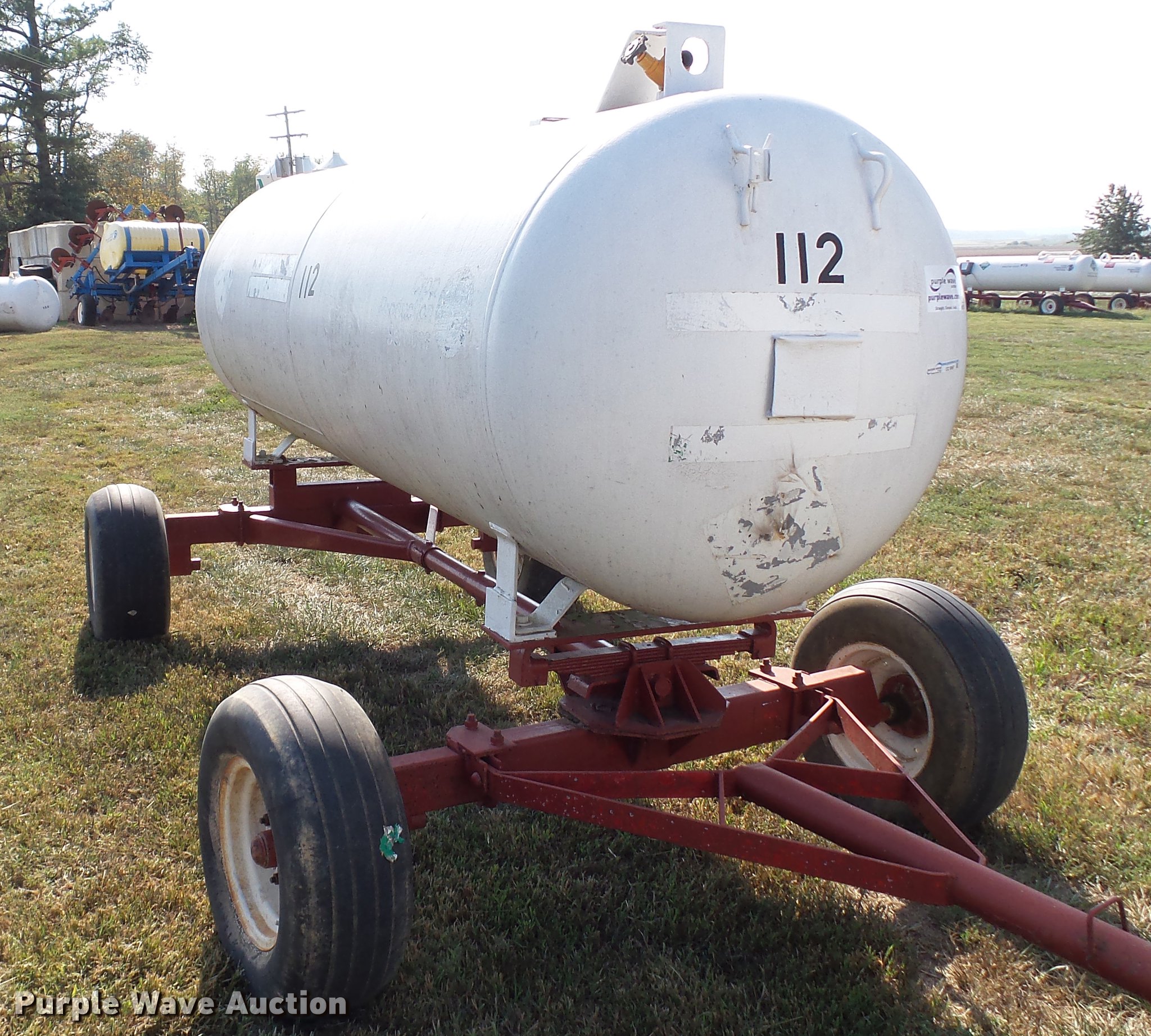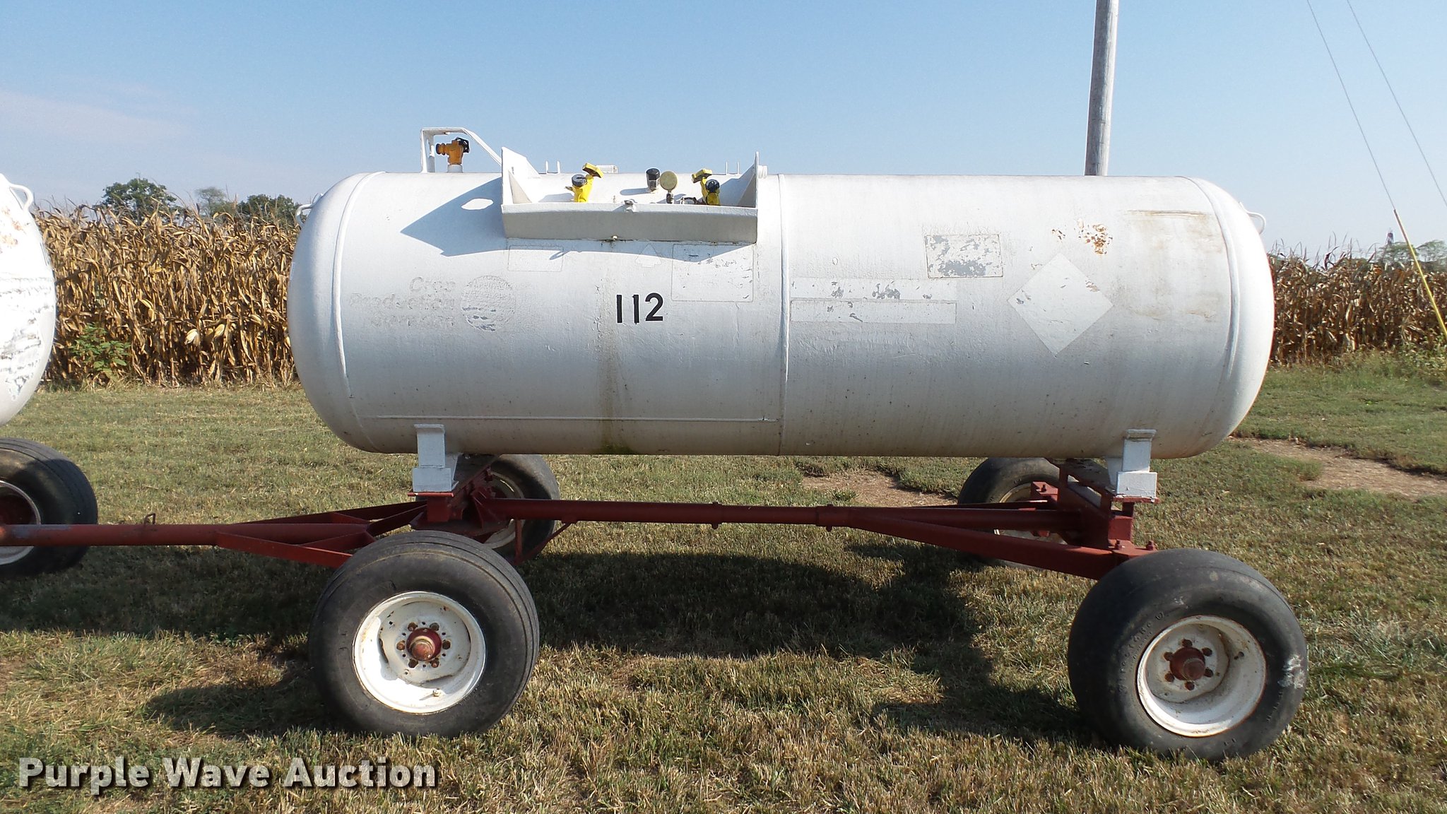 Purple Wave is selling a used Applicator Attach. in Indiana. This item is a Anhydrous ammonia nurse tank with the following: 1,000 gallon capacity, Front pin hitch, Rear pin hitch, 11L-15 tires, Unit# 112