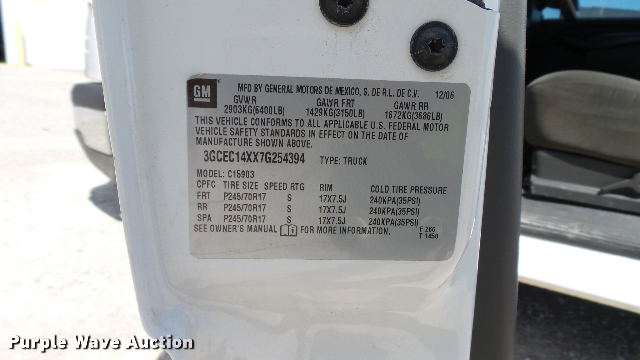 Purple Wave is selling a used 1/2 Ton Pickup or Van in Kentucky. This item is a 2007 Chevrolet Silverado Classic 1500 pickup truck with the following: 201,464 miles on odometer, 4.3L V6 OHV 12V gas engine, Automatic transmission, AC and heat, Tilt, AM/FM/CD, Manual windows and locks, Cloth interior, Long bed, Receiver hitch, Trailer wiring, 245/70R17 tires, Steel not included, will be removed prior to auction