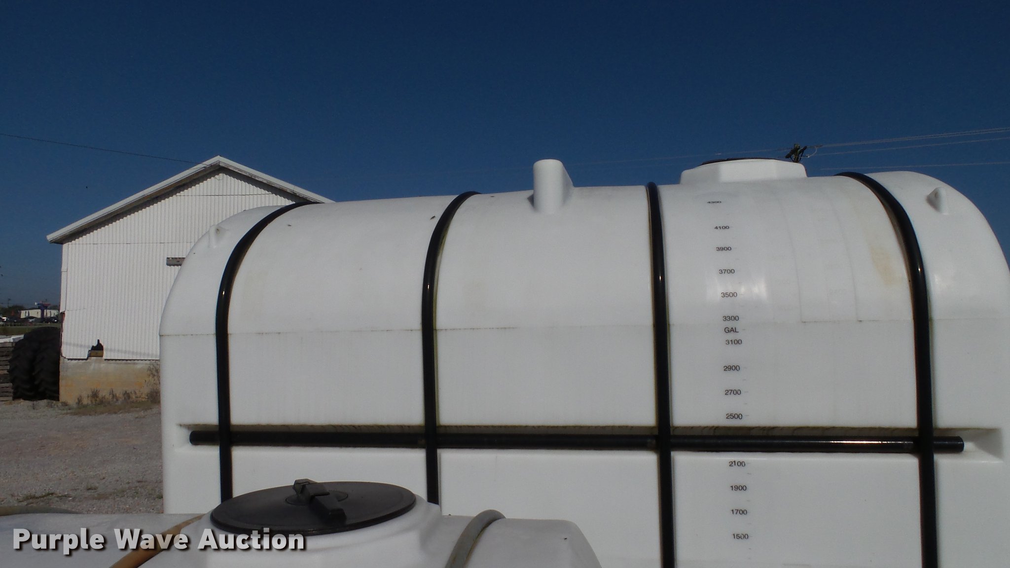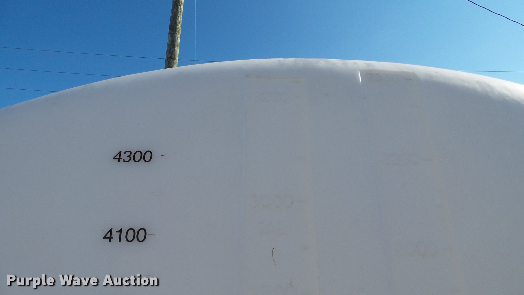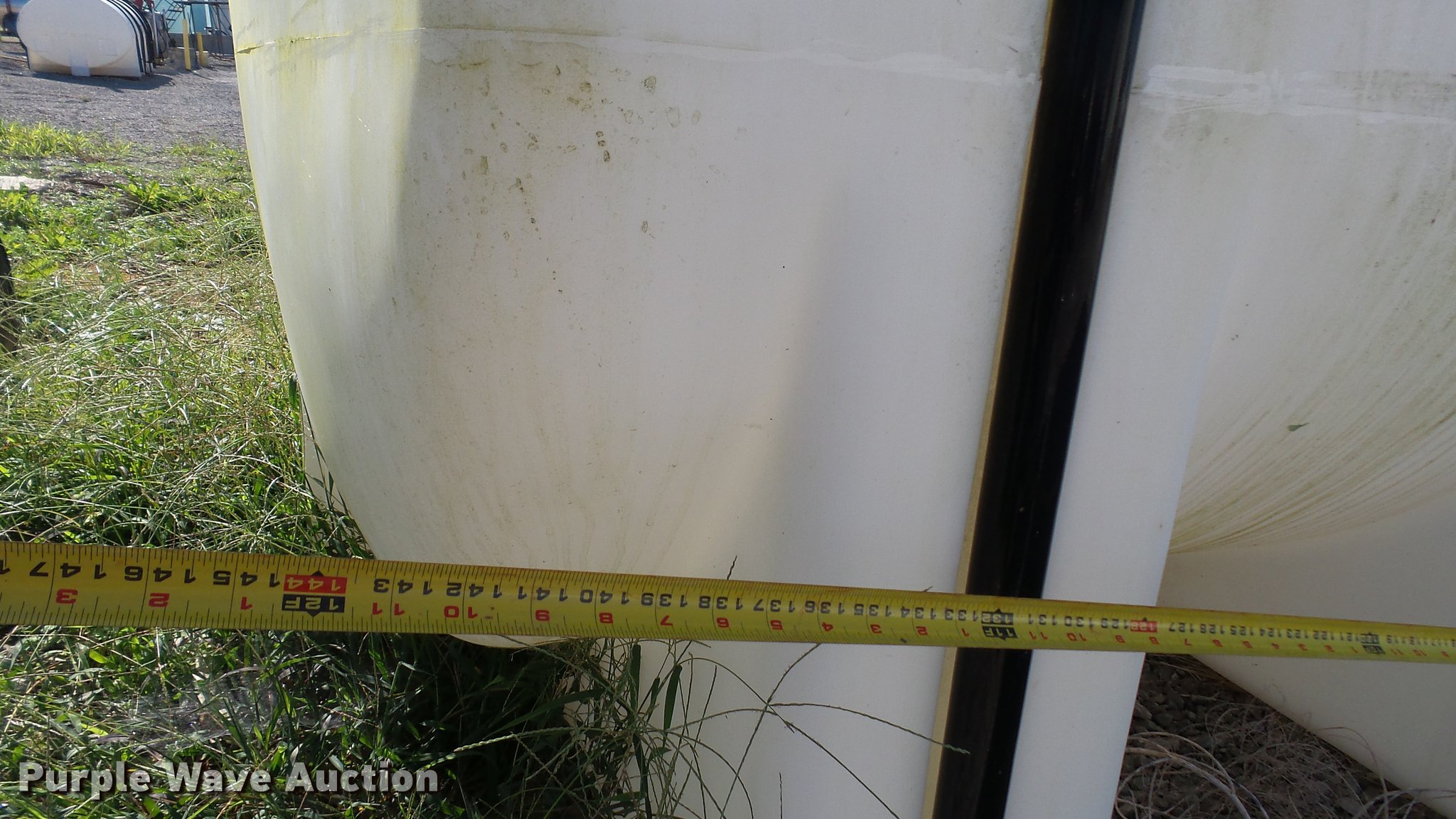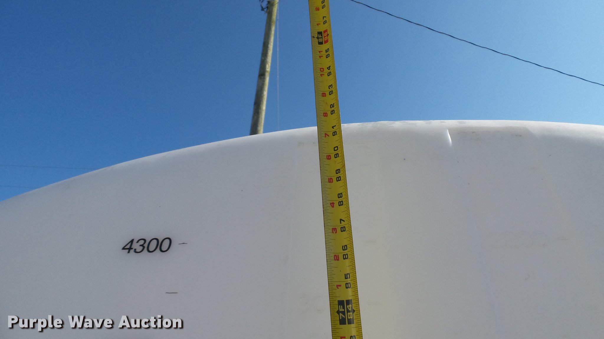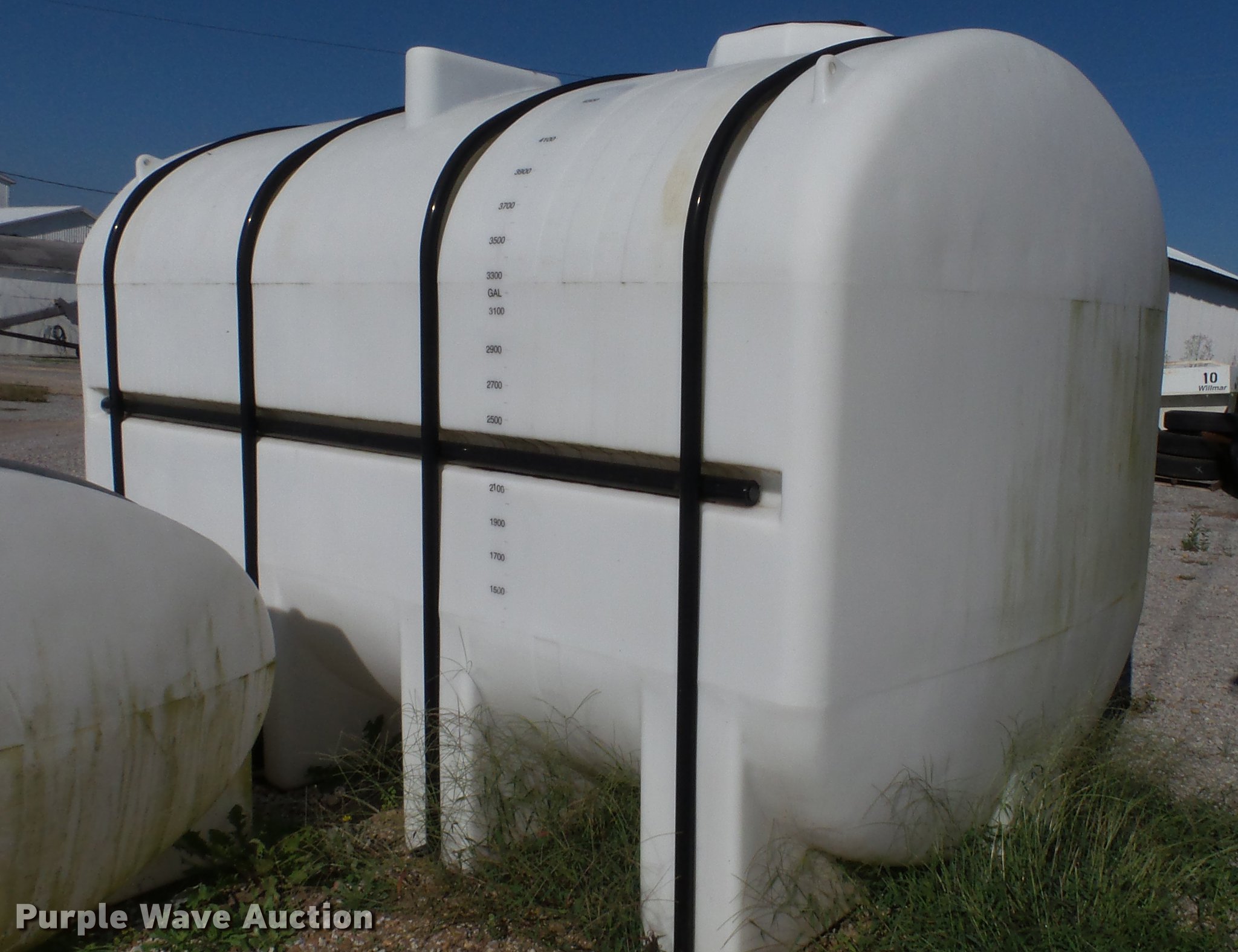 Purple Wave is selling a used Tanks in Kentucky. This item is a Ace Roto-Mold poly tank with the following: Approx. 12'L x 7.5'W x 8'H, 4,300 gallon capacity, 4" rear discharge, Top fill, Steel tank hoops, Unused