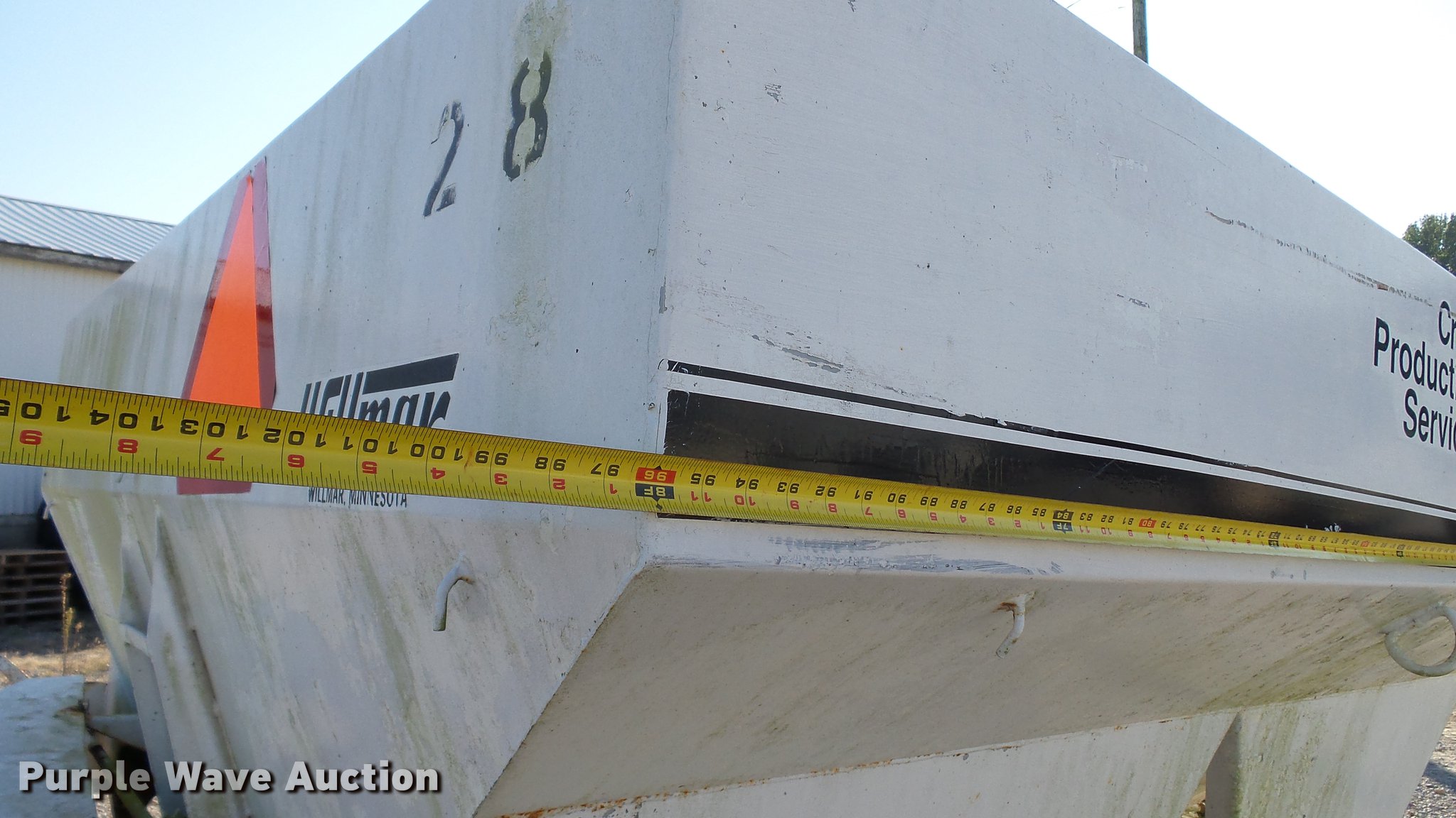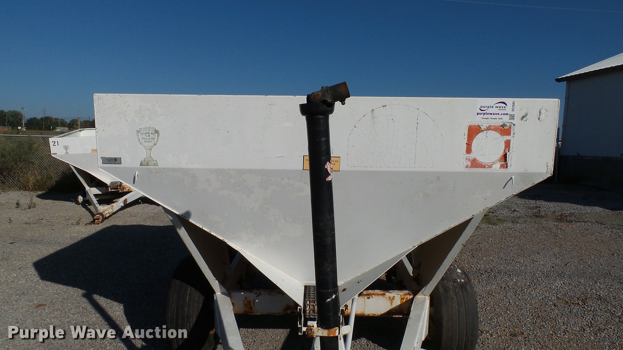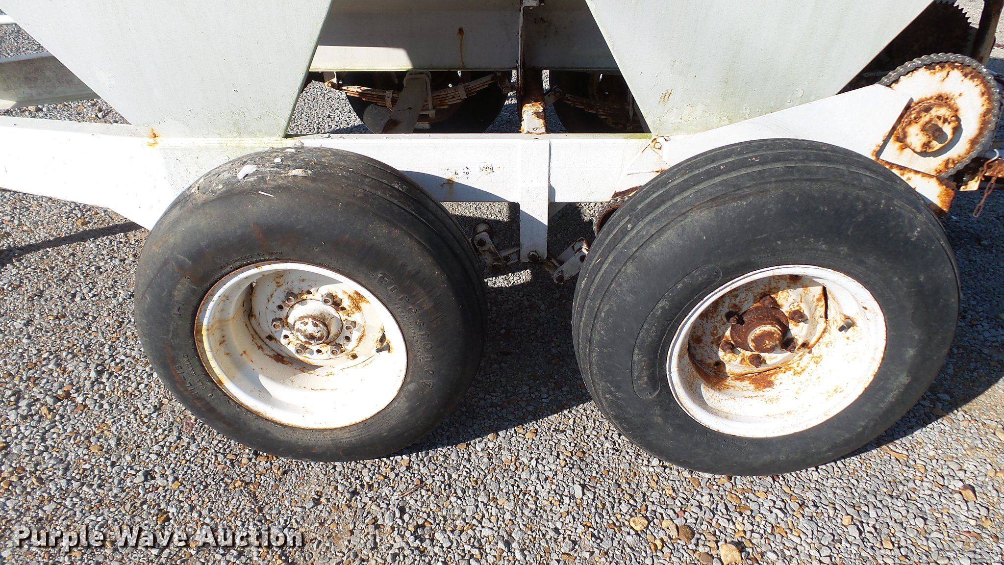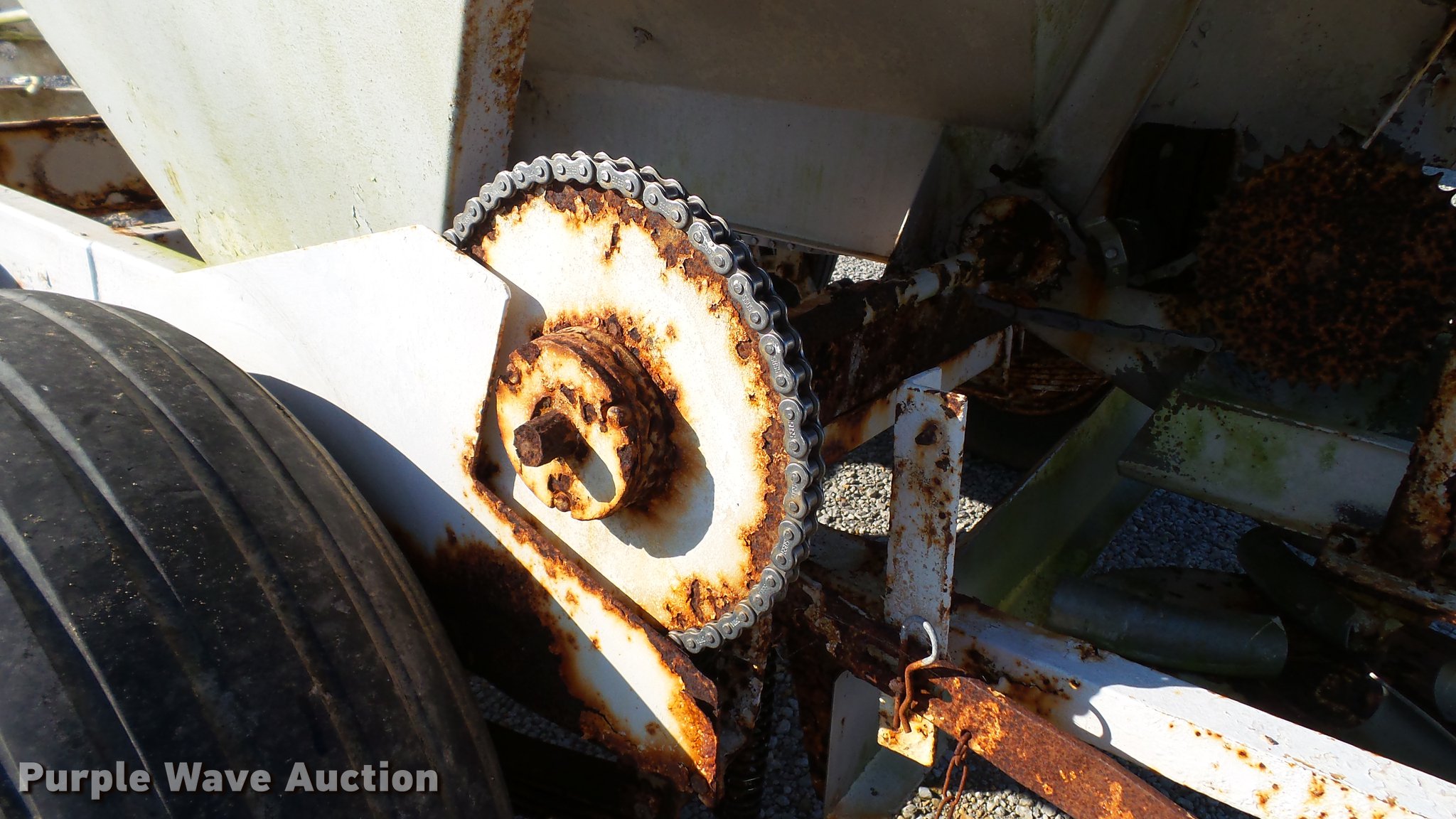 Purple Wave is selling a used Applicator Pull Type in Kentucky. This item is a Willmar spreader with the following: 15'L overall, 8'L x 92"W hopper, Ground driven live bottom, 7"W steel chain, Dual 19" spinners, PTO driven, 540 PTO, Pin hitch, Single leg landing gear, Spring suspension, Tandem axle, 11L-15 tires, Unit# 22920