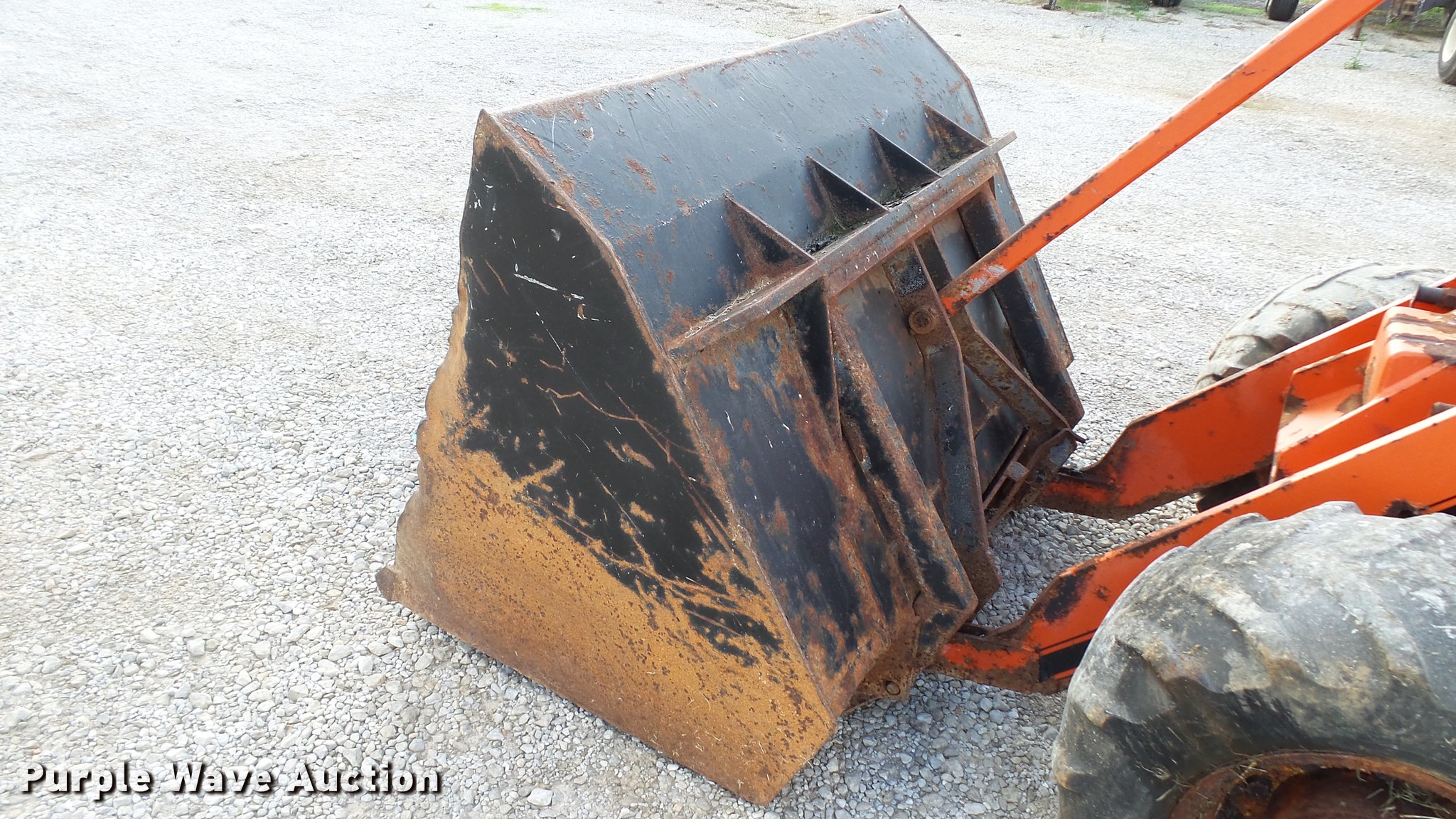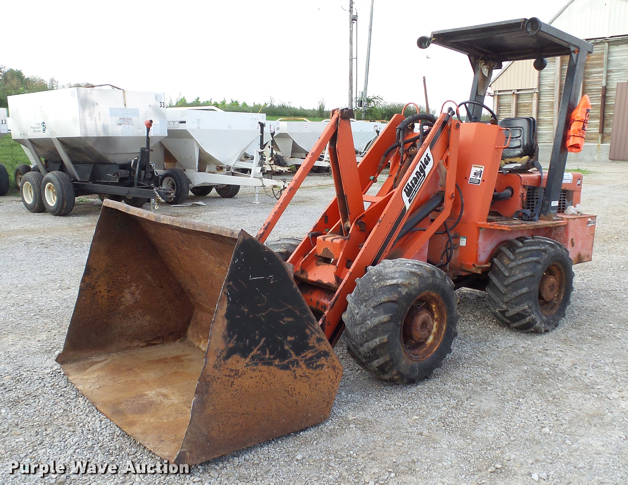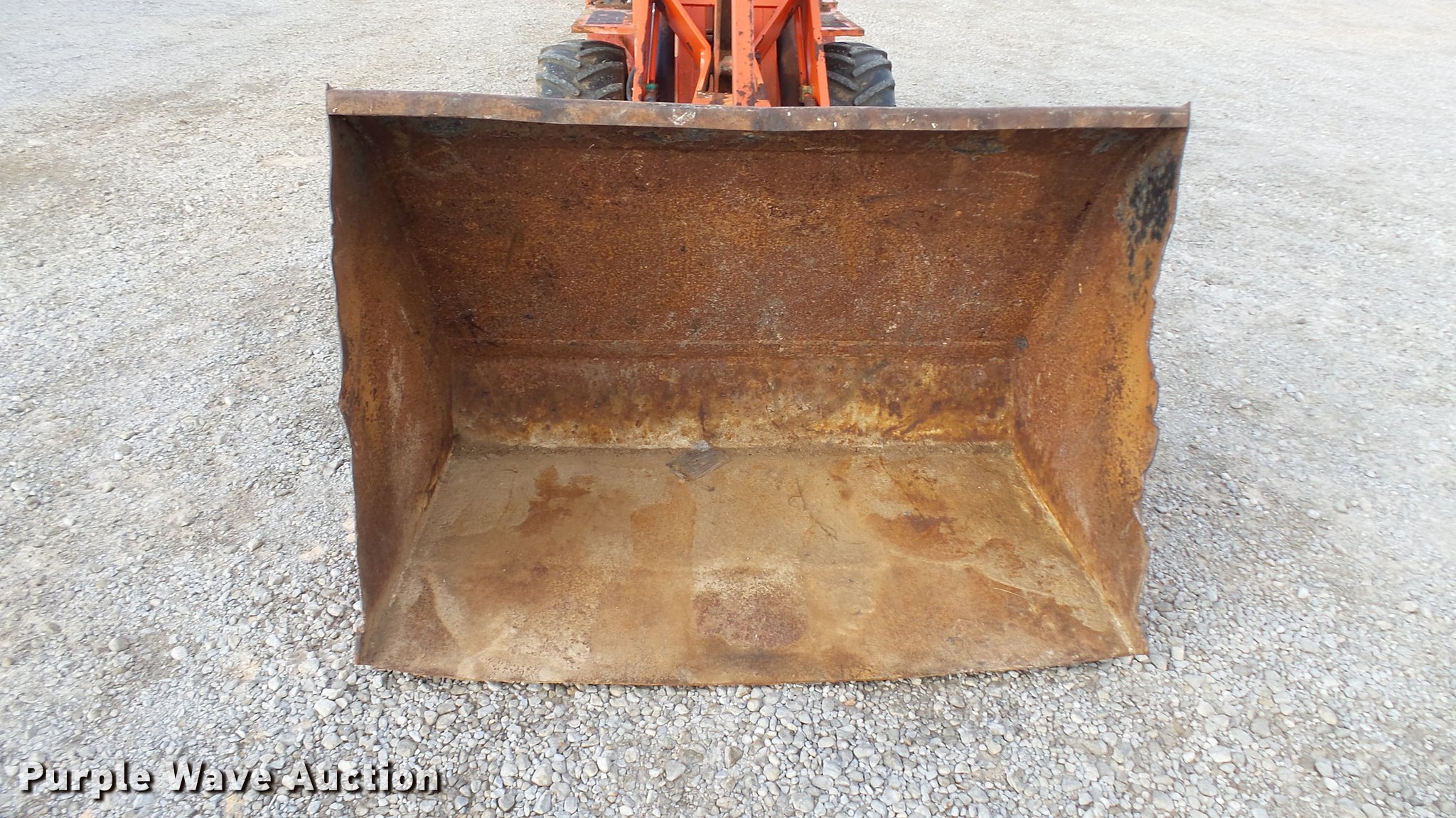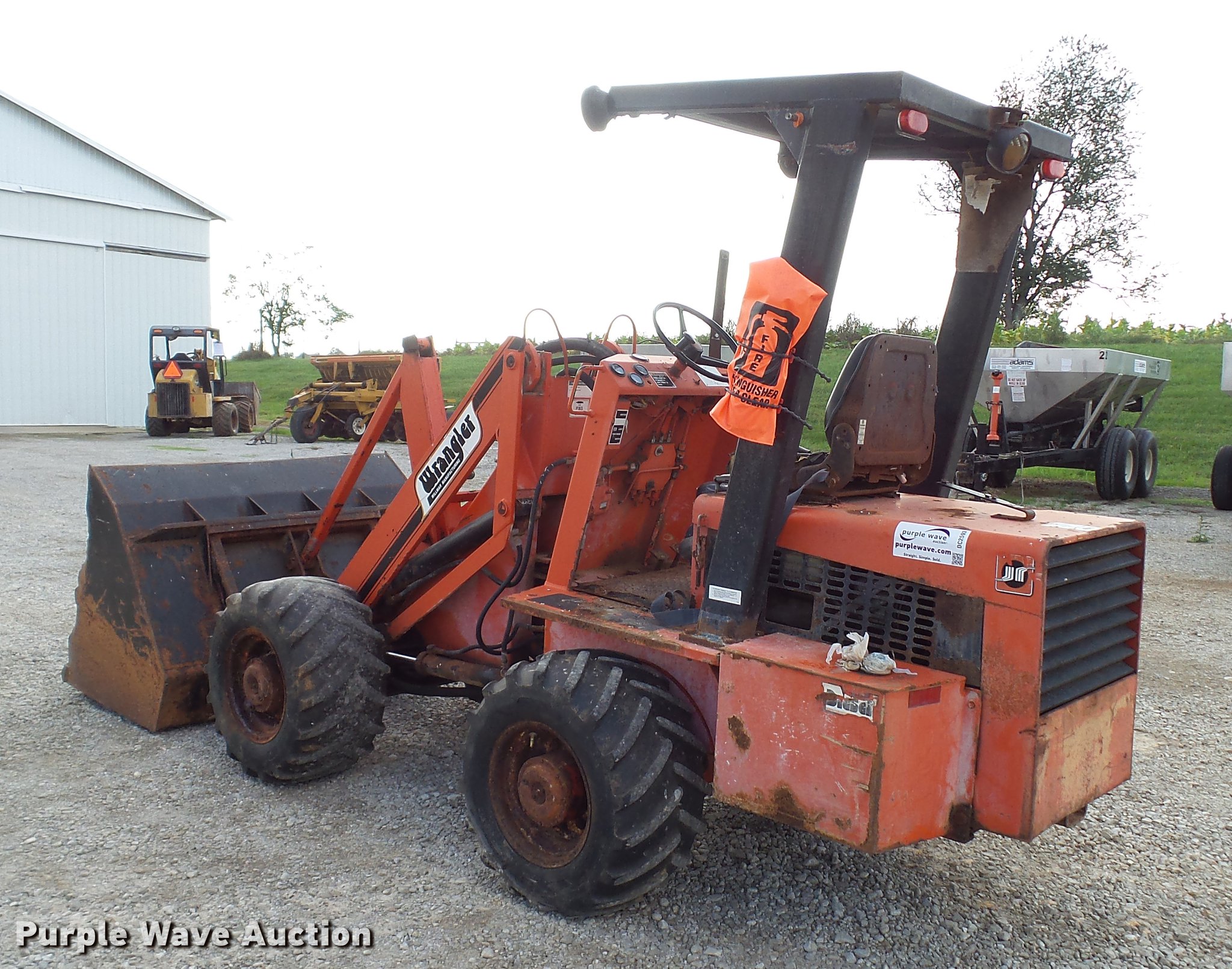 Purple Wave is selling a used Wheel Loader in Kentucky. This item is a Willmar Wrangler wheel loader with the following: 2,709 hours on meter, John Deere four cylinder diesel engine, Serial T04039D444086, Hydrostatic transmission, Four wheel drive, OROPS, Joystick bucket controls, Manual quick coupler, 60"W bucket, 2,150 lbs max lift capacity, Front auxiliary hydraulics, 31x15.5-15 tires, Fuel cap missing, Serial 706199