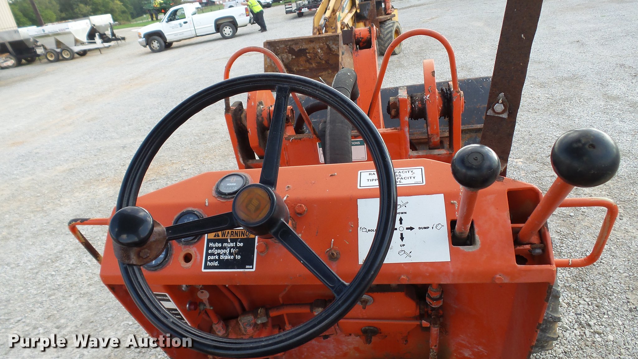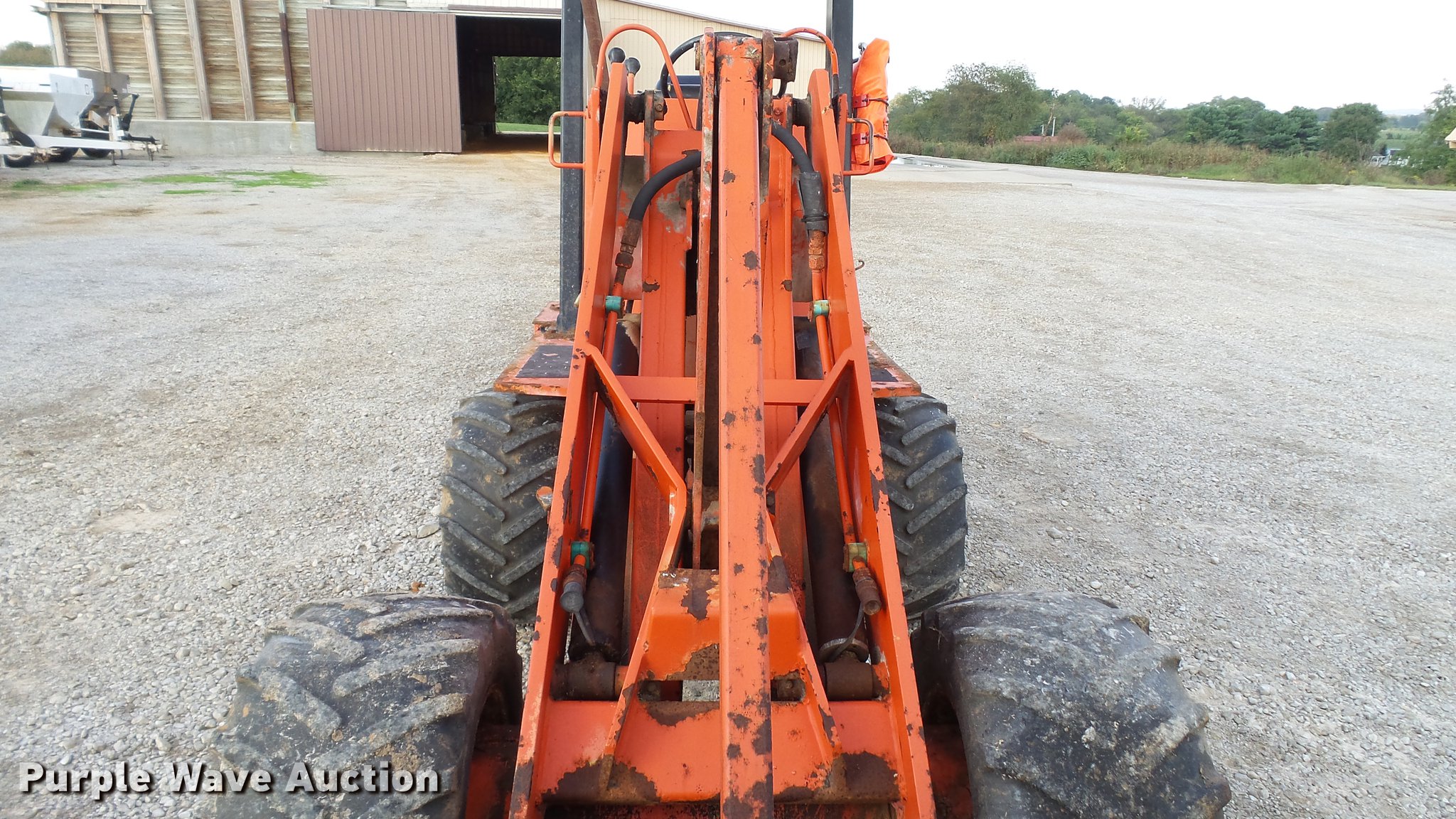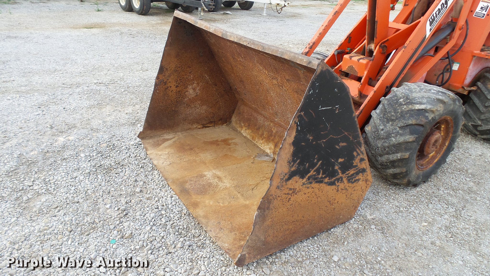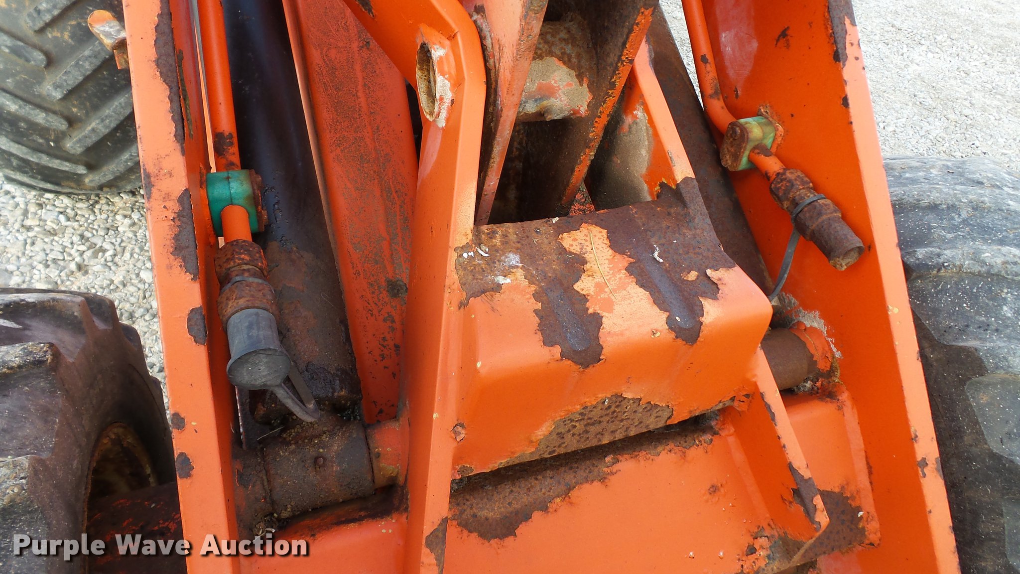 Purple Wave is selling a used Wheel Loader in Kentucky. This item is a Willmar Wrangler wheel loader with the following: 2,709 hours on meter, John Deere four cylinder diesel engine, Serial T04039D444086, Hydrostatic transmission, Four wheel drive, OROPS, Joystick bucket controls, Manual quick coupler, 60"W bucket, 2,150 lbs max lift capacity, Front auxiliary hydraulics, 31x15.5-15 tires, Fuel cap missing, Serial 706199
