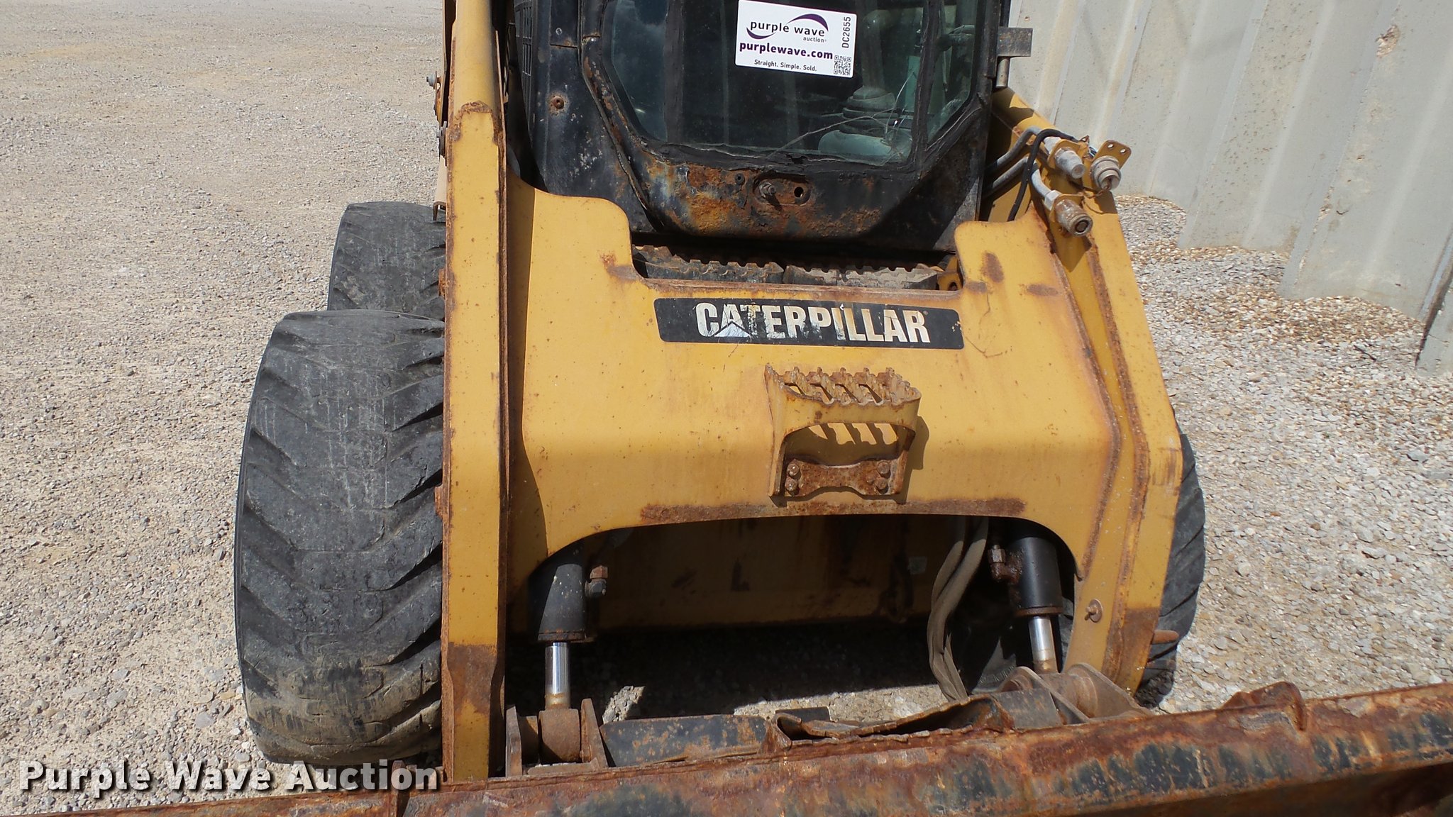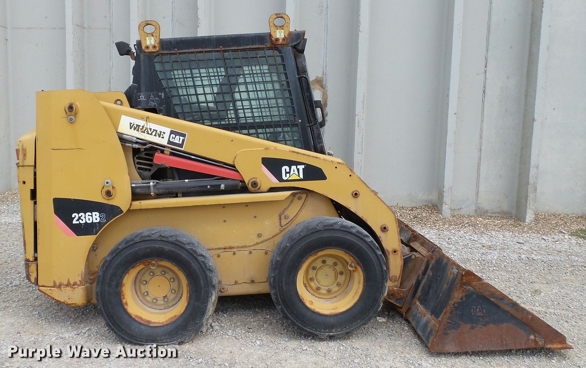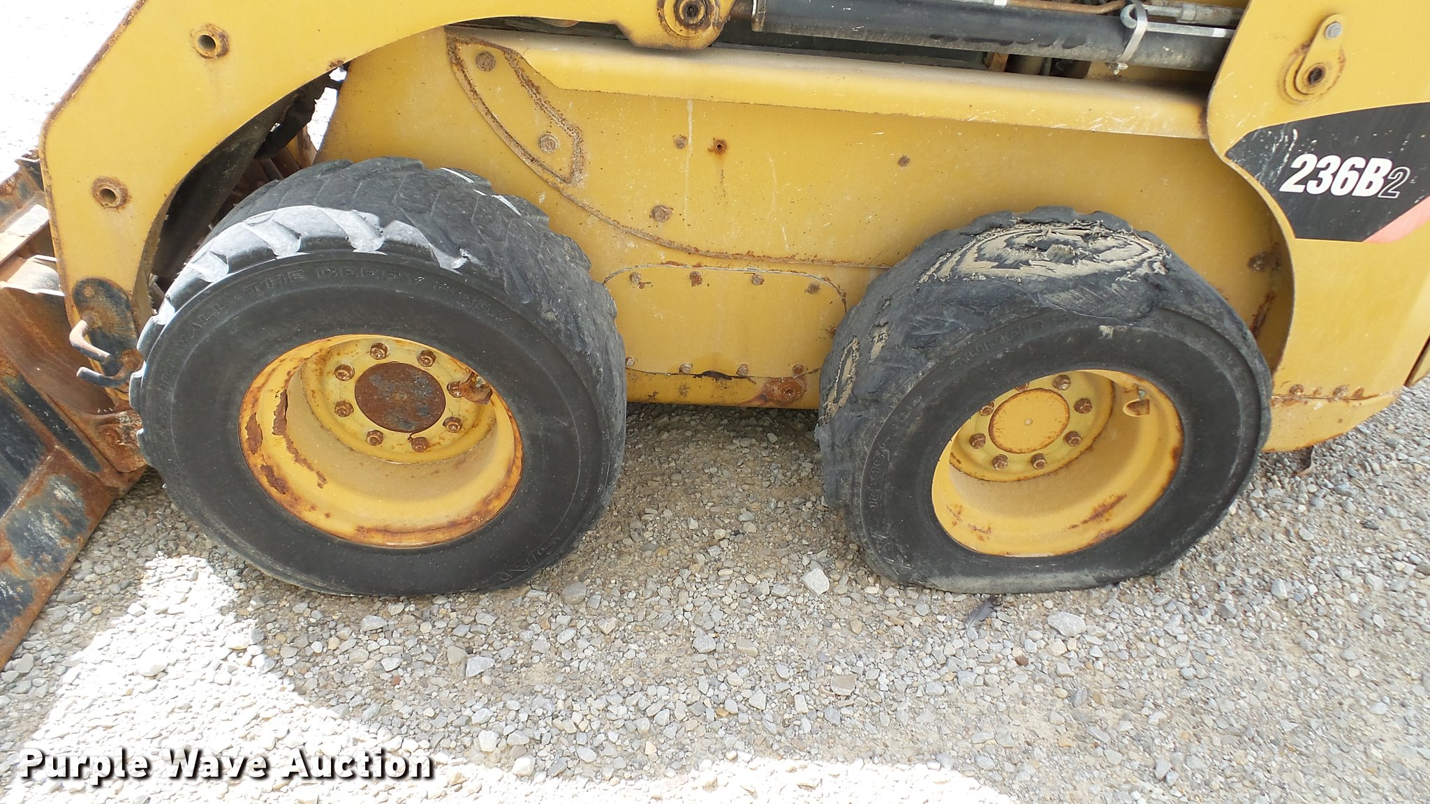 Purple Wave is selling a used Skid Steer Loader in Kentucky. This item is a 2008 Caterpillar 236B skid steer with the following: Four cylinder turbo diesel engine, Hydrostatic transmission, Enclosed cab, Heat, Joystick controls, Spring suspension seat, Wipers, Front and rear work lights, Caterpillar 292-8270 bucket, 86"W, Bolt-on cutting edge, Serial 6522h60000763, Hydraulic quick coupler, Auxiliary hydraulics, Auxiliary electrical outlet, Galaxy 12 x 16.5 tires, Non-operational unit, Injection pump needs replaced, Battery dead, Drive gears stripped, Windshield cracked, Serial CAT0236BKHEN08309, Unit# 15009
