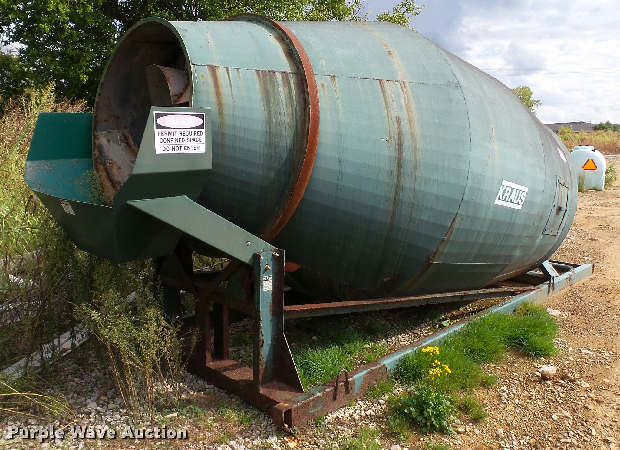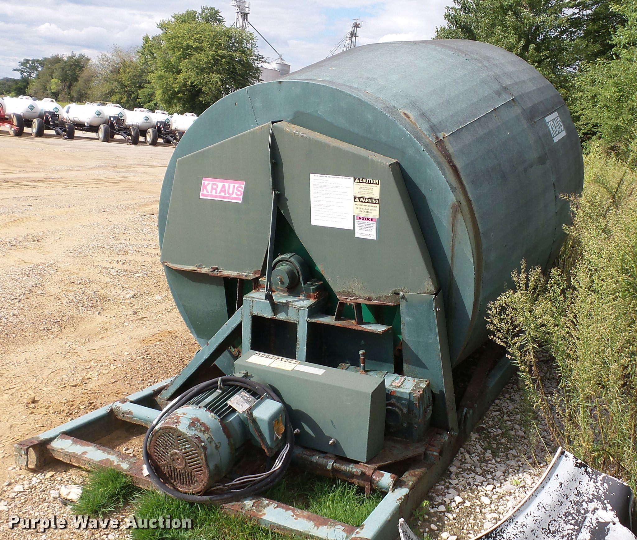 Purple Wave is selling a used Other Grain or Fertilizer Handling in Kentucky. This item is a Kraus rotary fertilizer blender/mixer with the following: 13'L x 88" steel drum, Toshiba 0204FTSA21A-P electric motor, 20 HP, 230V, Serial 555384993, 191"L x 66"W skid