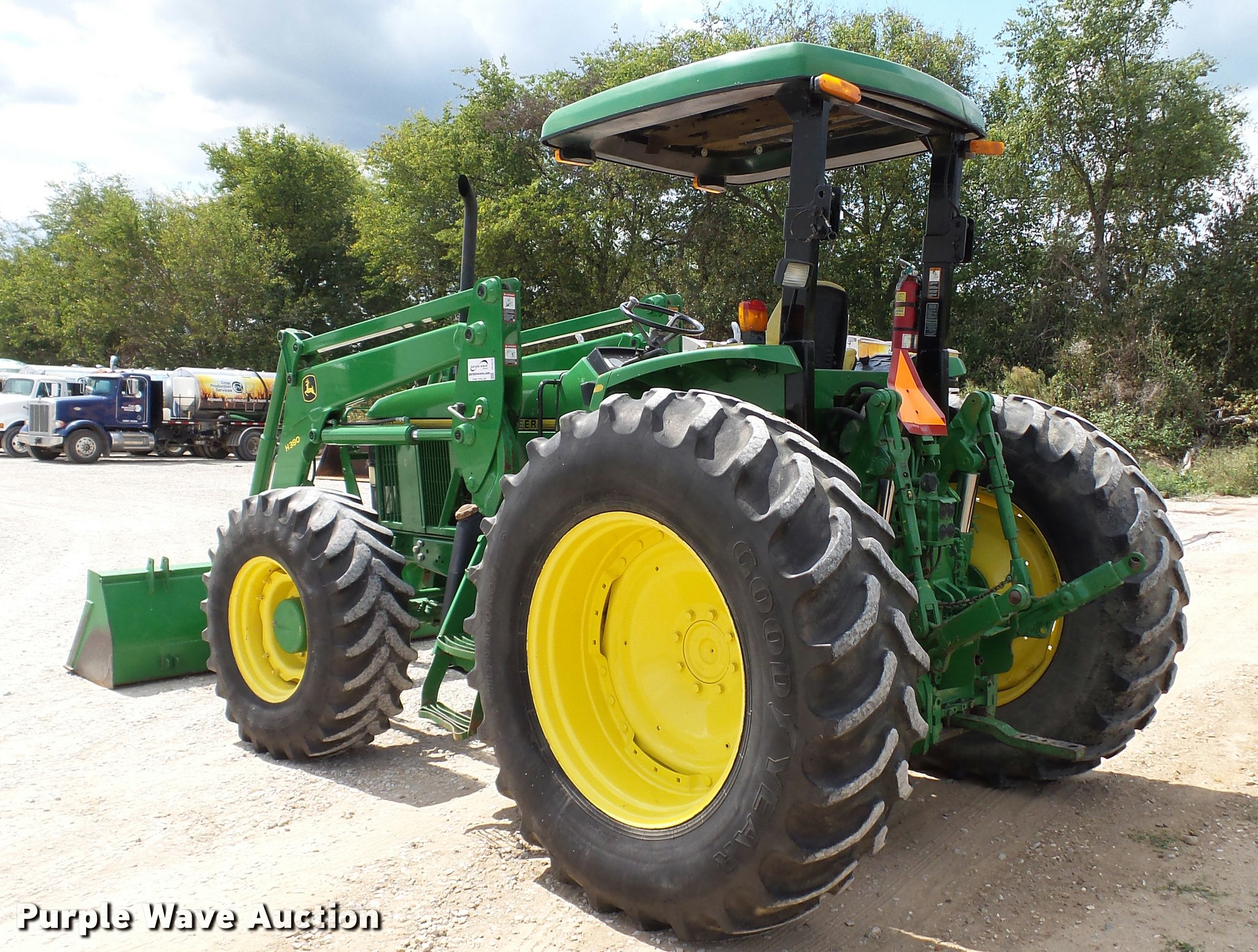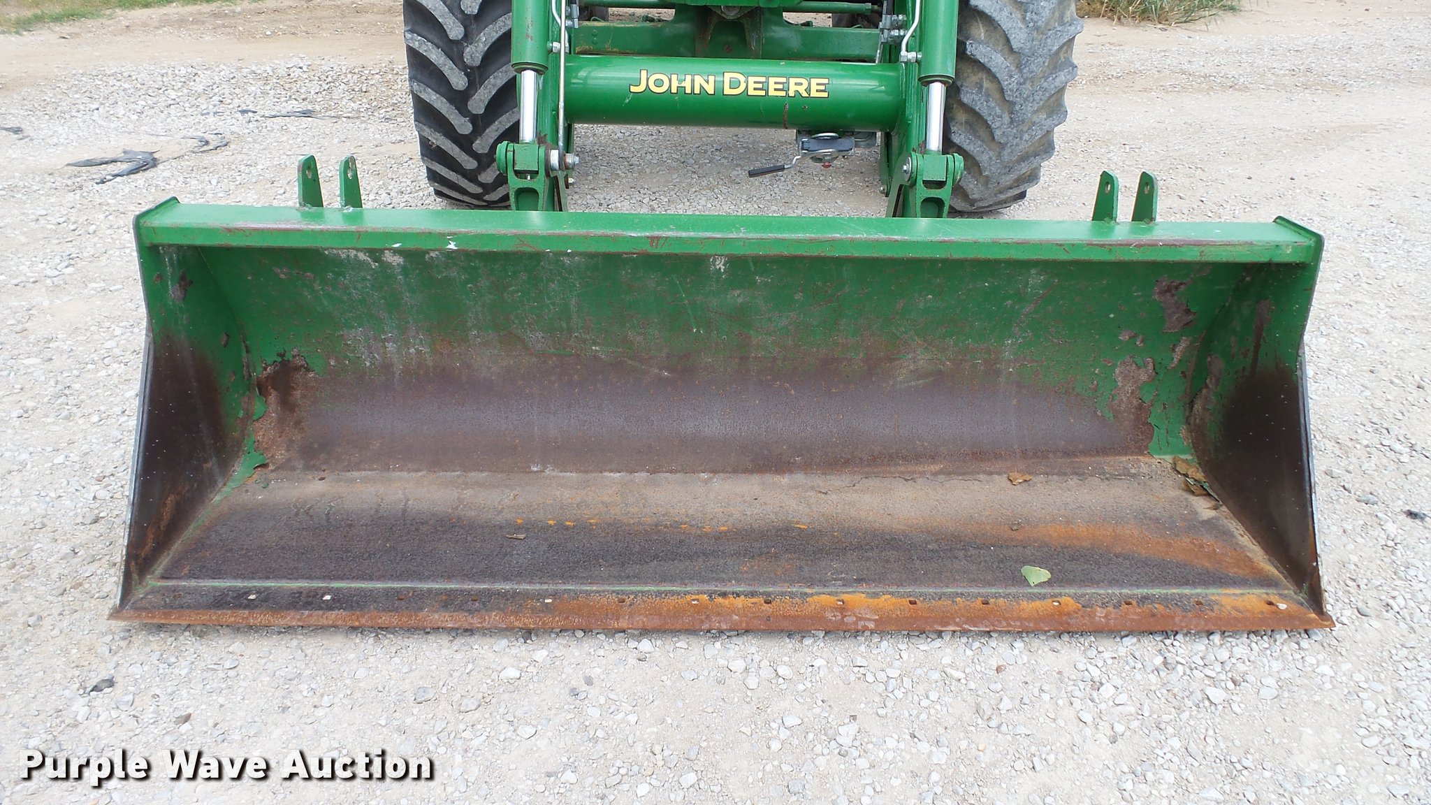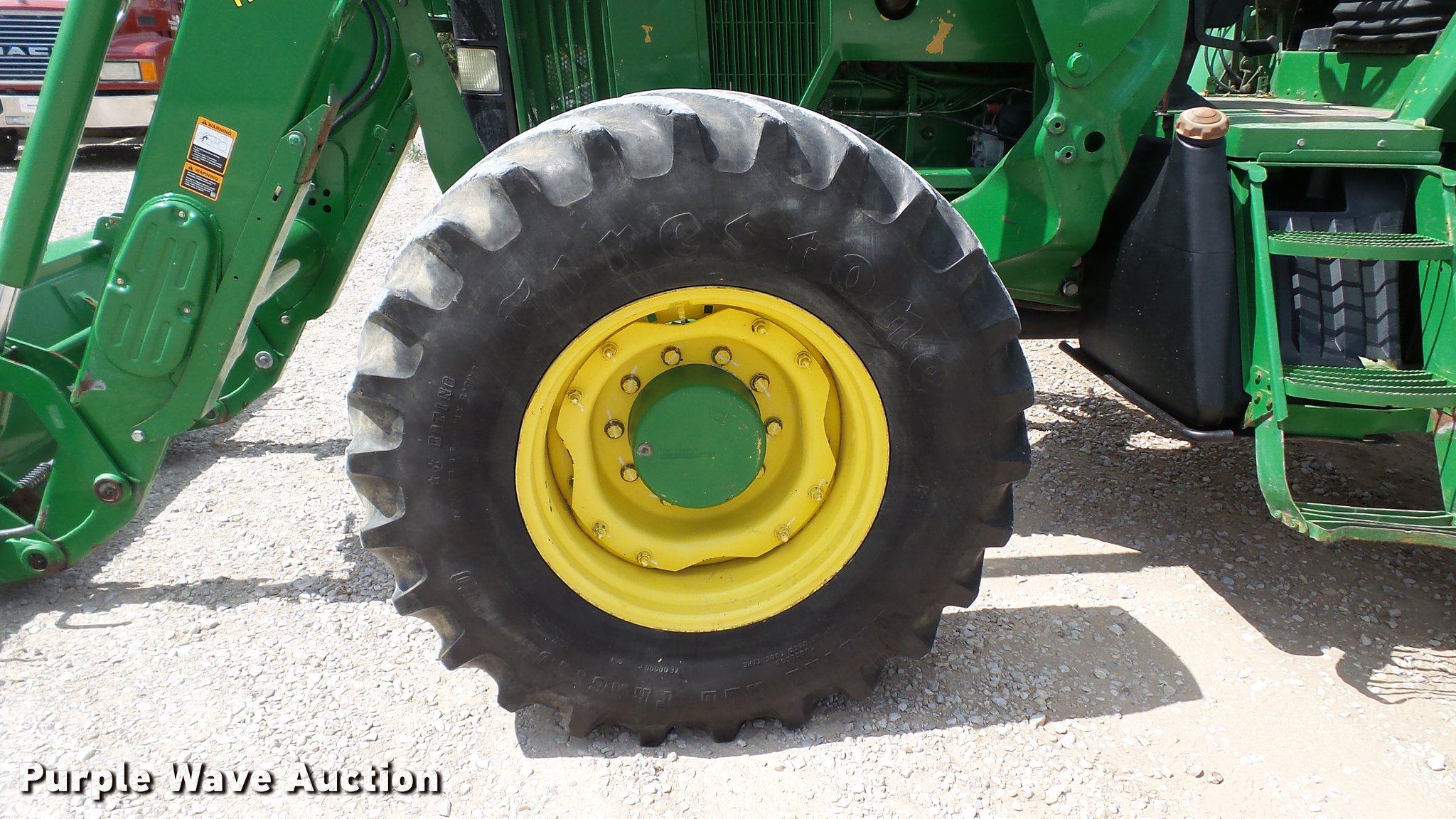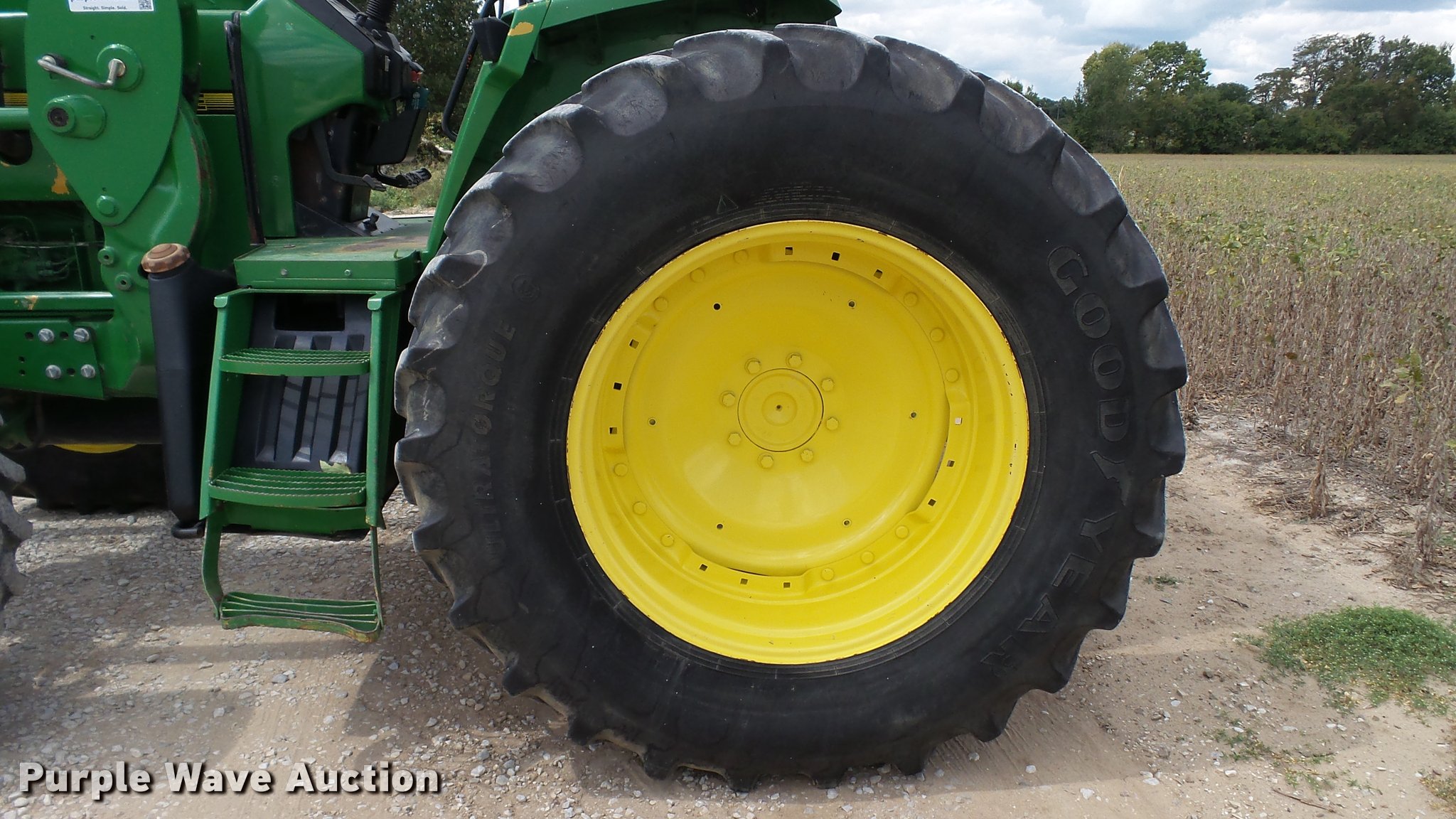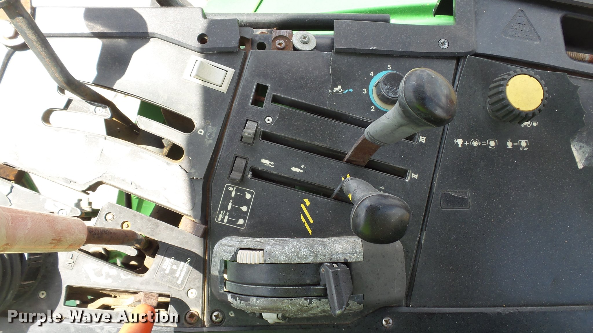 Purple Wave is selling a used Tractor in Indiana. This item is a 1995 John Deere 7200 MFWD tractor with the following: 5,574 hours on meter, John Deere six cylinder turbo diesel engine, Quad-Range transmission, 16F-16R gears, Tilt steering wheel, Suspension seat, Shade, John Deere H380 loader, 98"W bucket, Quick attach, Joystick controls, Serial 1P0H380XECC001985, Pallet forks, Three point, Seven pin outlet, 540 PTO, (2) rear hydraulic remotes, Firestone 16.9R26 front tires, Goodyear 520/85R38 rear tires, Serial RW7200H003341, Unit# 23067, 102294