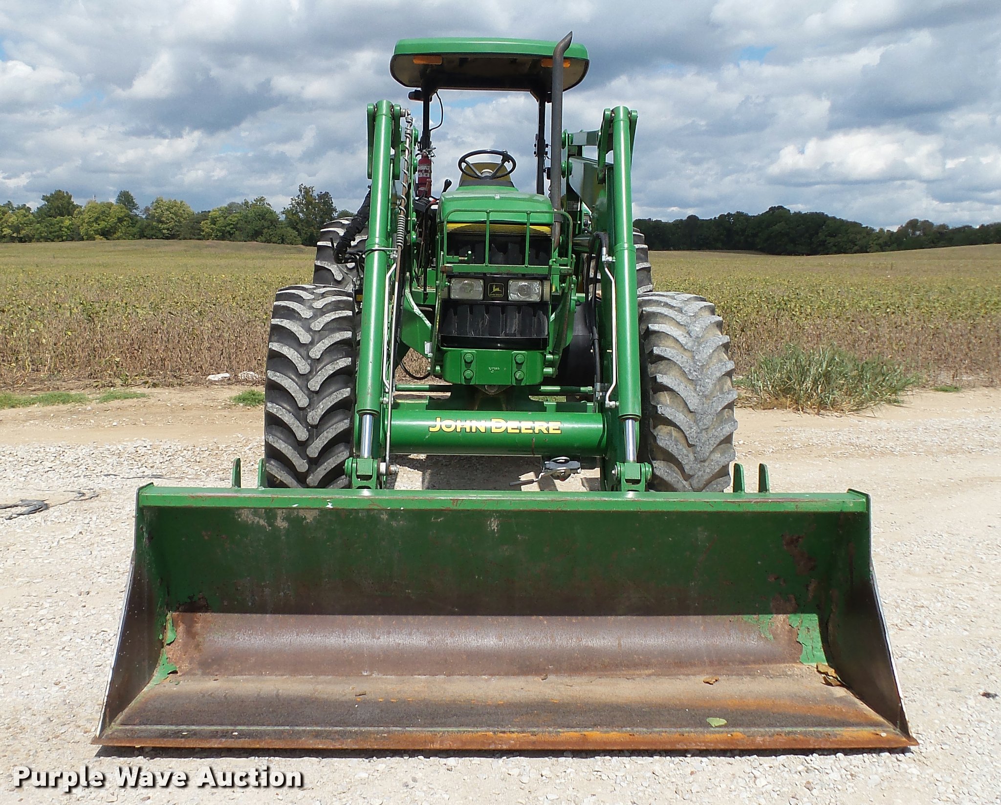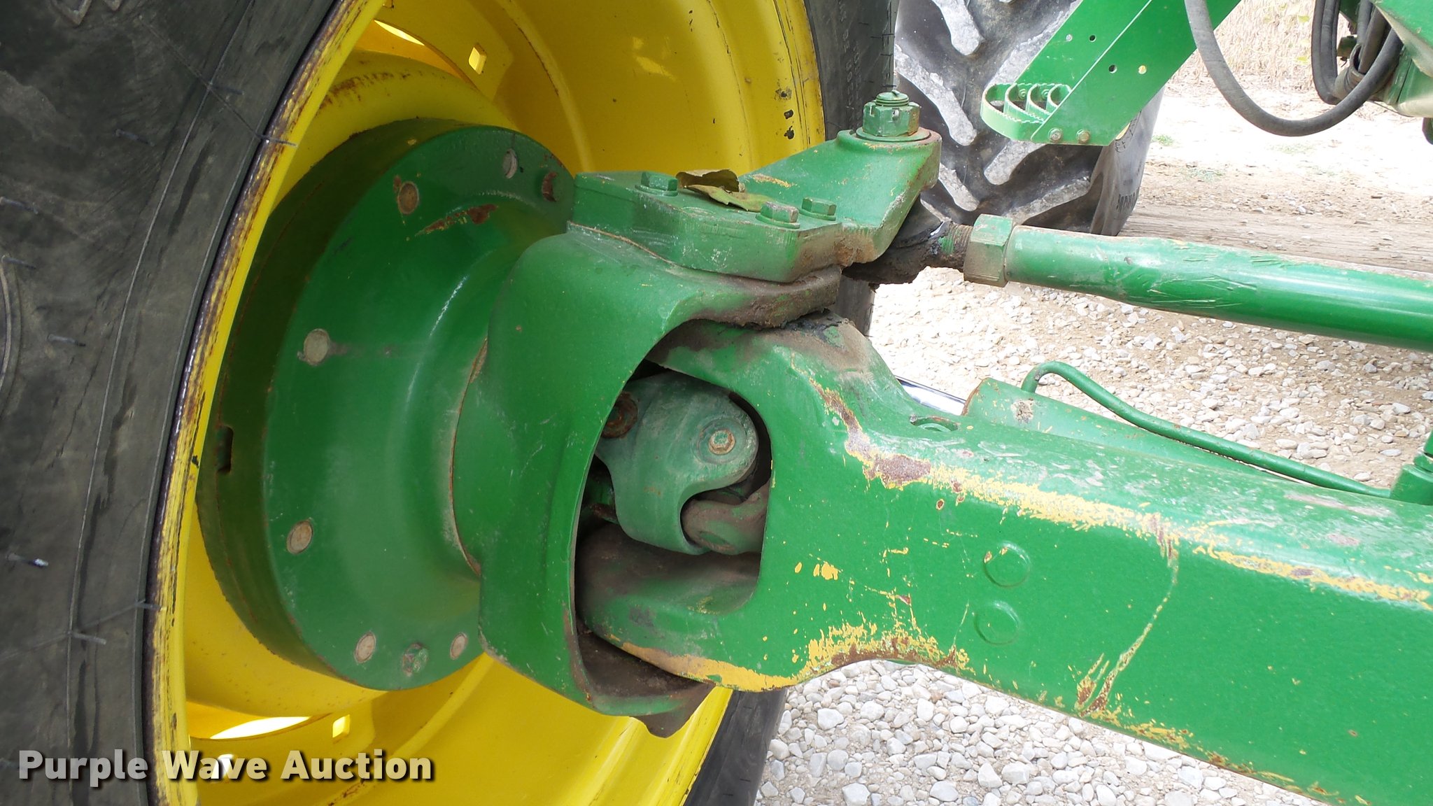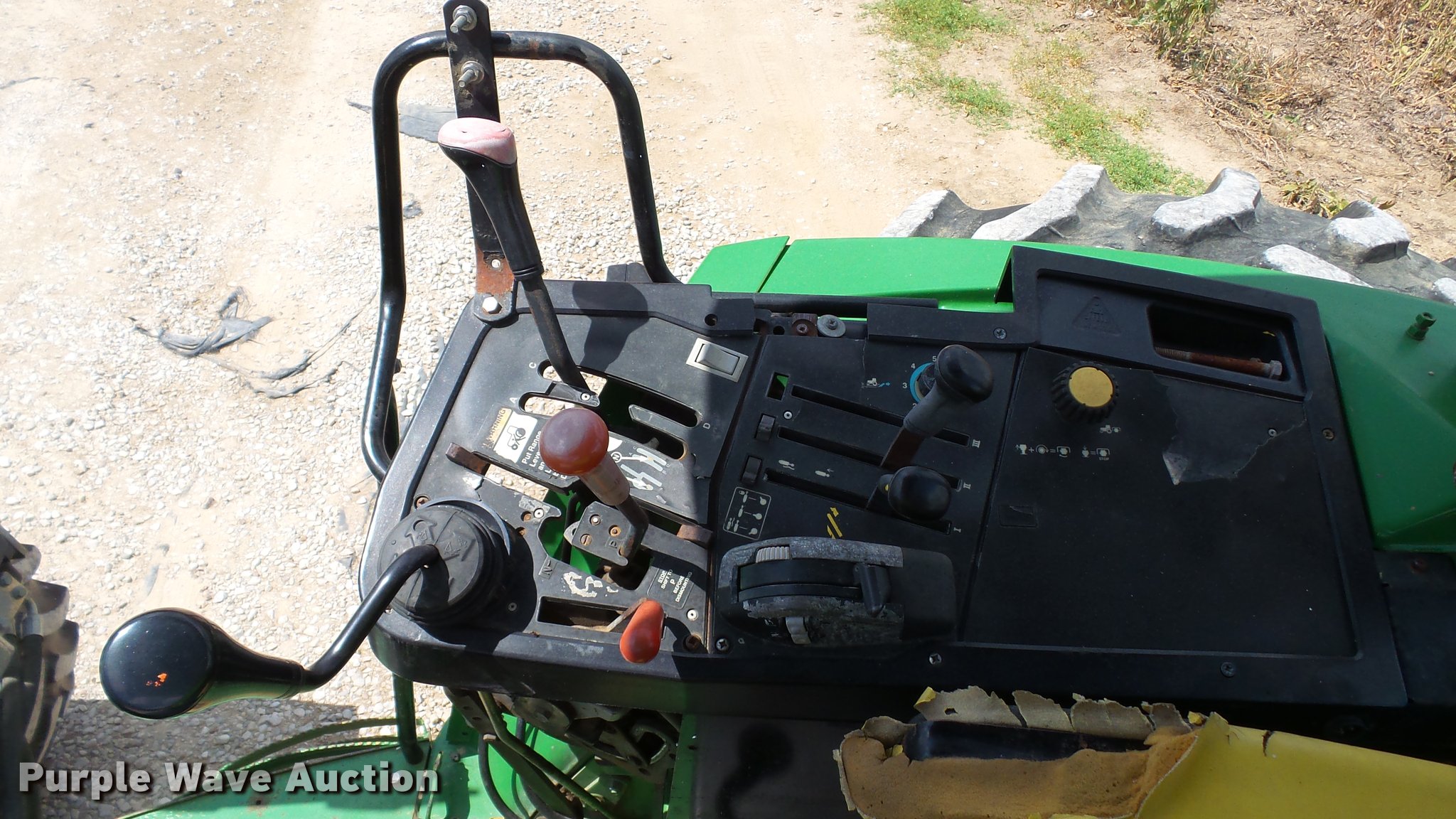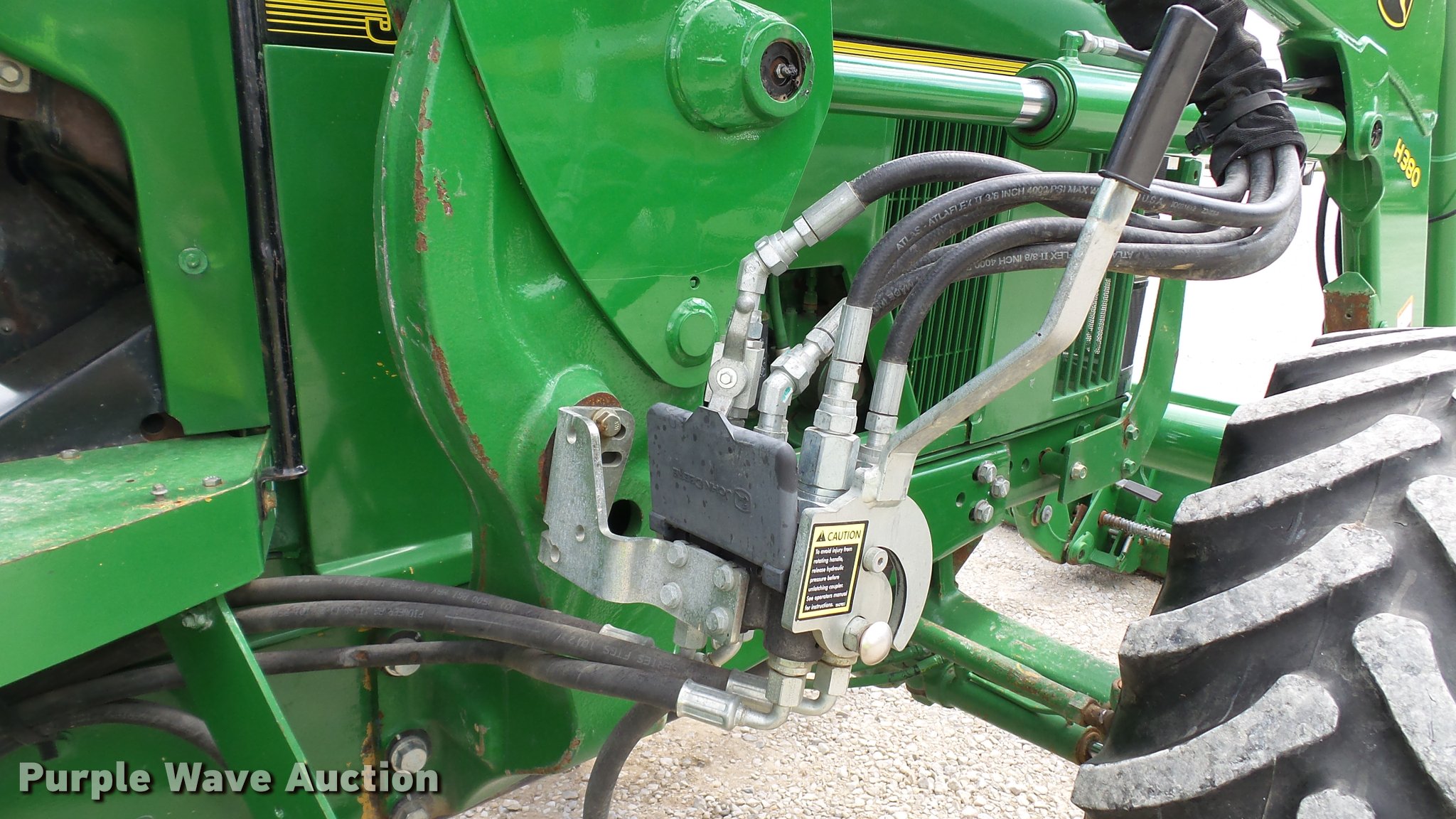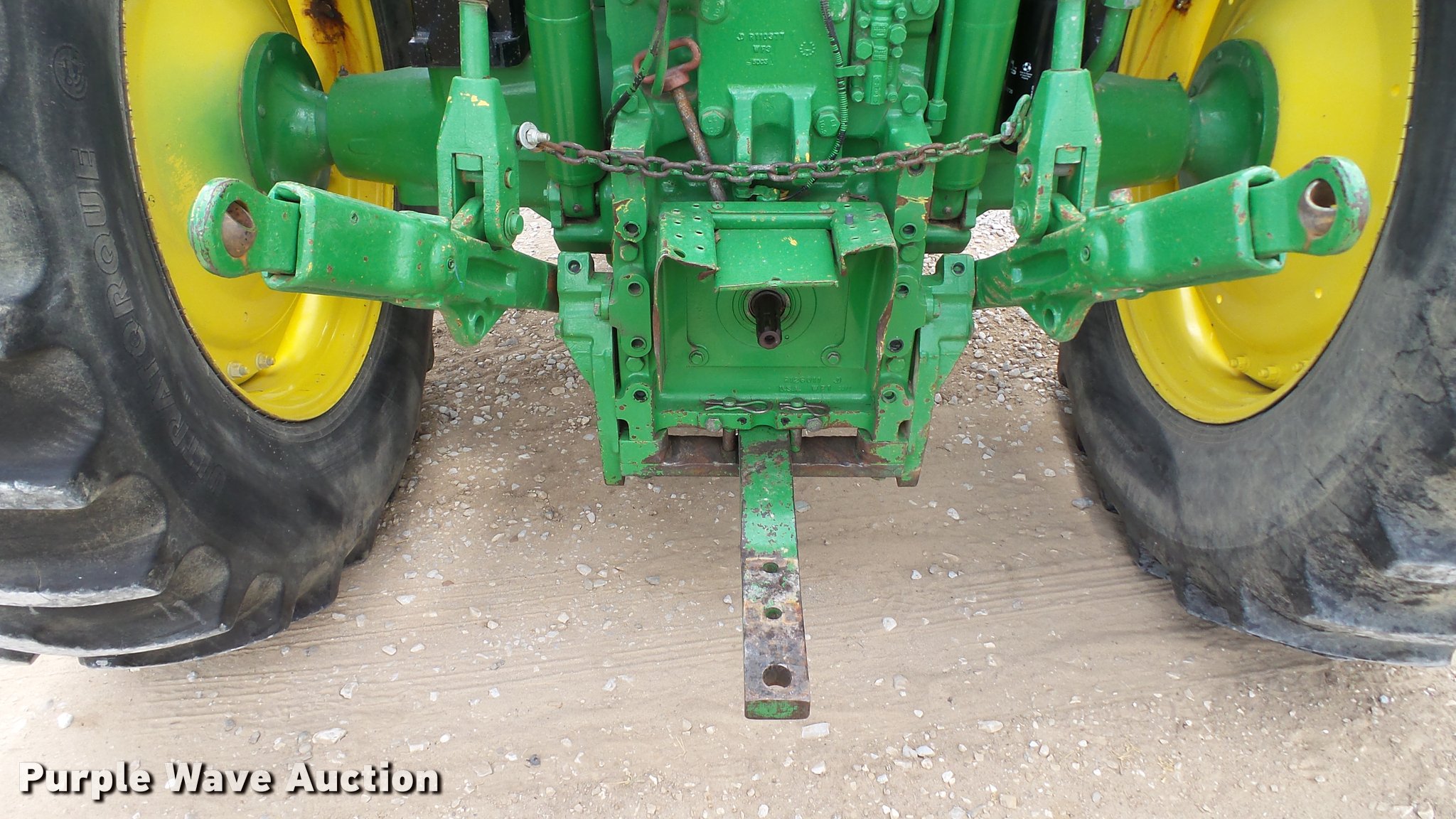 Purple Wave is selling a used Tractor in Indiana. This item is a 1995 John Deere 7200 MFWD tractor with the following: 5,574 hours on meter, John Deere six cylinder turbo diesel engine, Quad-Range transmission, 16F-16R gears, Tilt steering wheel, Suspension seat, Shade, John Deere H380 loader, 98"W bucket, Quick attach, Joystick controls, Serial 1P0H380XECC001985, Pallet forks, Three point, Seven pin outlet, 540 PTO, (2) rear hydraulic remotes, Firestone 16.9R26 front tires, Goodyear 520/85R38 rear tires, Serial RW7200H003341, Unit# 23067, 102294