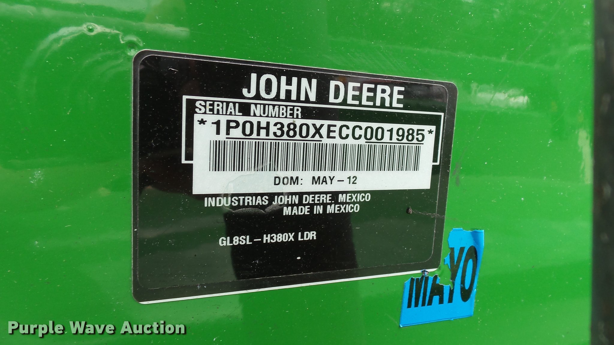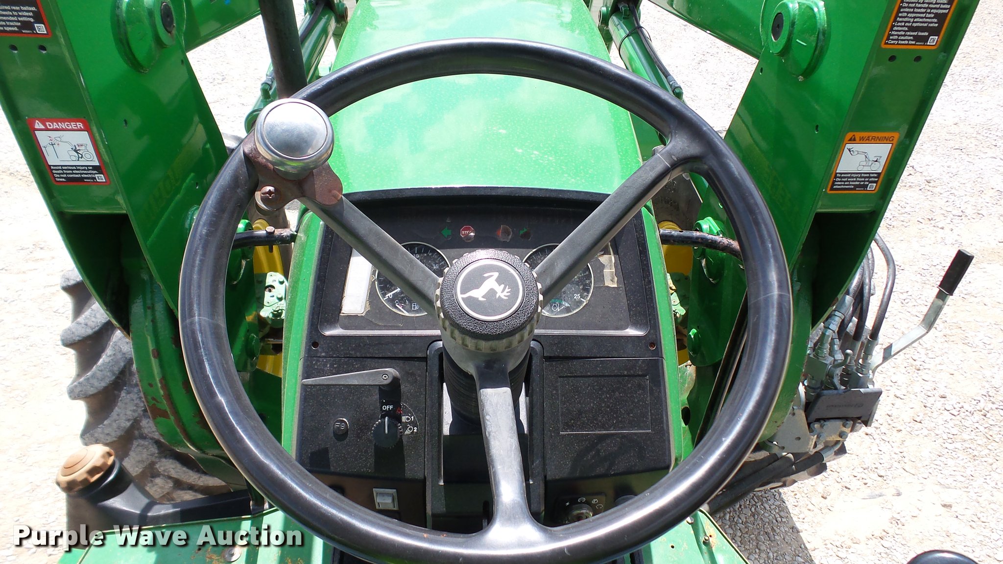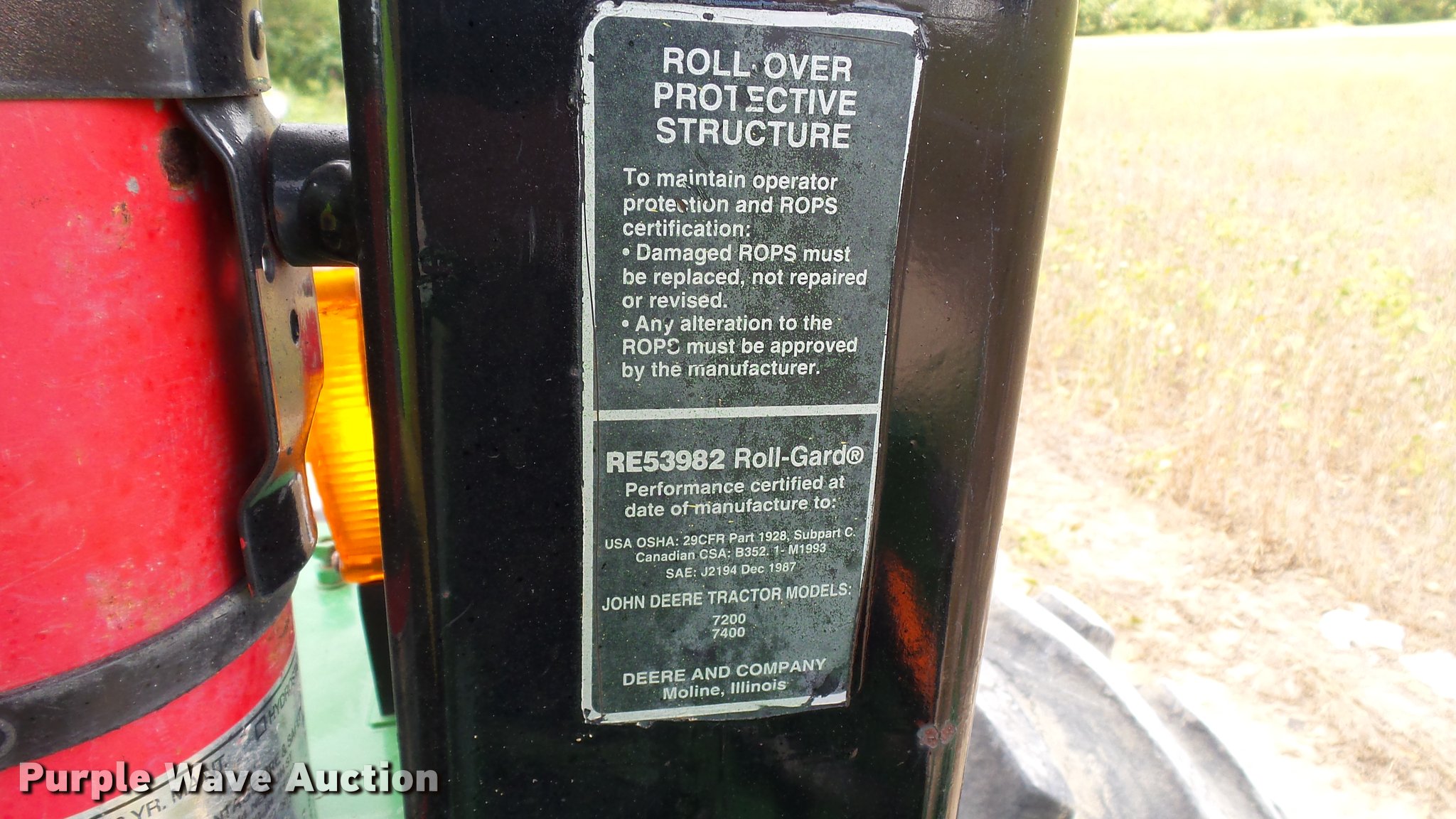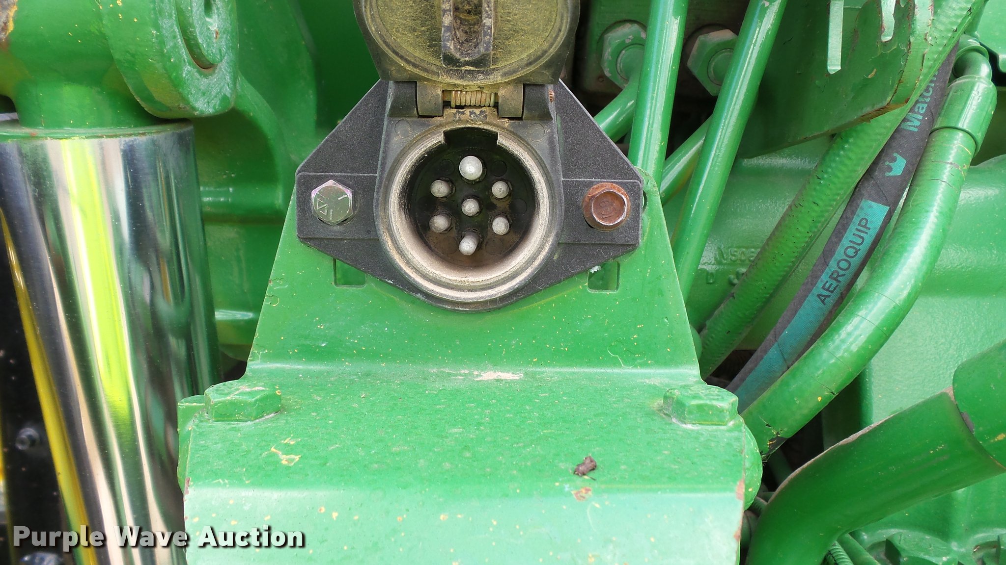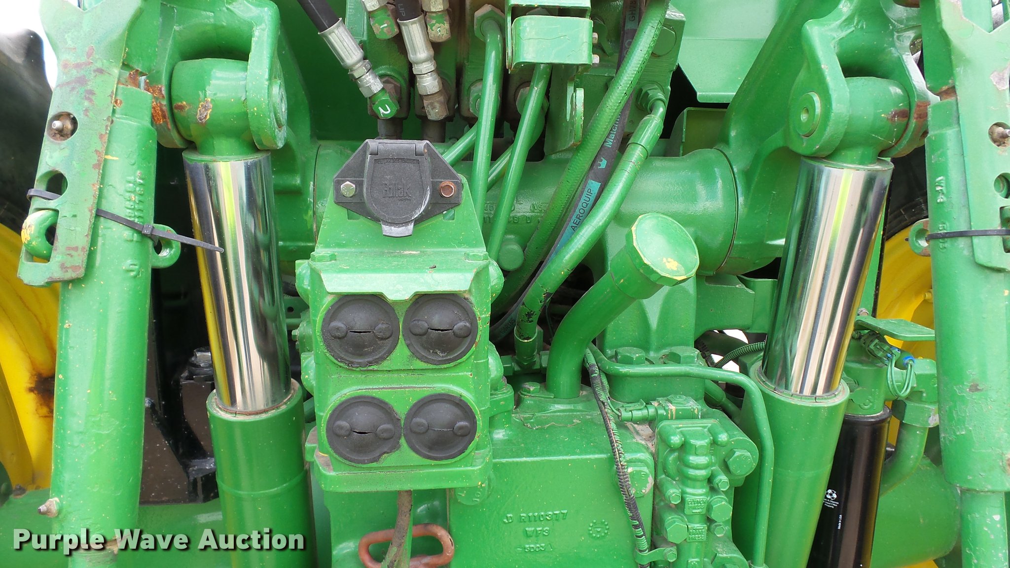 Purple Wave is selling a used Tractor in Indiana. This item is a 1995 John Deere 7200 MFWD tractor with the following: 5,574 hours on meter, John Deere six cylinder turbo diesel engine, Quad-Range transmission, 16F-16R gears, Tilt steering wheel, Suspension seat, Shade, John Deere H380 loader, 98"W bucket, Quick attach, Joystick controls, Serial 1P0H380XECC001985, Pallet forks, Three point, Seven pin outlet, 540 PTO, (2) rear hydraulic remotes, Firestone 16.9R26 front tires, Goodyear 520/85R38 rear tires, Serial RW7200H003341, Unit# 23067, 102294
