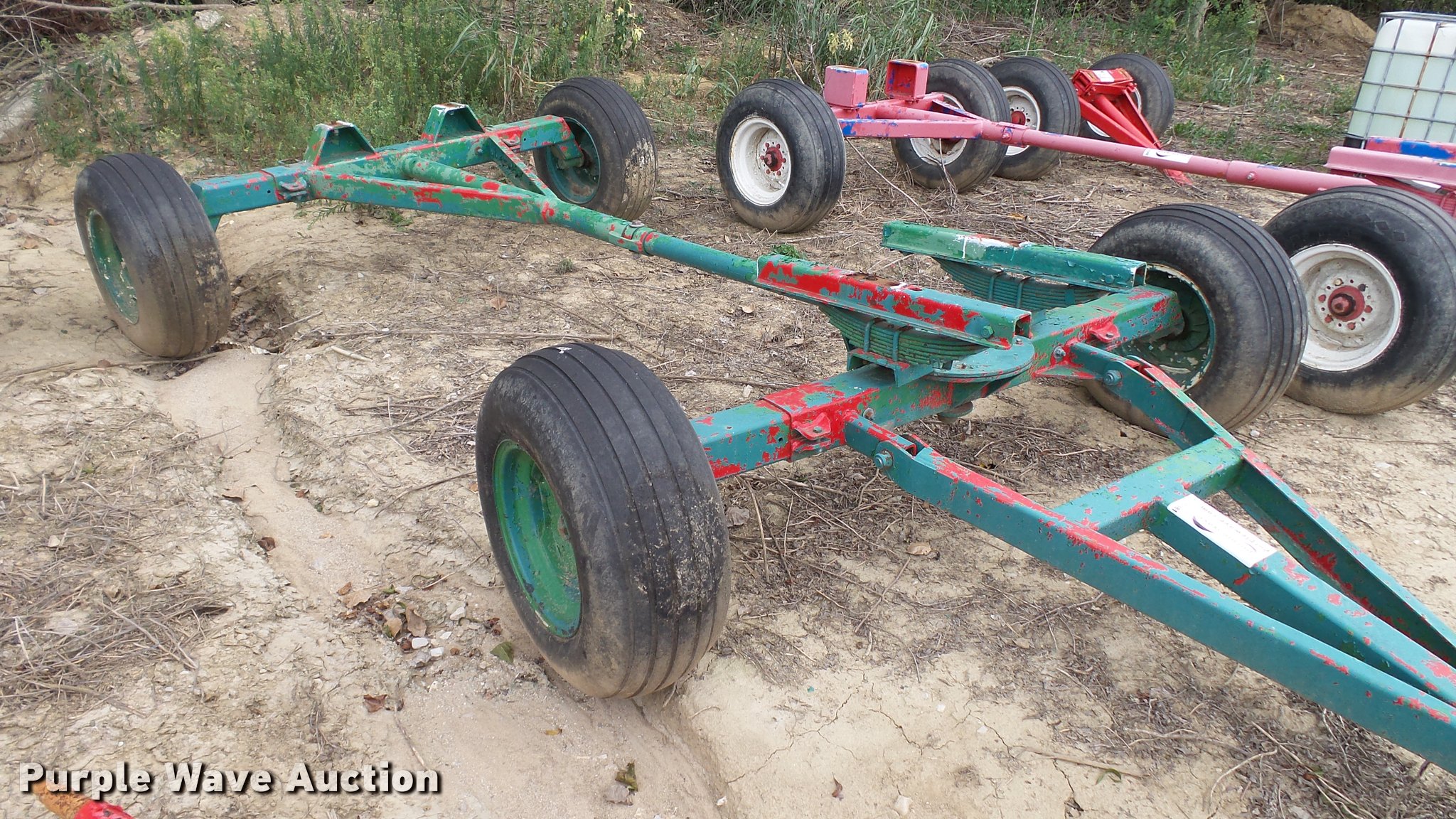 Purple Wave is selling a used Applicator Attach. in Indiana. This item is a 1999 anhydrous ammonia nurse tank running gear with the following: Adjustable length and width, Pin hitch, 11L-15 tires, GVWR 14,000 lbs, Serial 9902150095WG1450A