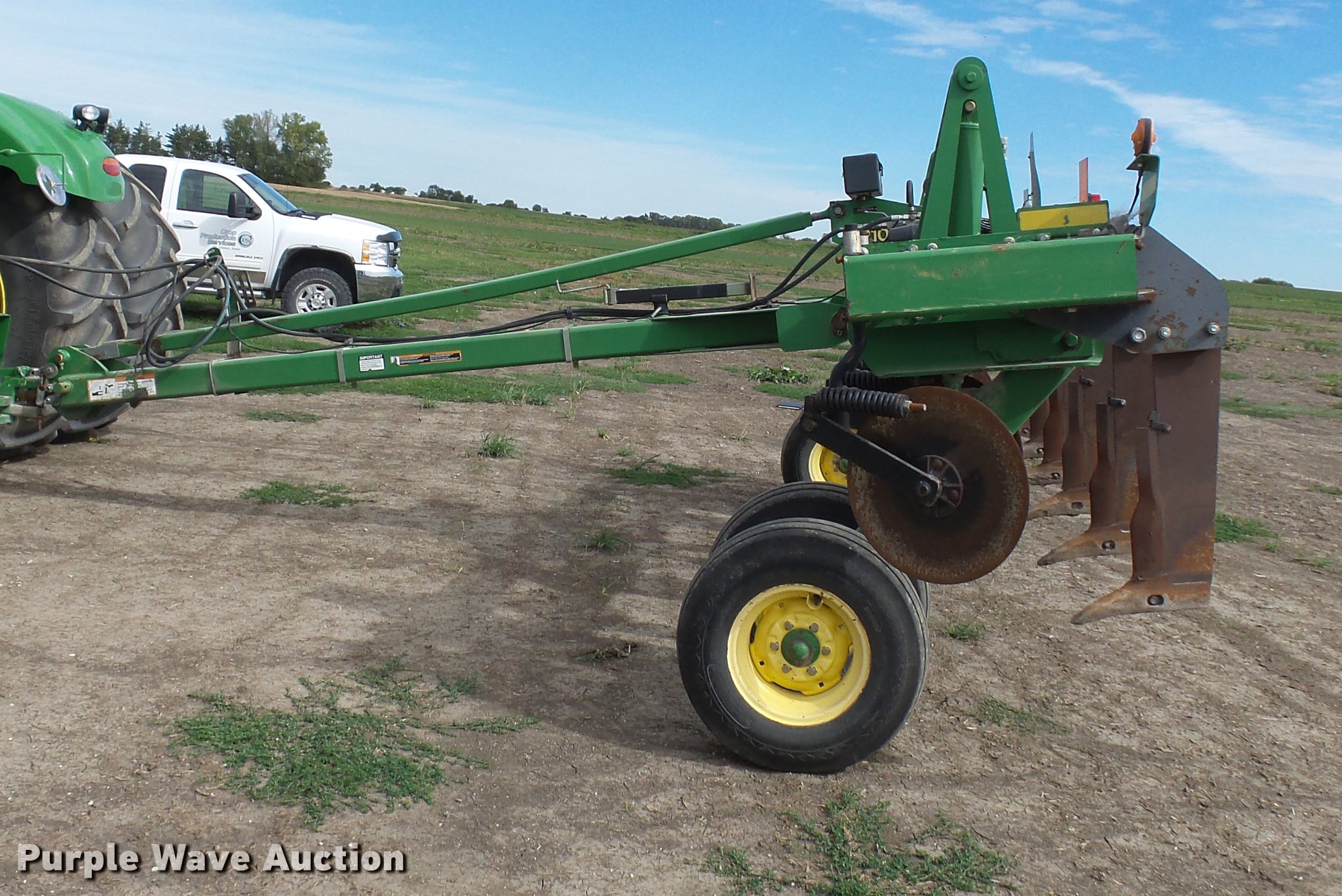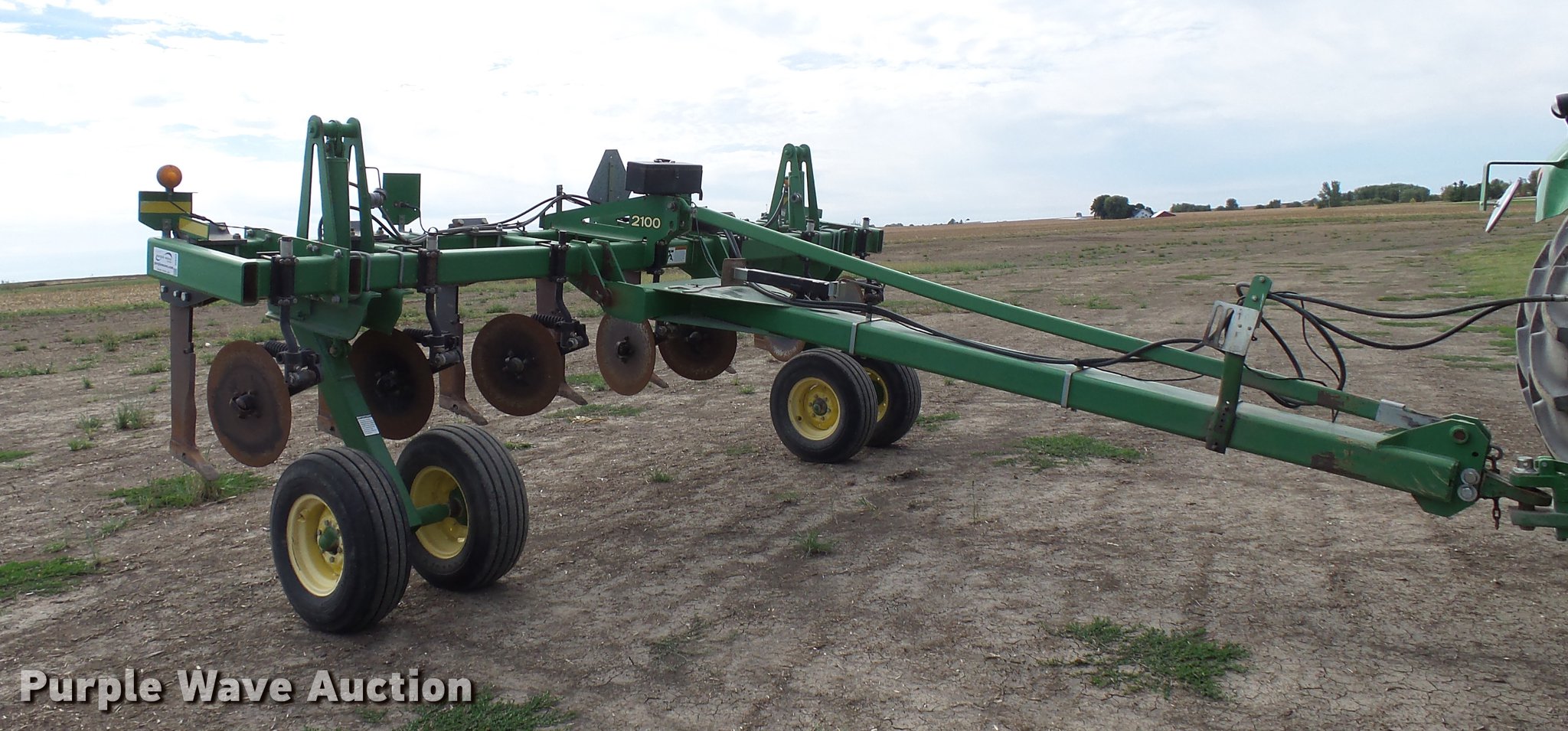 Purple Wave is selling a used Ripper in Iowa. This item is a John Deere 2100 in-line ripper with the following: 22" diameter blades, (7) rippers, 30" spacing, Hydraulic lift, Pin/clevis hitch, Tongue jack, 11L-15 tires, Serial N02100X6154