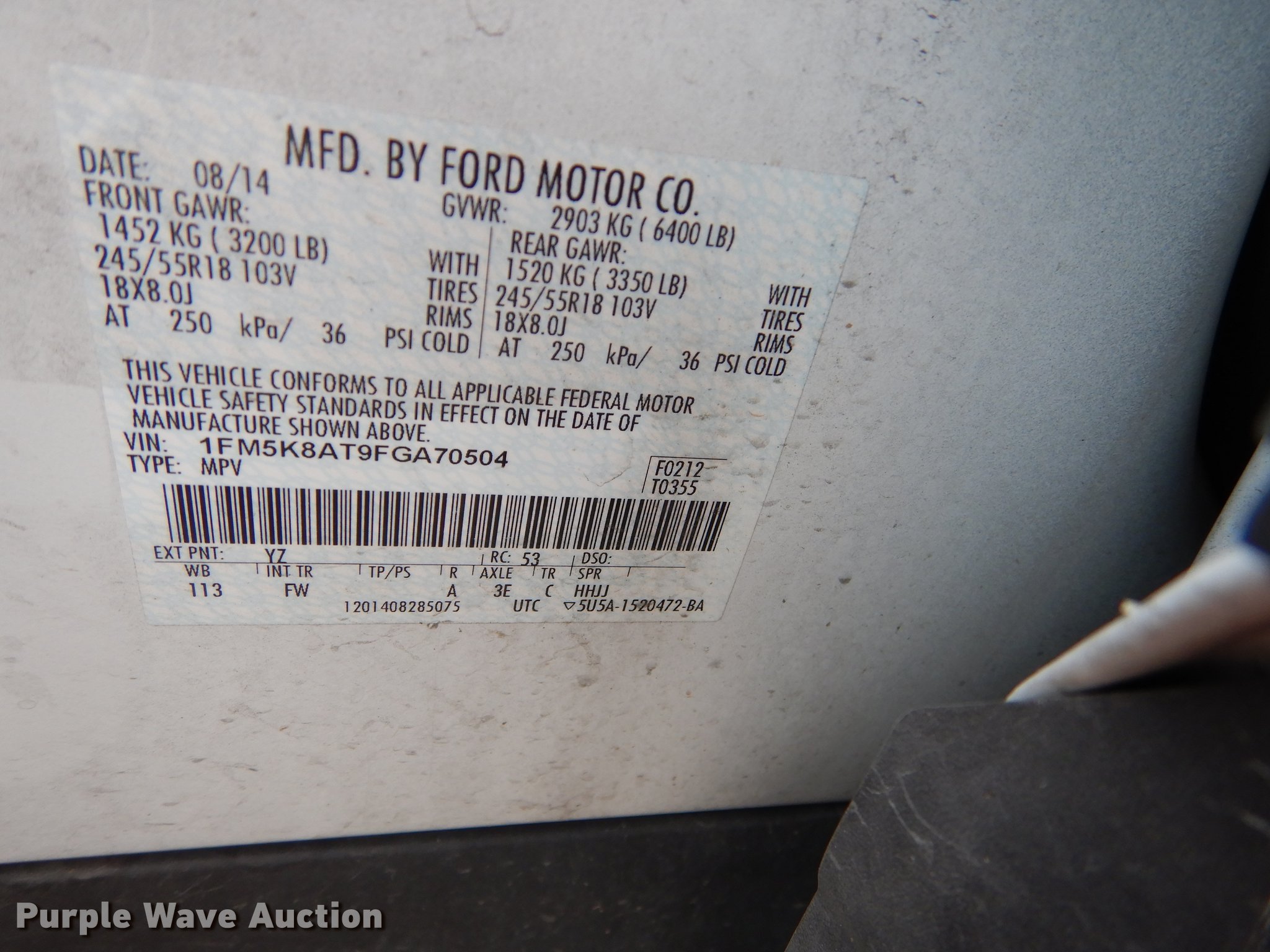 Purple Wave is selling a used Passenger Vehicle in Kansas. This item is a 2015 Ford Explorer Police Interceptor SUV with the following: 60,413 miles on odometer, 3.5L V6 DOHC 24V gas engine, Automatic transmission, All wheel drive, AC and heat, Tilt, Cruise, AM/FM/CD, Power windows, locks, mirrors, and seat, Cloth interior, Backup camera, Spotlight, Adjustable foot pedals, Wreck damage, Non-operational unit, parts only, Unit# 5952