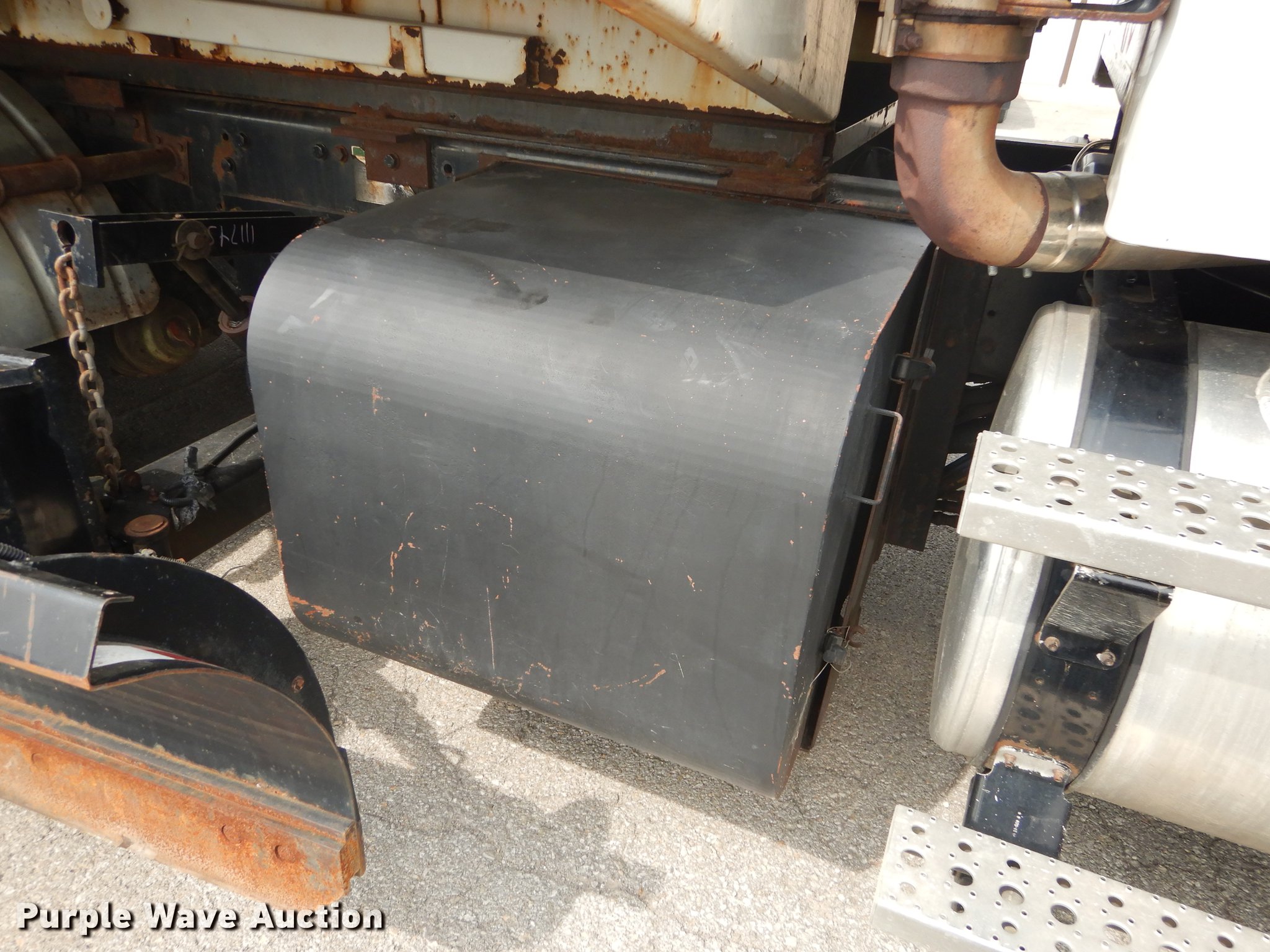 Purple Wave is selling a used Construction Dump Truck in Kansas. This item is a 2005 Sterling L7500 dump truck with the following: 71,239 miles on odometer, Mercedes-Benz MBE900 7.2L L6 diesel engine, Automatic transmission, Tandem axle, Axle lock switch, AC and heat, Tilt, Cruise, AM/FM, Air suspension seat, Power windows, Heated mirrors, Vinyl interior, Force SSC2100 spreader control, Front work lights, Toolbox, Chelsea PTO, Mabar DB144259 steel dump bed, 14'L x 8'W, 45" side height, Rollover tarp, Single ram hoist, Henderson side wing plow, 8'W, Front and rear hydraulic hookups, Dual fuel tanks, Trailer wiring, Spring over walking beam suspension, Air brakes, 186" wheelbase, 11R22.5 tires, GVWR 52,000 lbs, FAWR 12,000 lbs, IAWR 20,000 lbs, RAWR 20,000 lbs, Unit# 5220