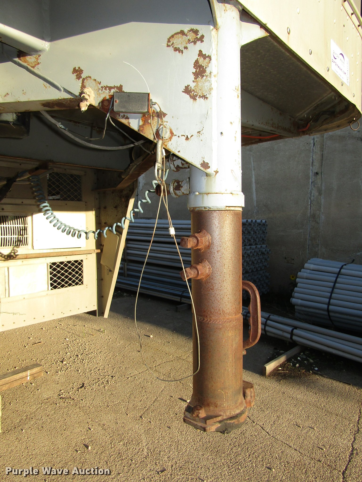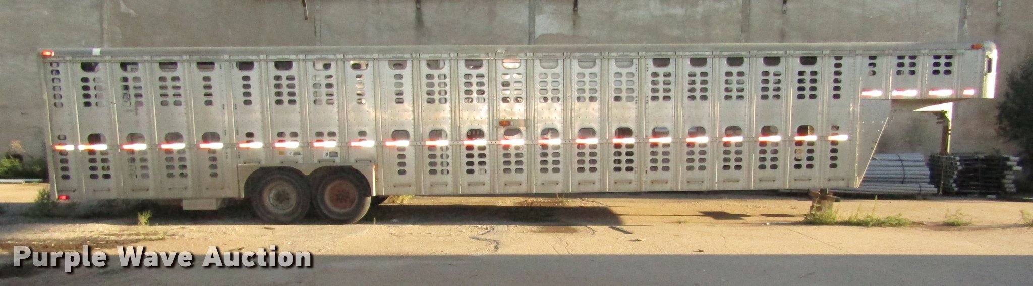 Purple Wave is selling a used Livestock Trailer in Nebraska. This item is a 1998 Wilson PSGN-838R livestock trailer with the following: 45'L overall, 38'L x 8'W, 79" I.D. height, 83"L top deck, 92"W inside width, Aluminum construction, (3) pair center divider gates, (4) compartments, Rear roll up gate, Side doors, Gooseneck hitch, Single leg landing gear, Torsion axle suspension, Electric brakes, Tandem axle, Steel wheels, 9R17.5HC tires, GVWR 25,000 lbs, GAWR 8,090 lbs, Roof vent missing