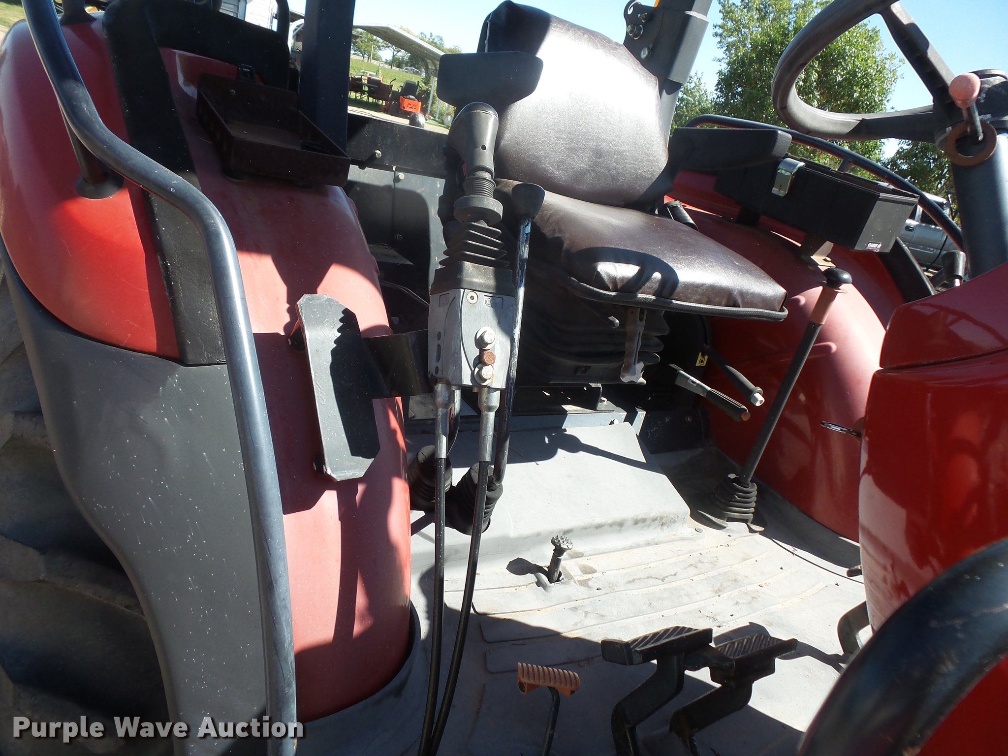 Purple Wave is selling a used Tractor in Nebraska. This item is a 2003 Case IH JX55 tractor with the following: 363 hours on meter, Three cylinder diesel engine, Model 8035.06, 52.5 HP, Manual transmission, 12F-12R gears, Left-hand reverser, Differential lock, Case IH LX132 loader, 74"W bucket, Quick attach, Skid steer attachment adapter, Joystick controls, Three point, Top link, Seven pin outlet, 540 PTO, (2) rear hydraulic remotes, Front weight, 7.50-16SL front tires, 14.9-28 rear tires, Serial HFJ3034