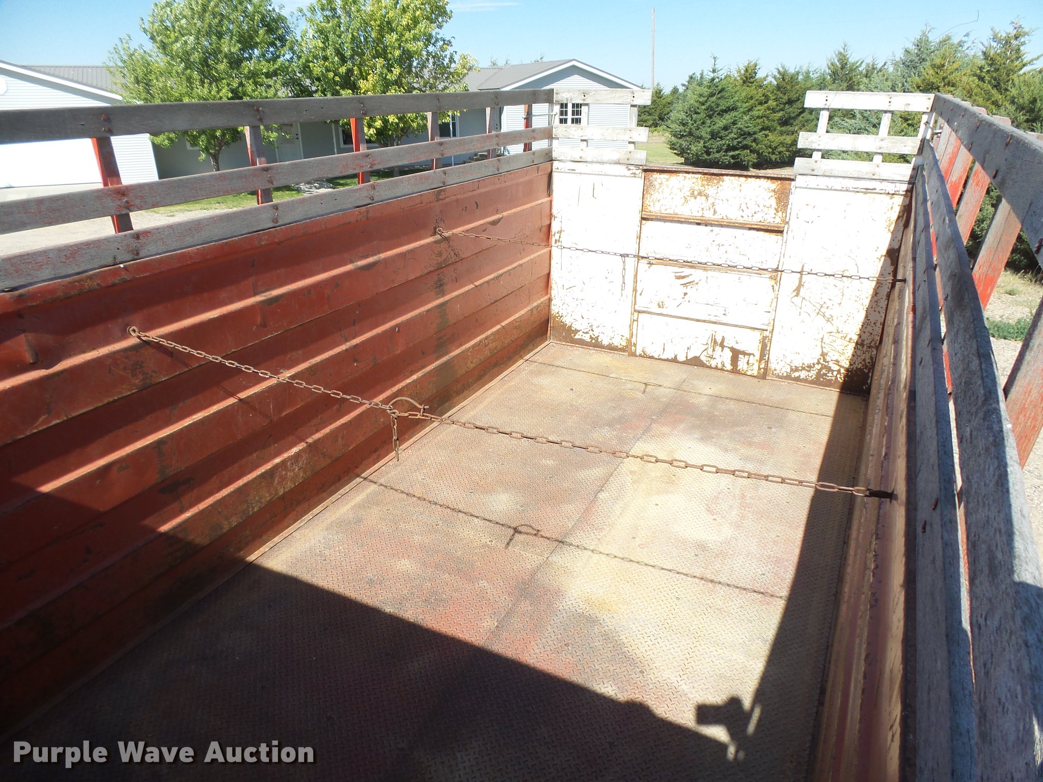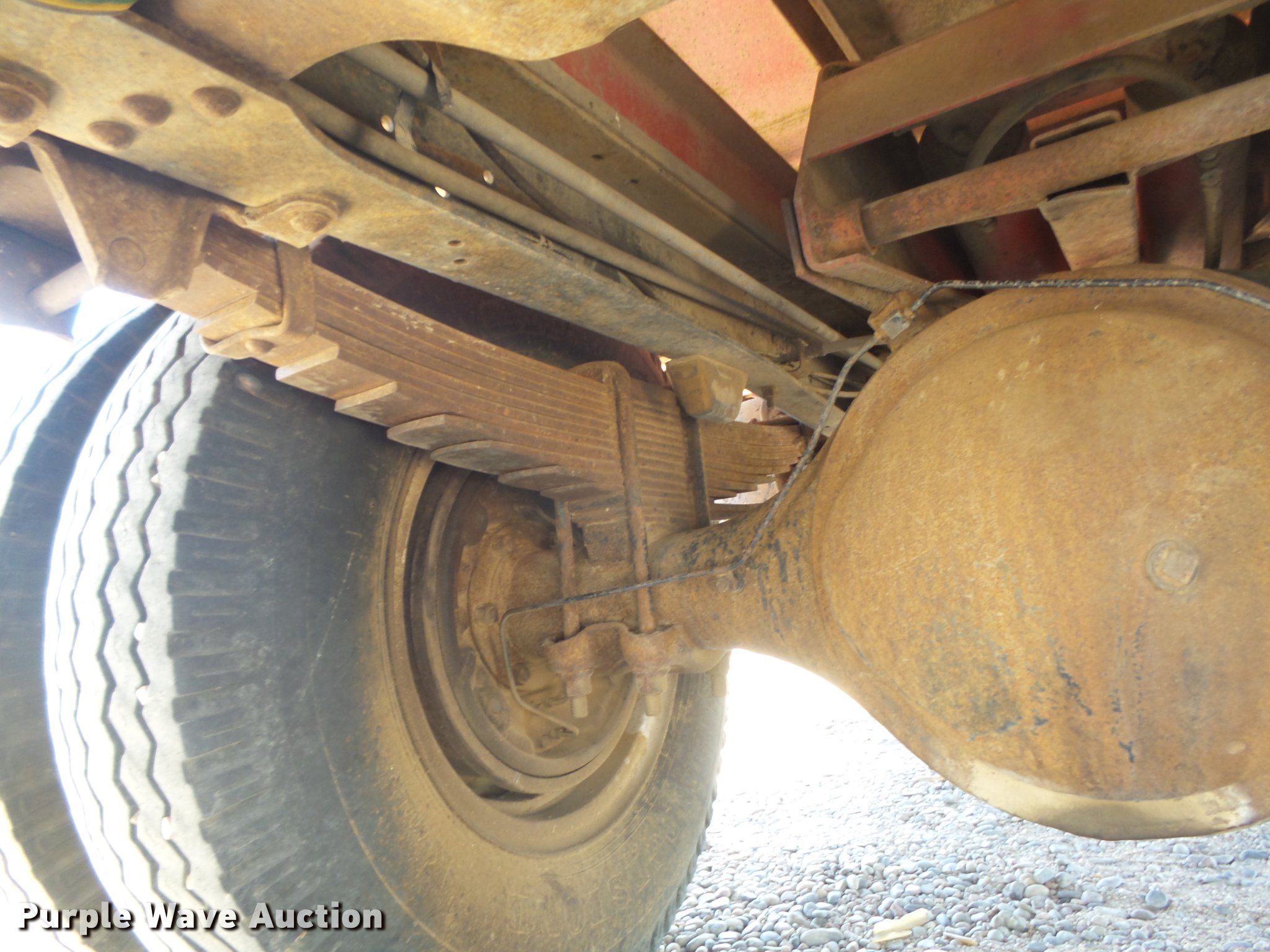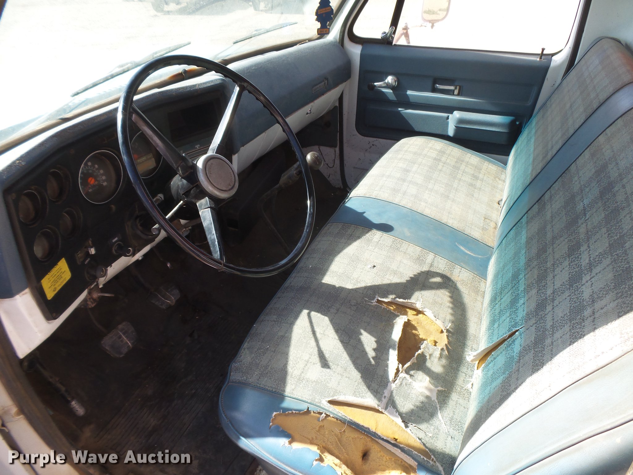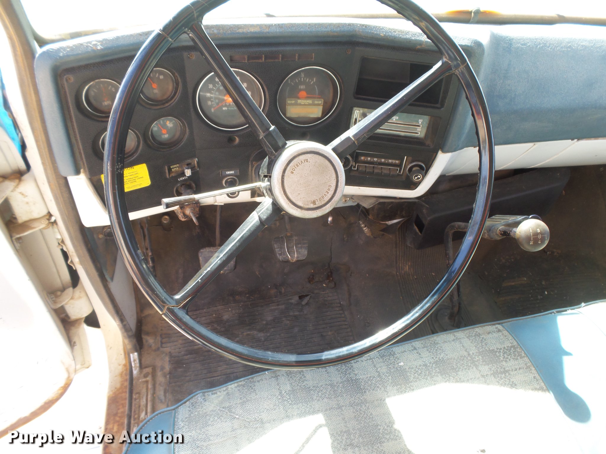 Purple Wave is selling a used Grain Truck in Kansas. This item is a 1976 Chevrolet C60 grain truck with the following: 82,979 miles on odometer, Chevrolet eight cylinder dual fuel engine, Gas or propane capable, Four speed manual transmission, Two speed rear end, Heat, AM, Suspension seat, PTO, Omaha Standard steel grain bed, 16'L x 94"W, 52" side height, 18" side board height, Manual end gate, Dual ram hoist, Dual fuel tanks, One for gas, One for propane, Spring suspension, 9.00-20 tires, GVWR 20,000 lbs, FAWR 5,000 lbs, RAWR 15,000 lbs