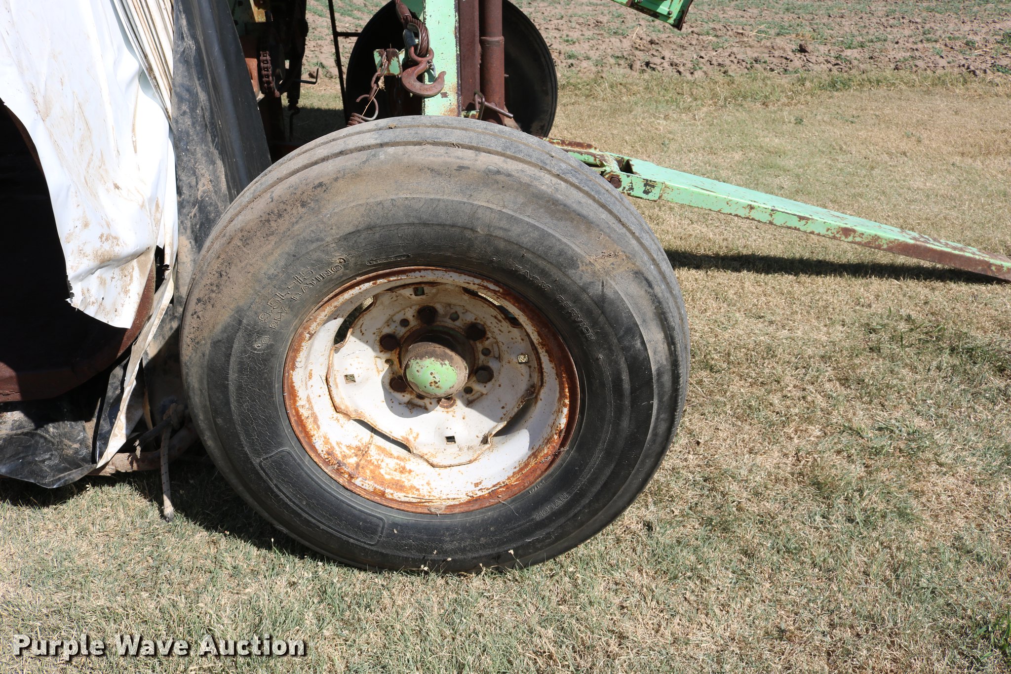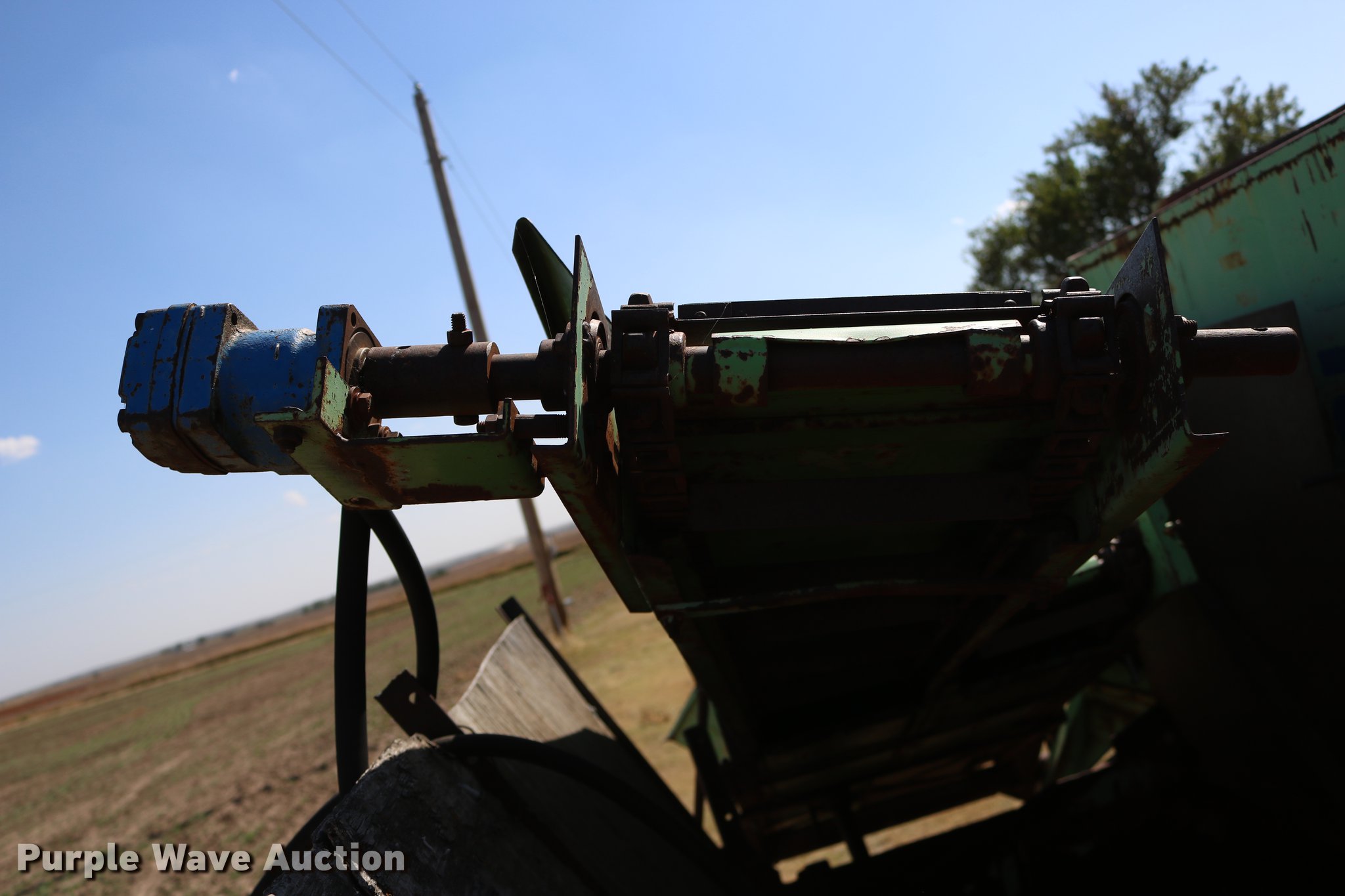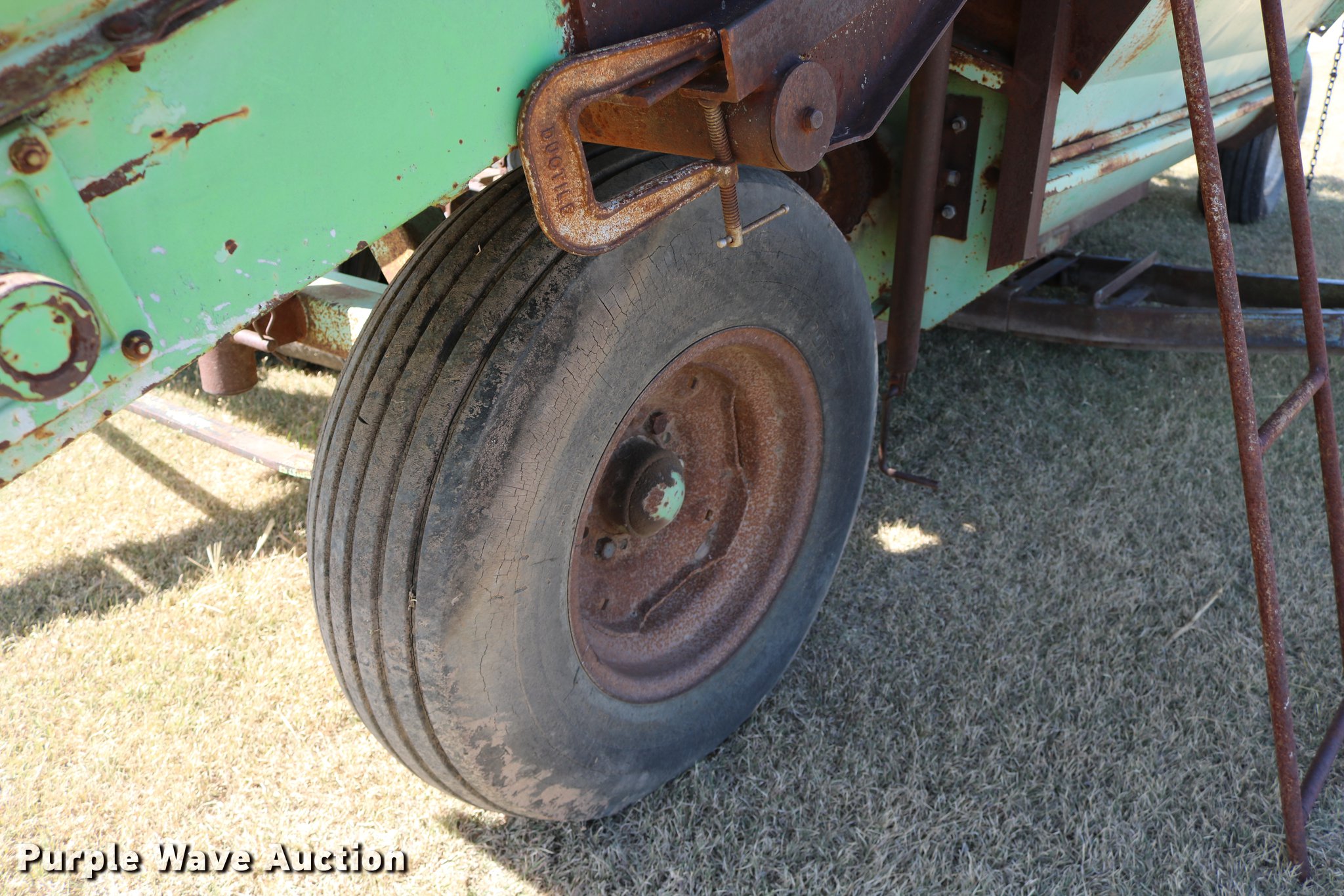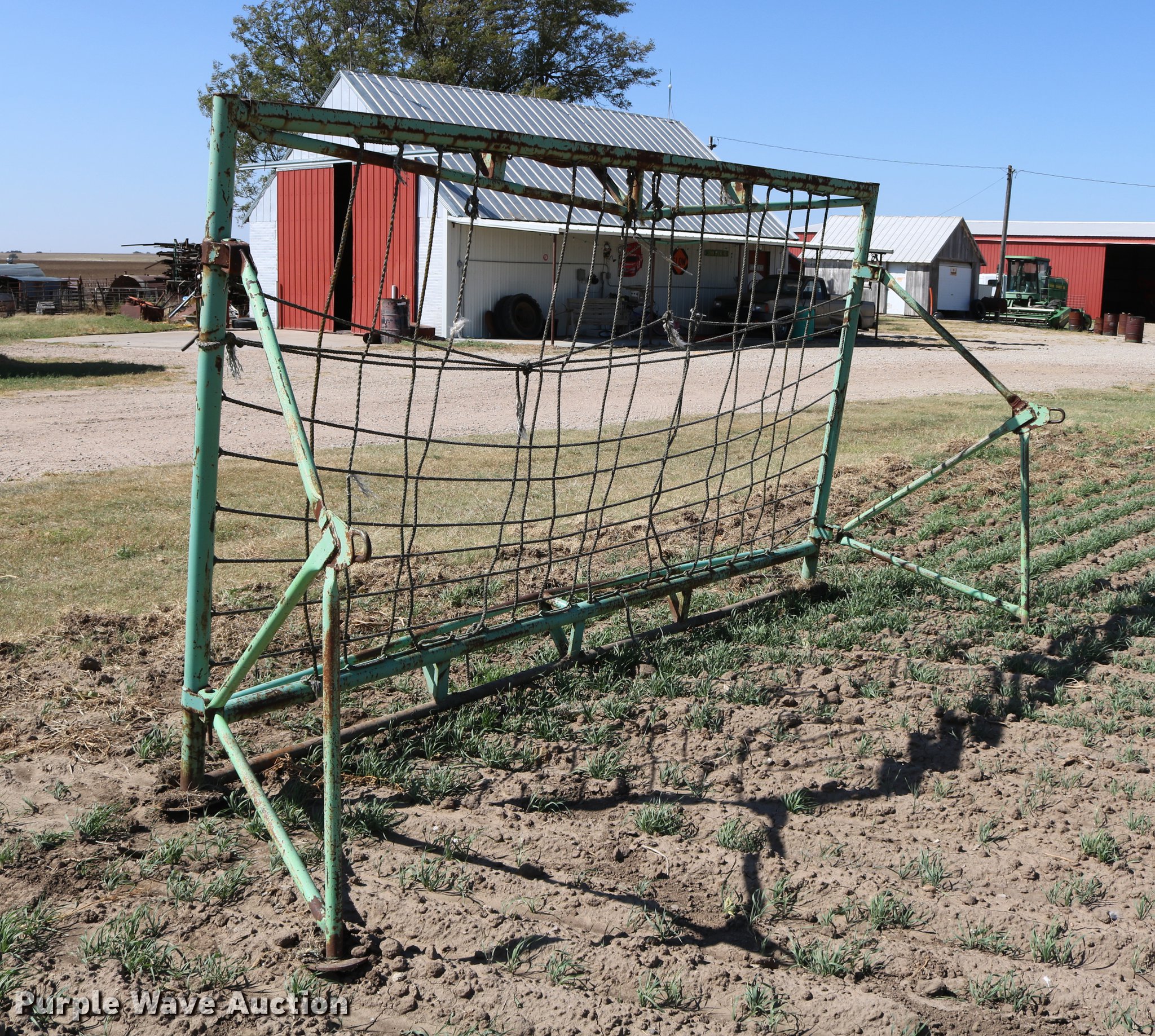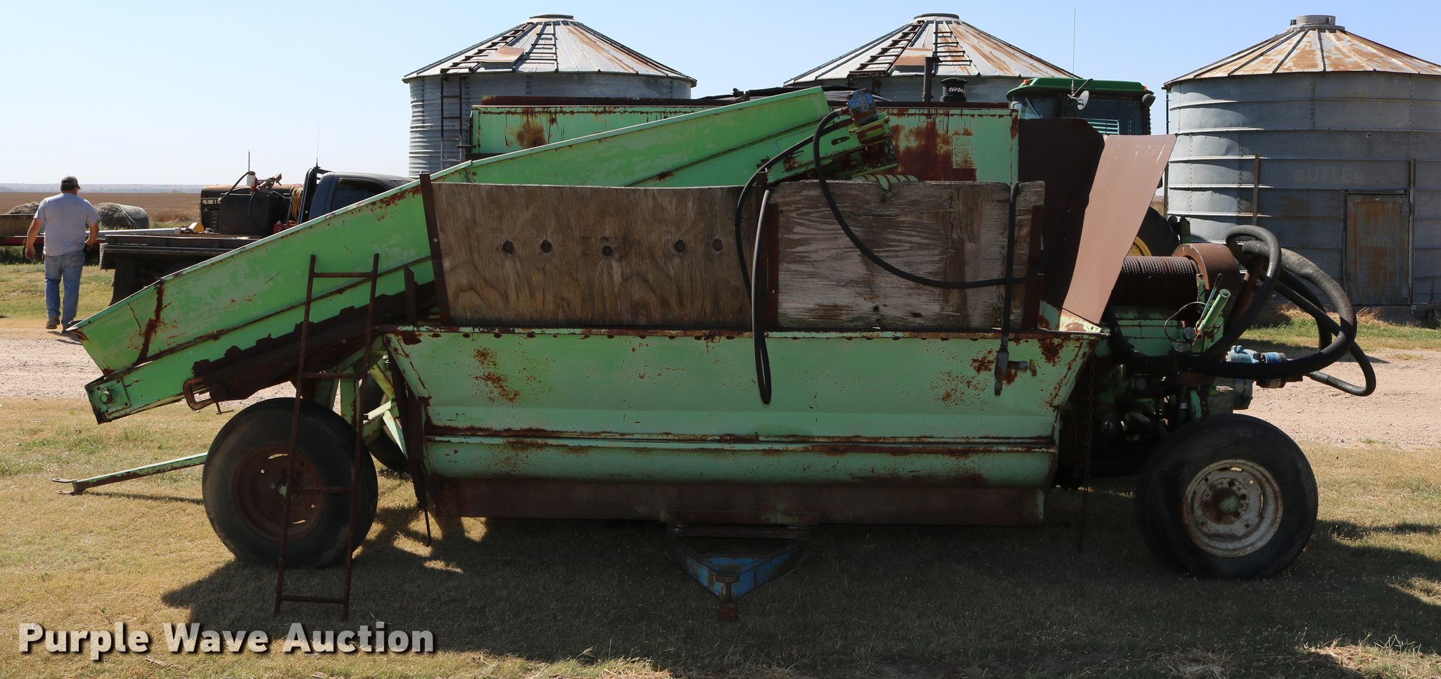 Ag Bagger silage bagger. Approx. 50' of bag, 9'W bag capacity, 90 degree wheel pivot, Back stop, 540 PTO, Three point, Clevis transport hitch, (4) 9.5L-15 tires. 1208 NW 90 Rd. Olmitz, KS 67564