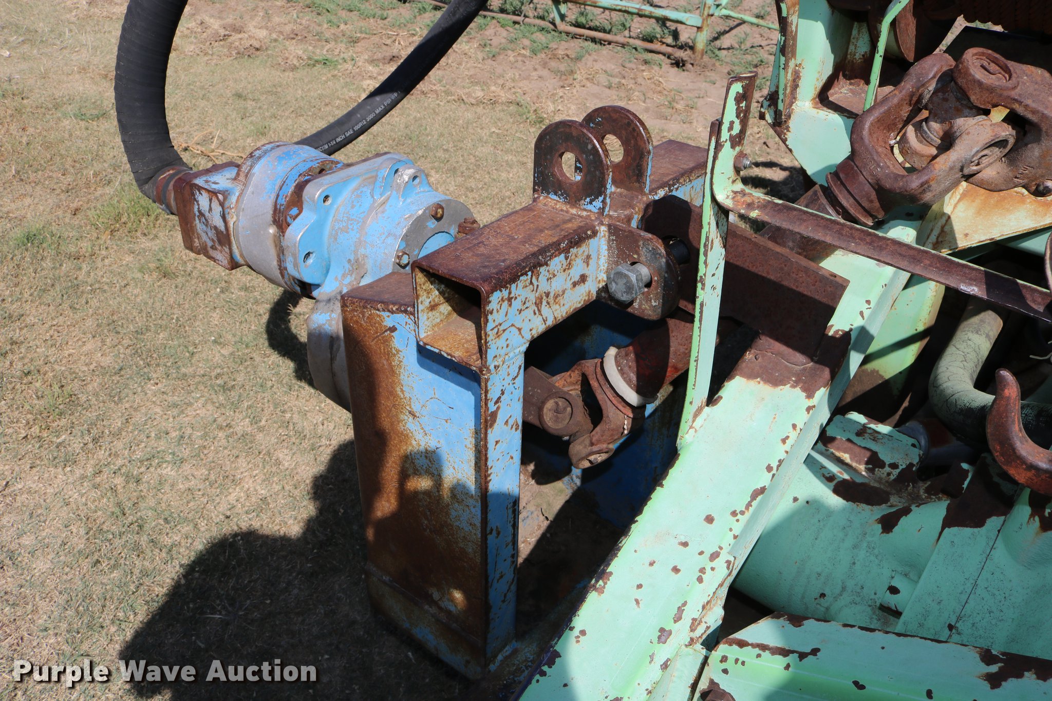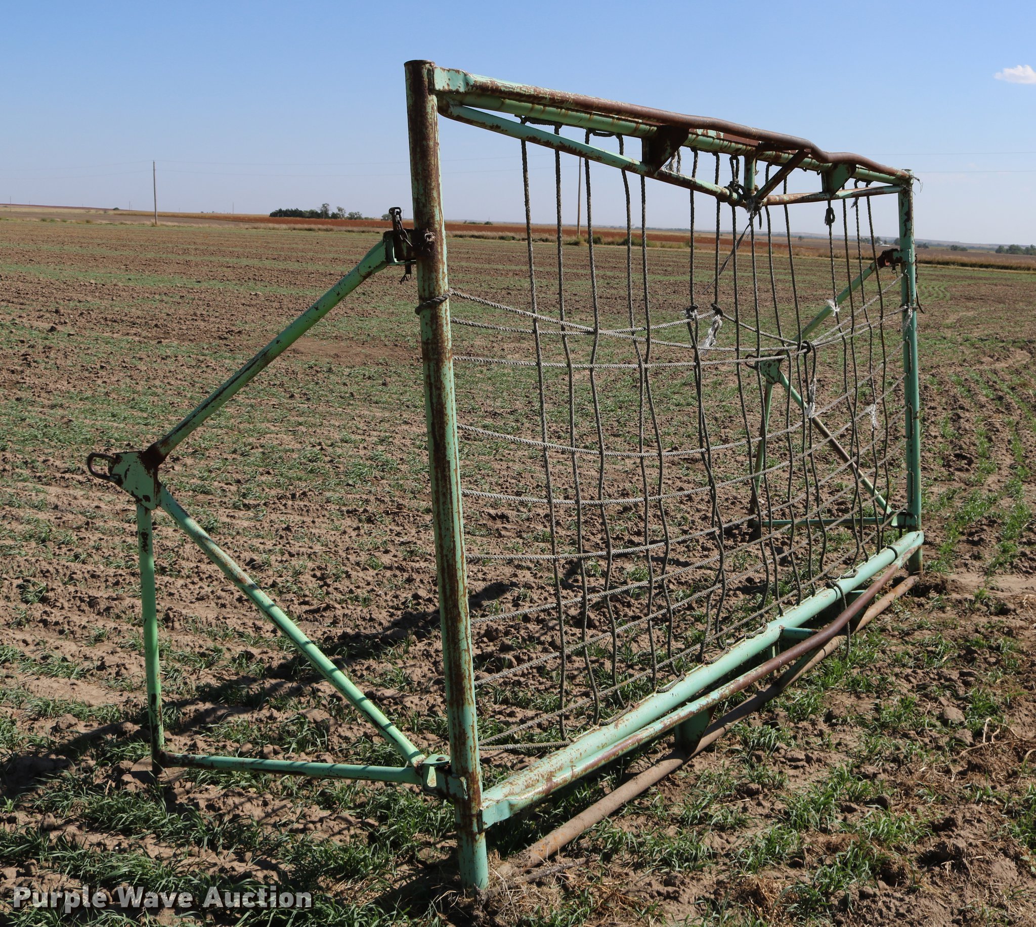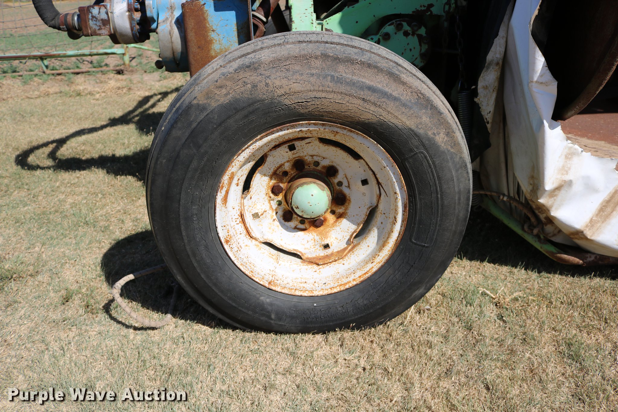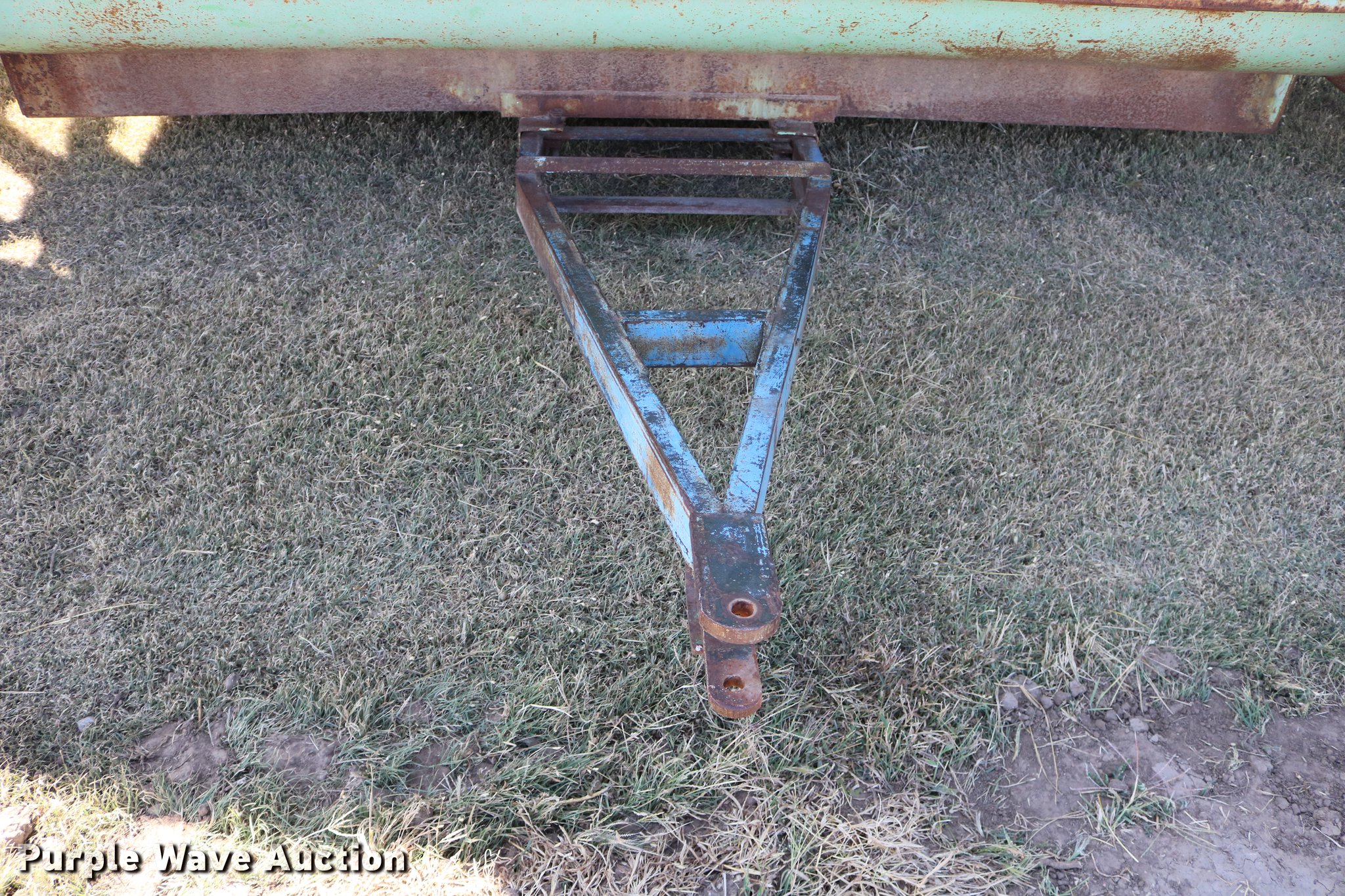 Ag Bagger silage bagger. Approx. 50' of bag, 9'W bag capacity, 90 degree wheel pivot, Back stop, 540 PTO, Three point, Clevis transport hitch, (4) 9.5L-15 tires. 1208 NW 90 Rd. Olmitz, KS 67564