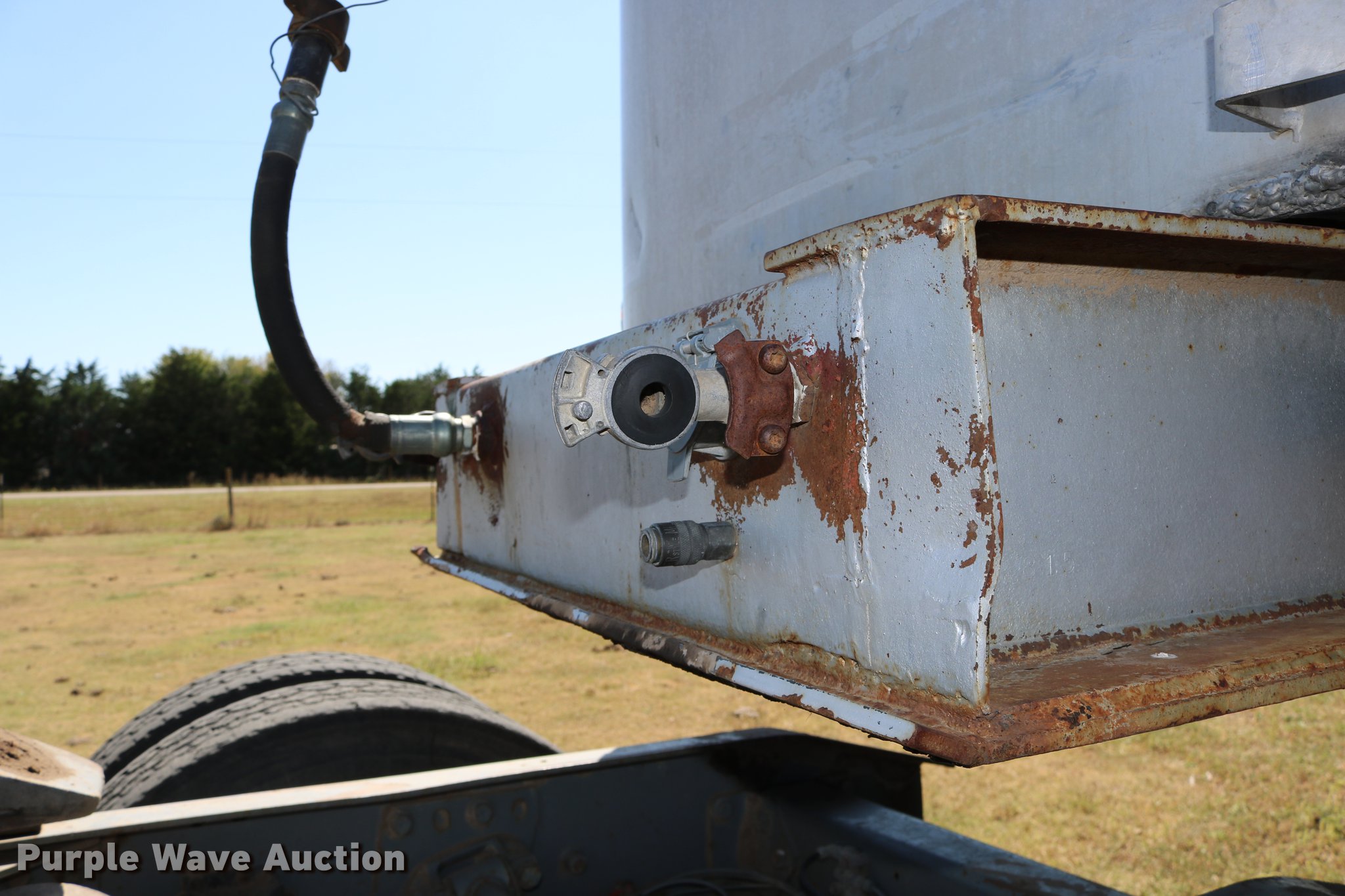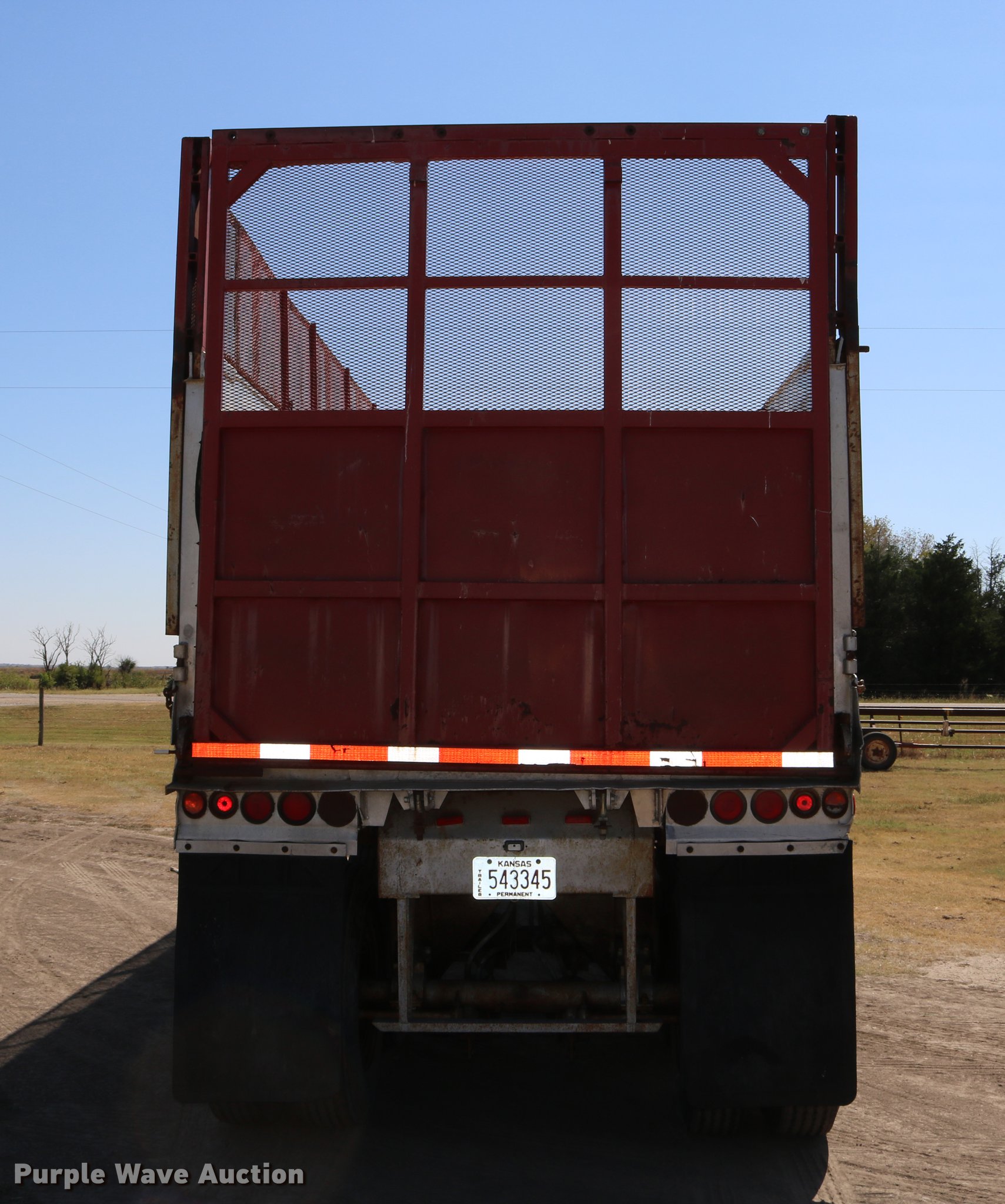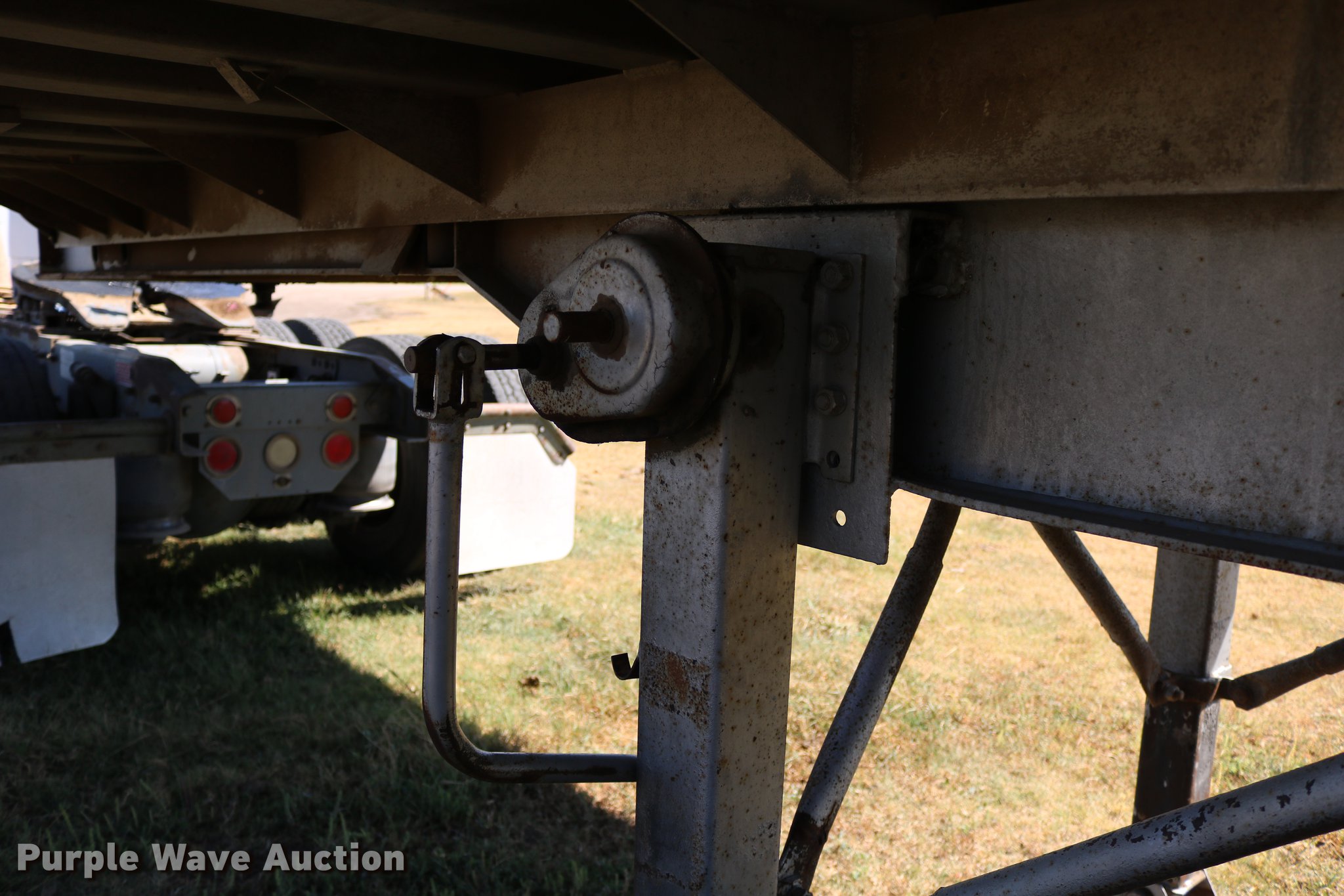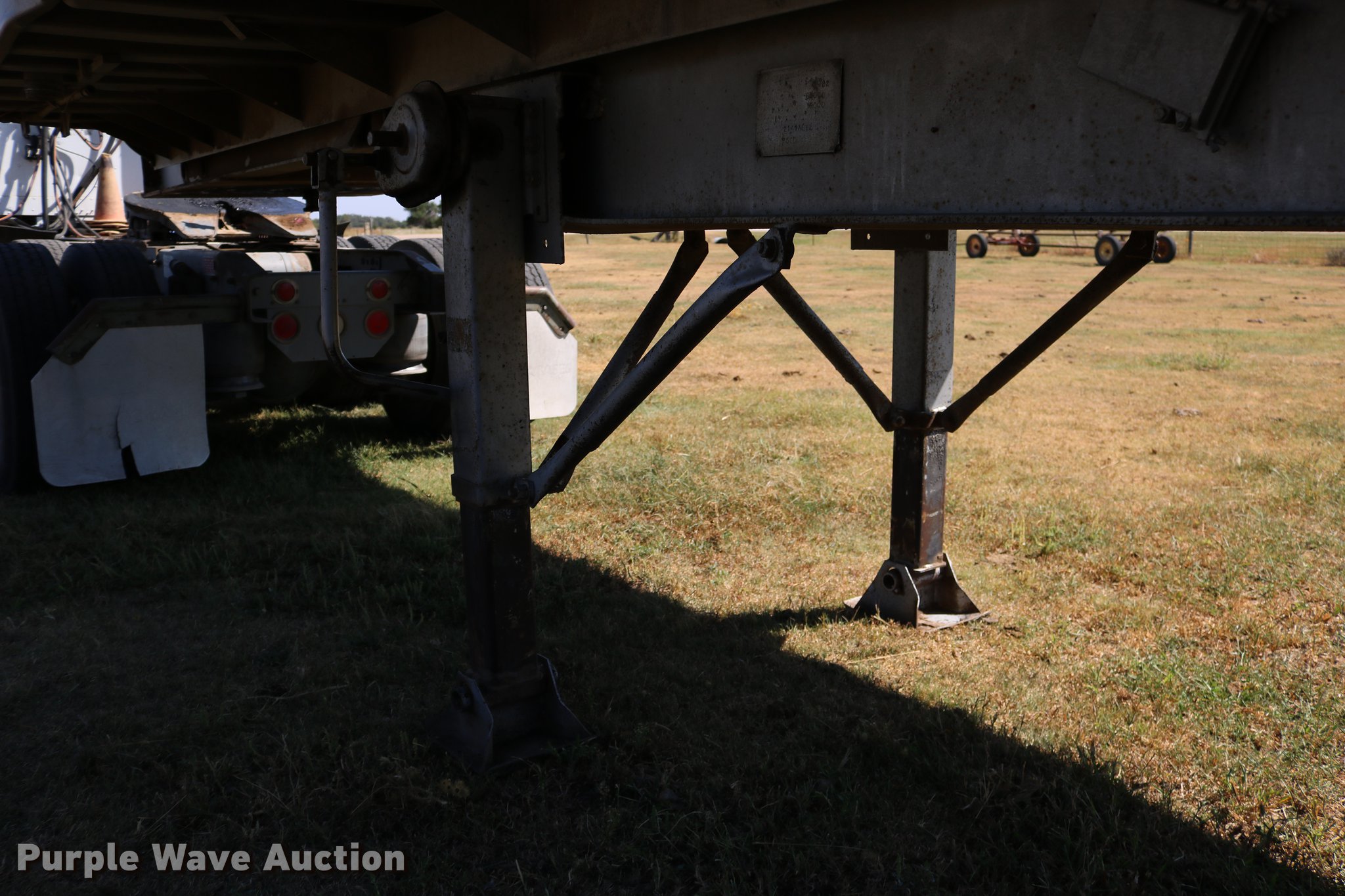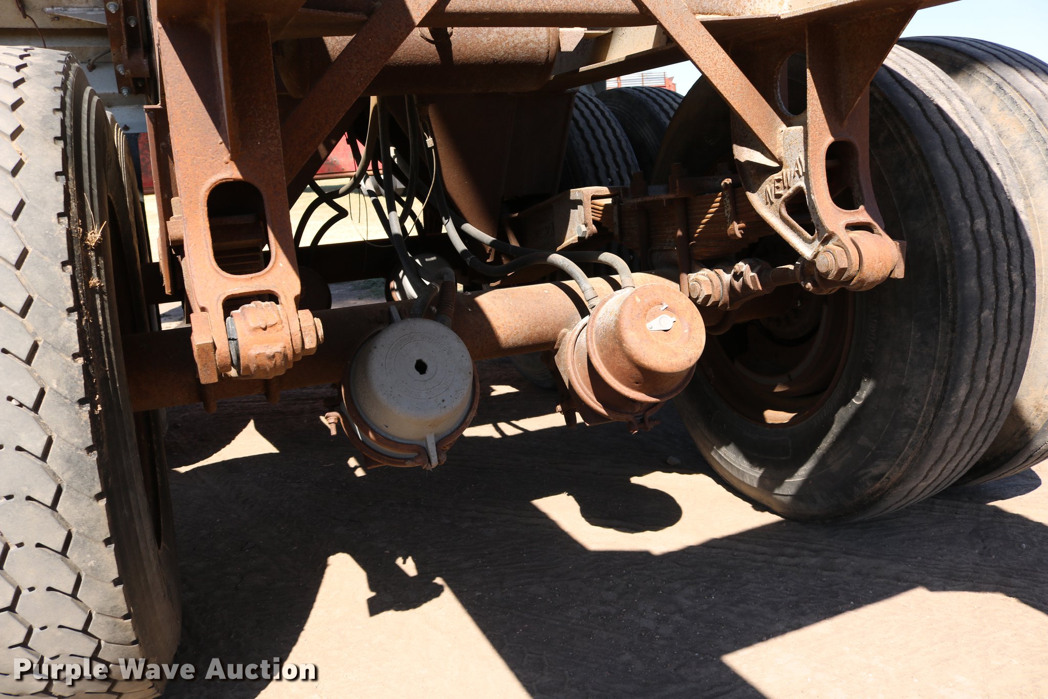Purple Wave is selling a used Grain or Commodity Trailer in Kansas. This item is a 1982 Schertzer 35CD commodity dump trailer with the following: 41.5'L x 96"W overall, 40'L bed, 63" side height, 2' side board height, 58" floor height, Air operated end gate, Single hydraulic cylinder, Poly bed liner, Fifth wheel plate, Dual leg two speed landing gear, Spring suspension, Air brakes, Tandem axle, Steel wheels, 11R22.5 tires, GVWR 63,000 lbs, GAWR 19,000 lbs