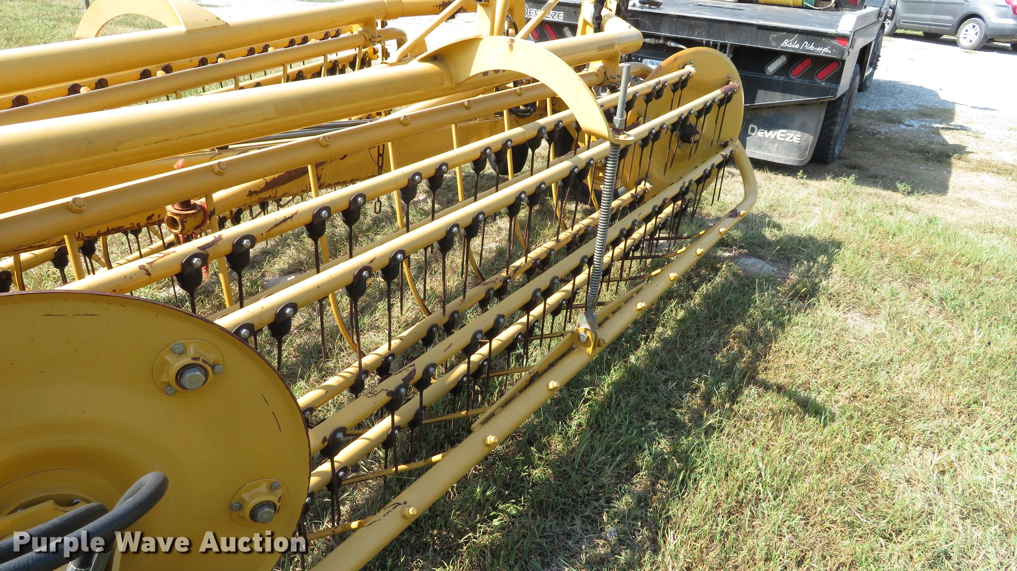 Purple Wave is selling a used Hay Rake in Kansas. This item is a Vermeer R23A hay rake with the following: 23' working width, Hydraulic driven baskets, Hydraulic lift and fold, Pin hitch, 205/75R14 tires
