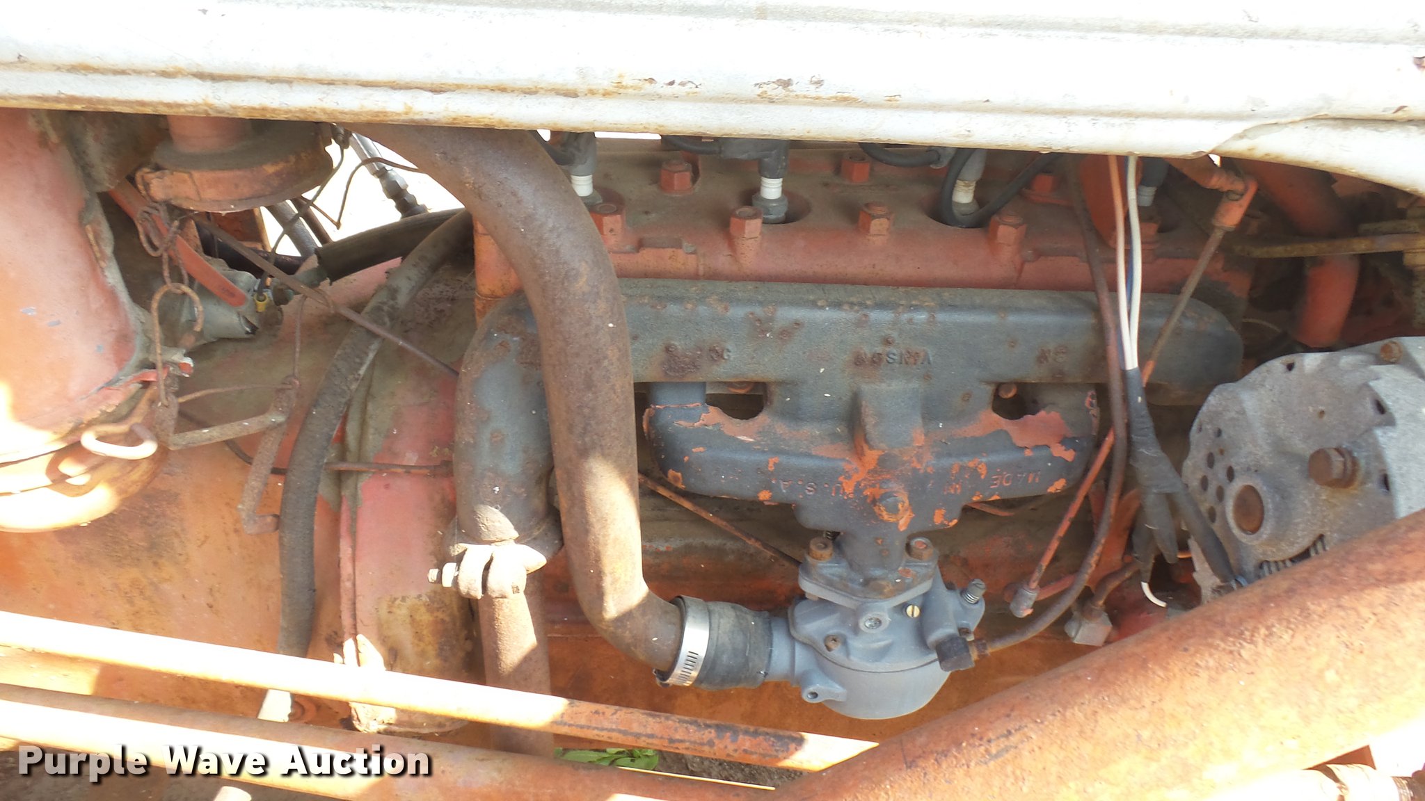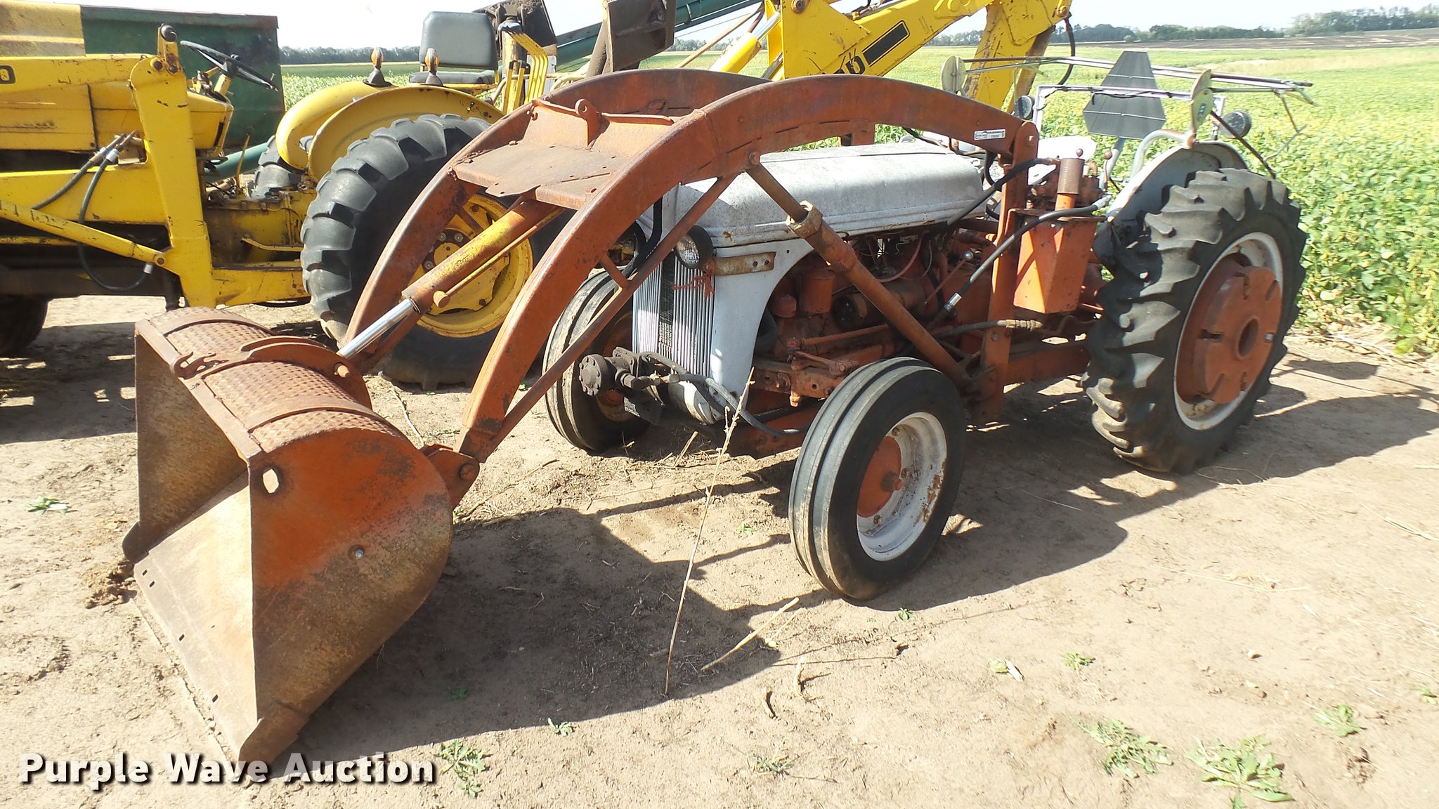 Purple Wave is selling a used Tractor in Kansas. This item is a Ford 9N tractor with the following: Unknown hours on meter, Ford 2.0L four cylinder gas engine, Manual transmission, 4F-1R gears, Canopy frame, Work lights, Loader, 42"W bucket, 540 PTO, Rear wheel weights, 6.0-16 front tires, 11.2-28 rear tires, Engine turns over, but will not start