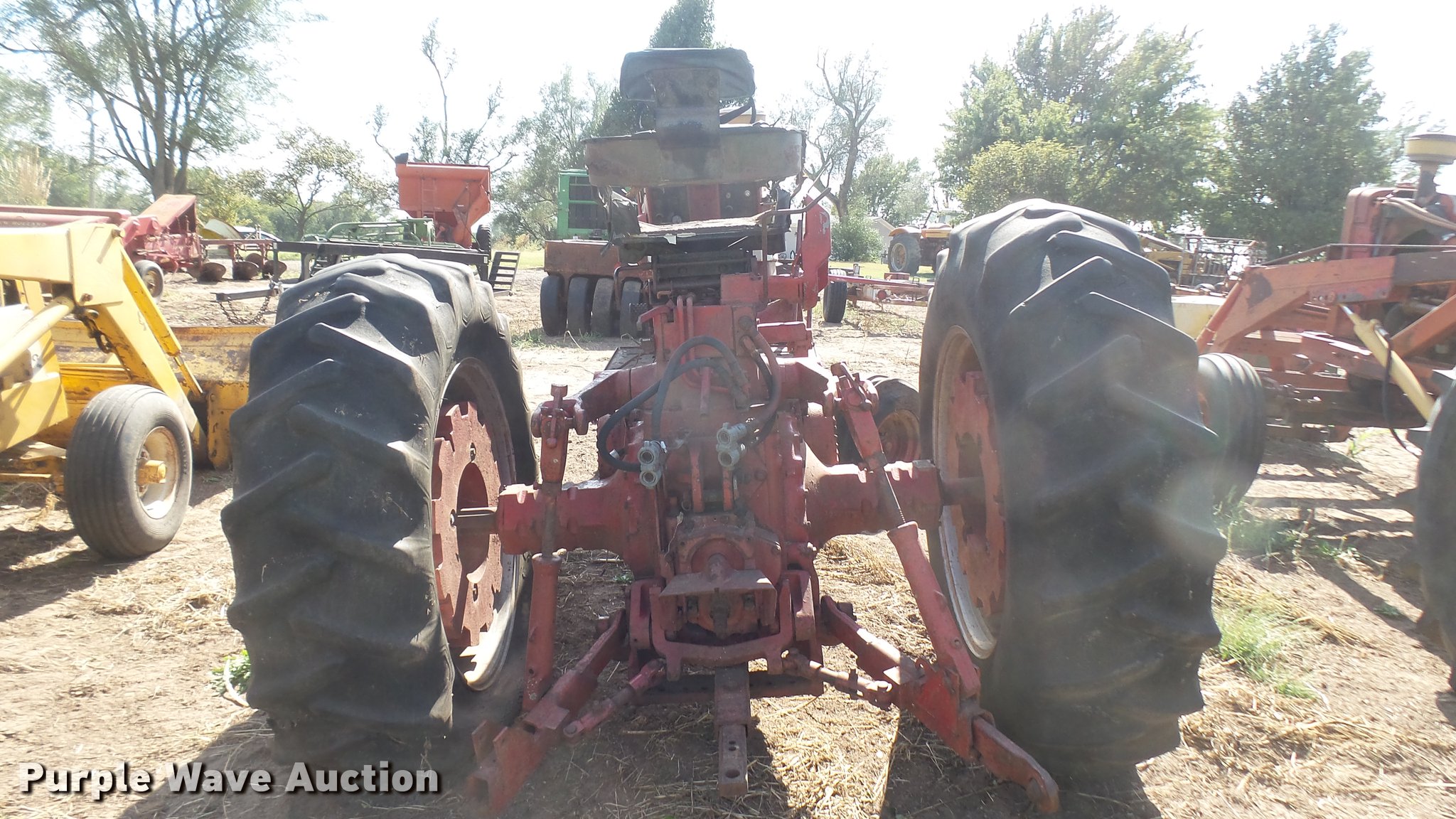 Purple Wave is selling a used Tractor in Kansas. This item is a Farmall F1206 tractor with the following: 5,203 hours on meter, International 5.9L six cylinder diesel engine, Manual transmission, 8F-4R gears, 540 PTO, (2) rear hydraulic remote sets, Suitcase weights, 12.5L-16 front tires, 18.4-38 rear tires, One front wheel removed, One front tire flat/damaged, Unknown operating condition, Serial 15842S-Y