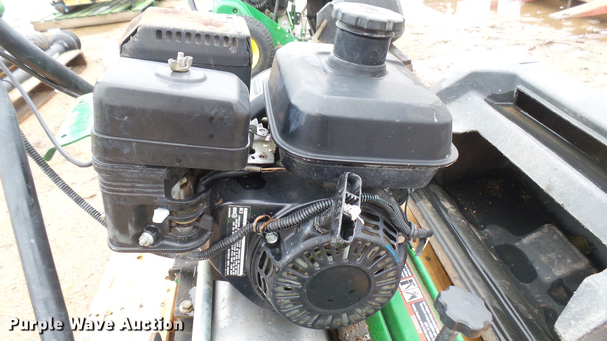 John Deere 220B greens mower. 22" cut, Honda 4 HP gas engine, Grass catcher, 4.10-6 NHS tires, Serial M0220BX020451. Kinsley, KS 67547