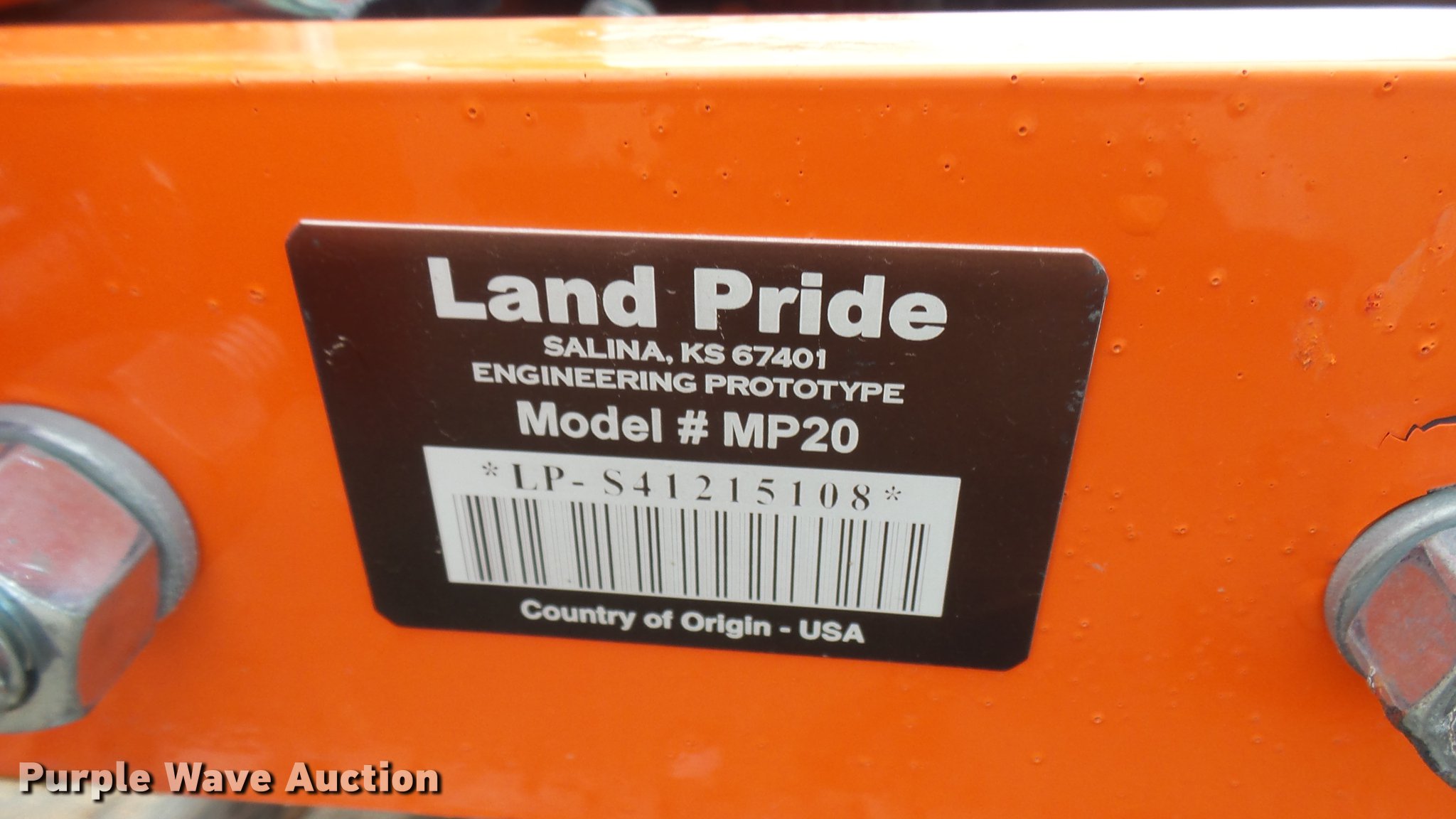 Purple Wave is selling a used Plow in Kansas. This item is a Land Pride MP20 two bottom plow with the following: 33" blades, Three point, Unused, Serial LP-S41215108