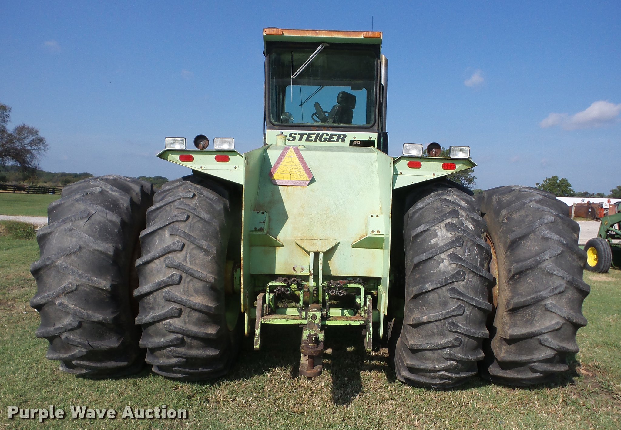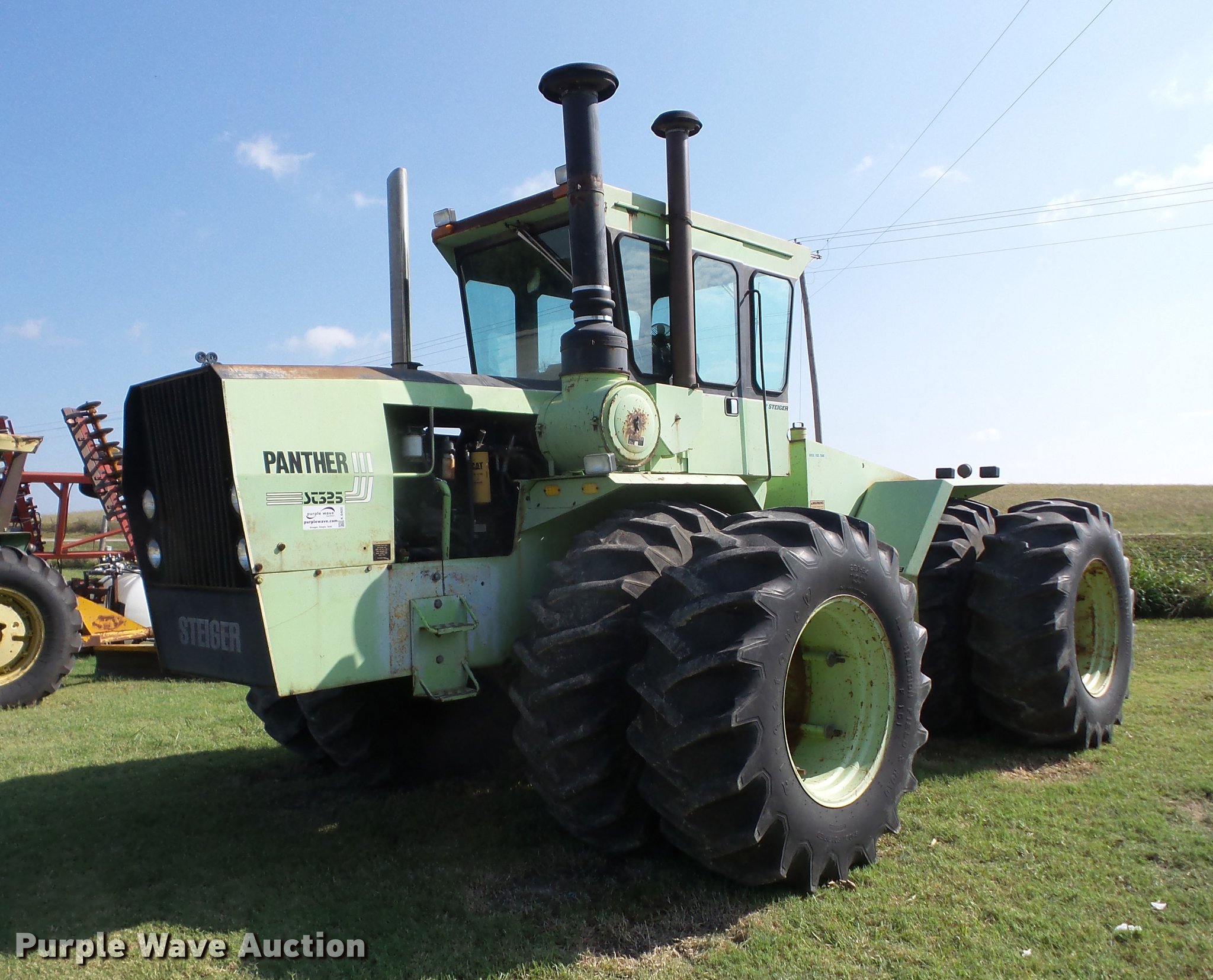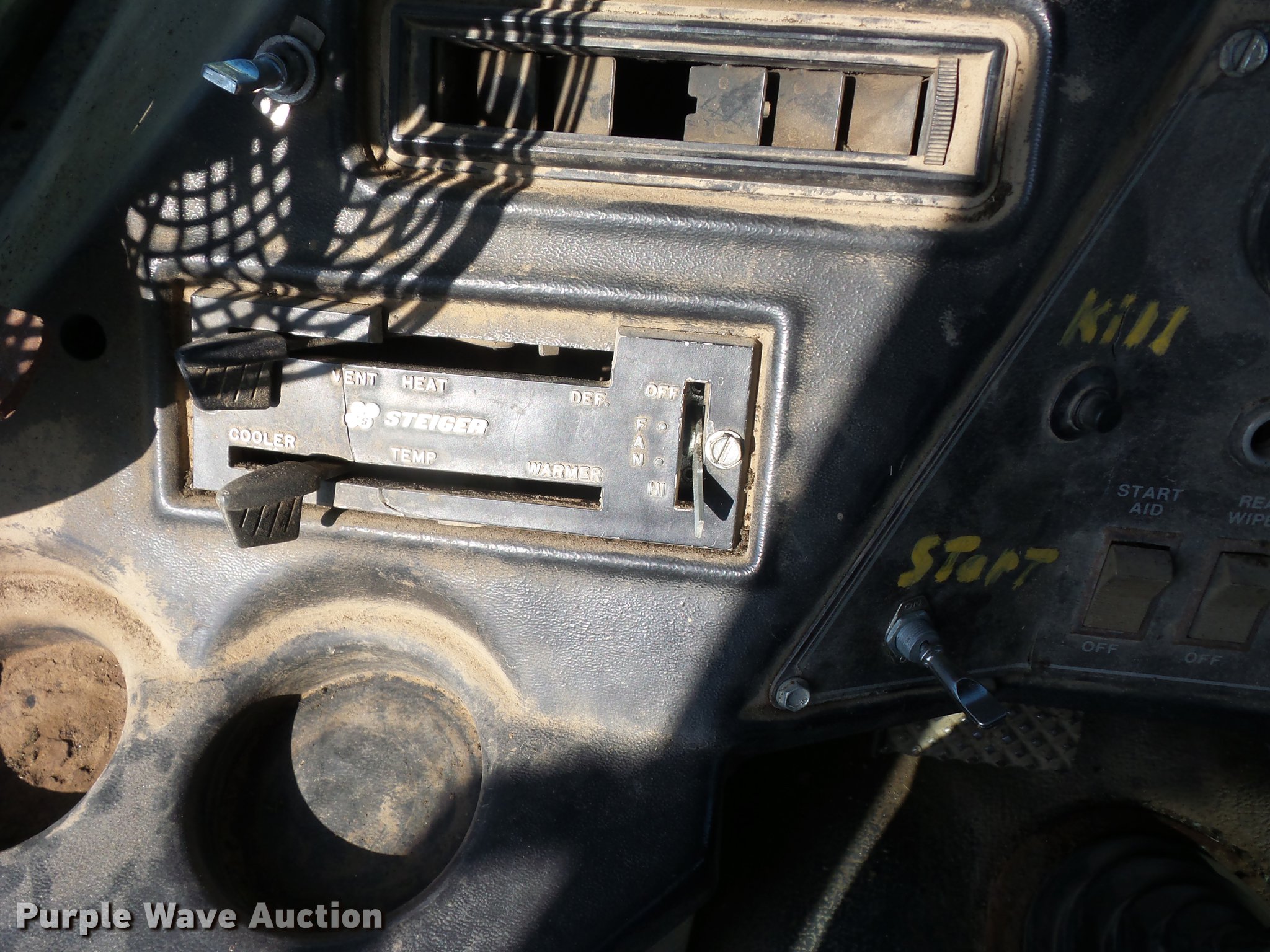 Purple Wave is selling a used Articulated 4-Wheel Drive Tractor in Kansas. This item is a 1980 Steiger Panther III ST325 4WD tractor with the following: 4,149 hours on meter, Caterpillar 3406 six cylinder turbo diesel engine, 325 HP, Manual transmission, 10F-4R gears, AC and heat, Tilt steering wheel, Suspension seat, (4) rear hydraulic remote sets, 23.1-34 dual tires, Serial 123-00942