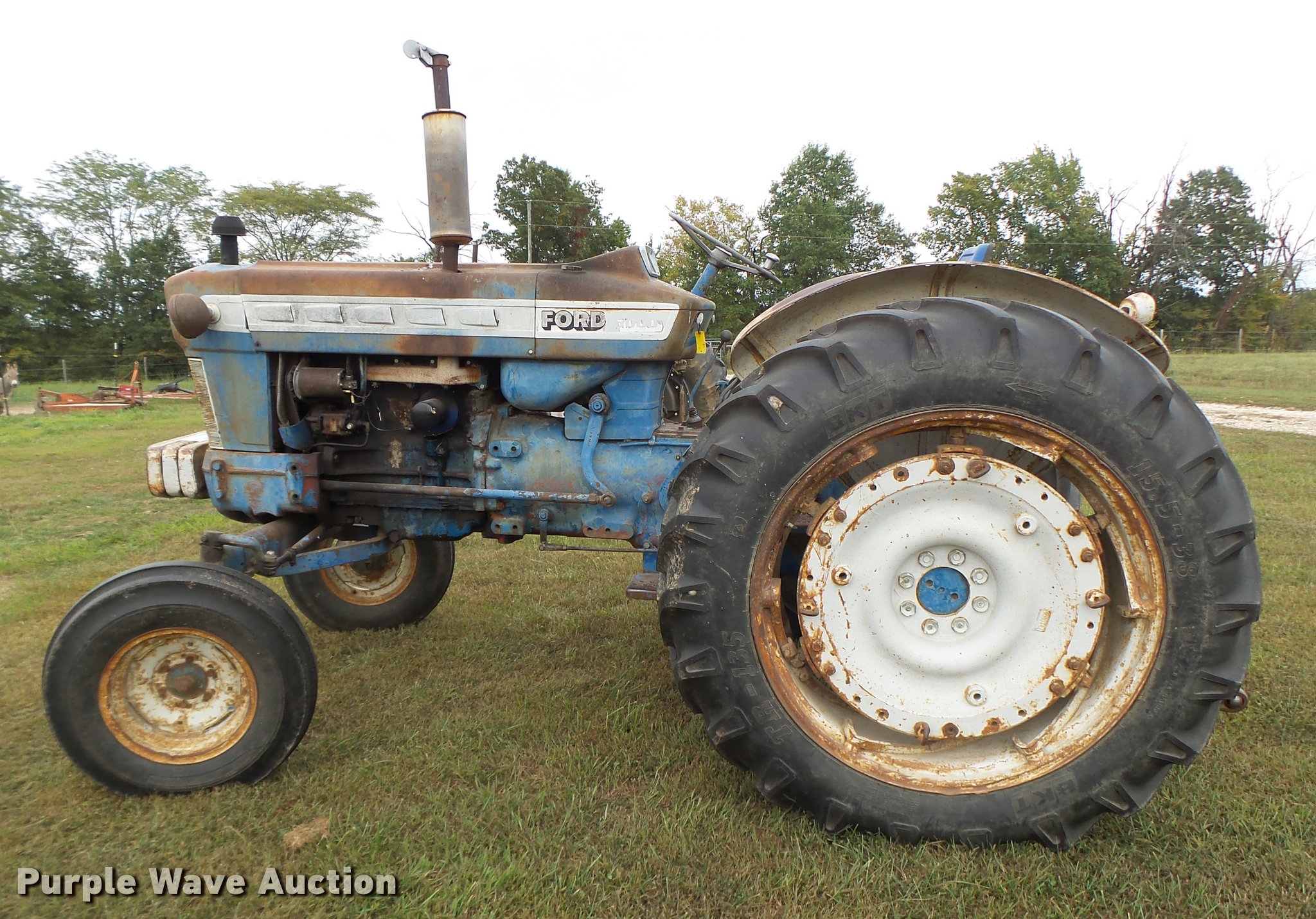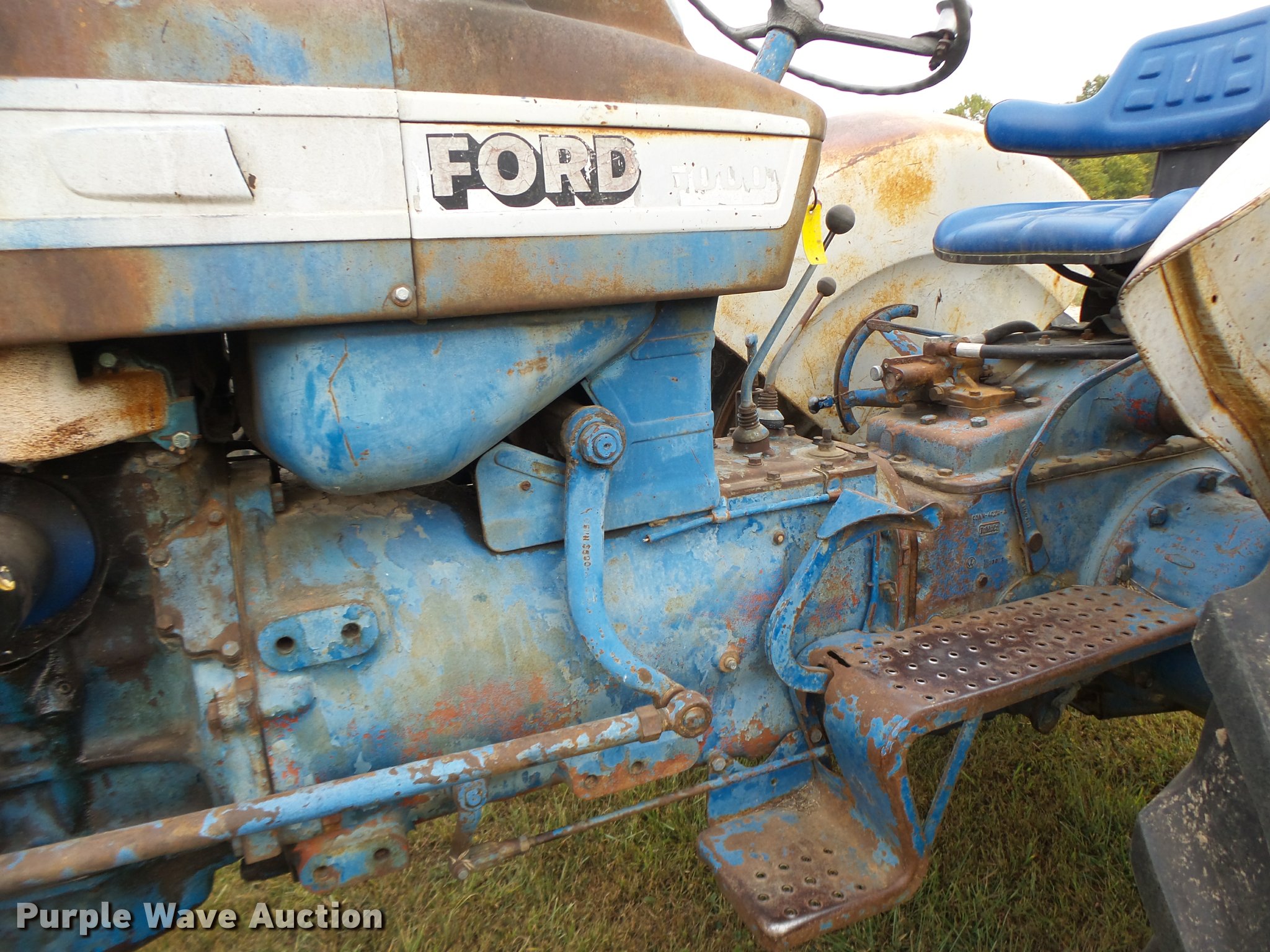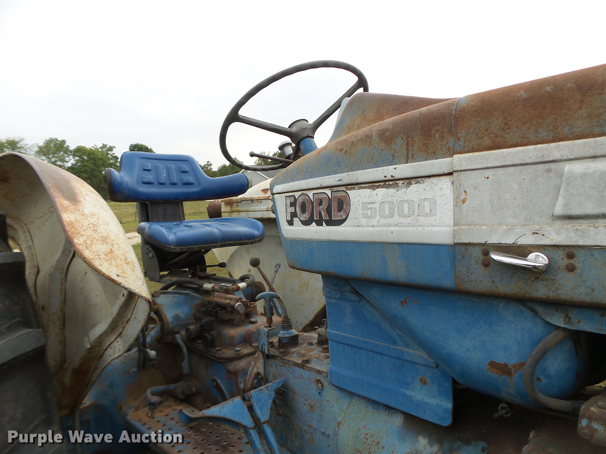 Purple Wave is selling a used Tractor in Missouri. This item is a Ford 5000 tractor with the following: 3,994 hours on meter, Four cylinder gas engine, Manual transmission, 8F-2R gears, Suspension seat, Three point, 540 PTO, Rear hydraulic remote set, (3) front weights, Adjustable front end width, 7.50-16 front tires, 15.5-38 rear tires, Serial C5NN-4024-A