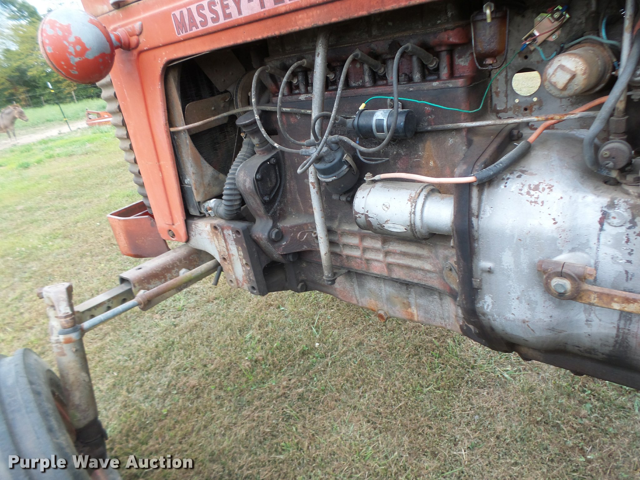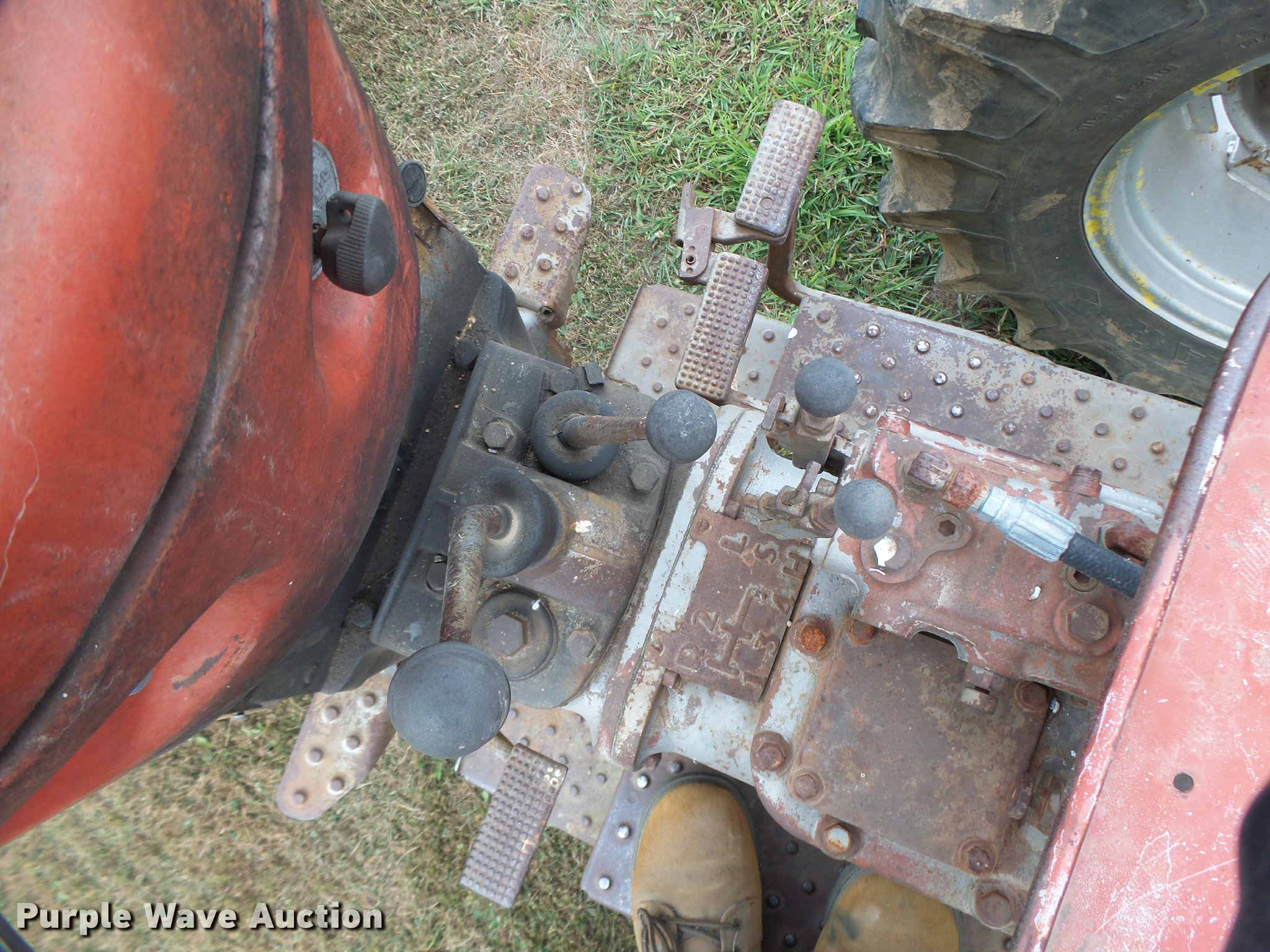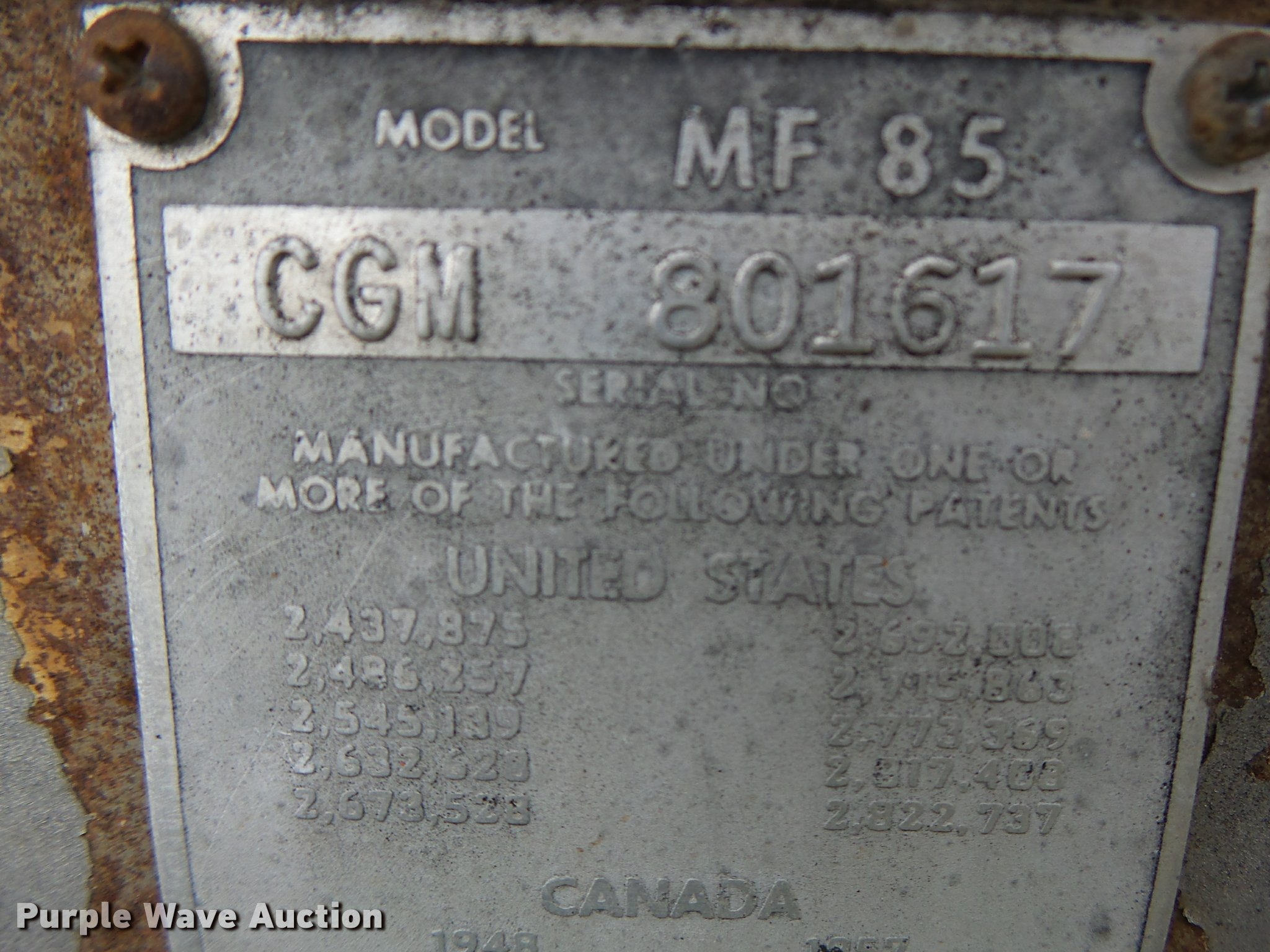 Purple Wave is selling a used Tractor in Missouri. This item is a Massey-Ferguson 85 tractor with the following: 6,859 hours on meter, Four cylinder gas engine, Manual transmission, 8F-2R gears, Suspension seat, Three point, 540 PTO, Rear hydraulic remote set, Adjustable front end width, 6.90-16 front tires, 16.9-30 rear tires, Serial 801617
